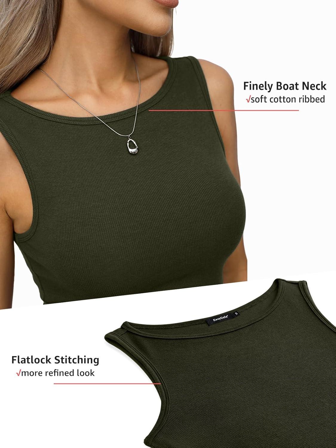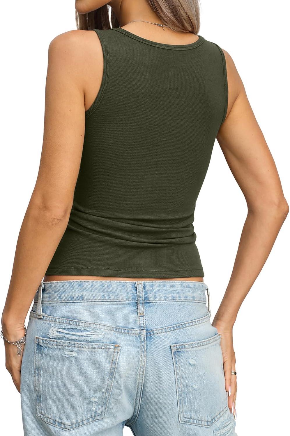 Women Cotton Ribbed Tank High Neck Sleeveless Shirts Basic Summer Going Out Top Cute Slim Fitted Clothes 2026(Army Green)