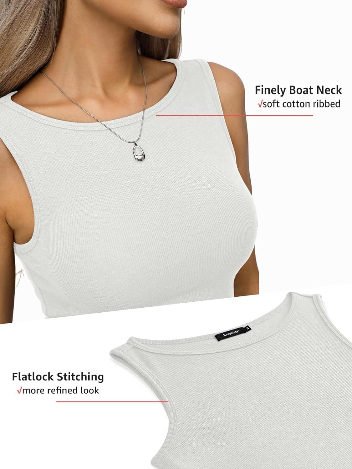 Women Cotton Ribbed Tank High Neck Sleeveless Shirts Basic Summer Going Out Top Cute Slim Fitted Clothes 2026(White)