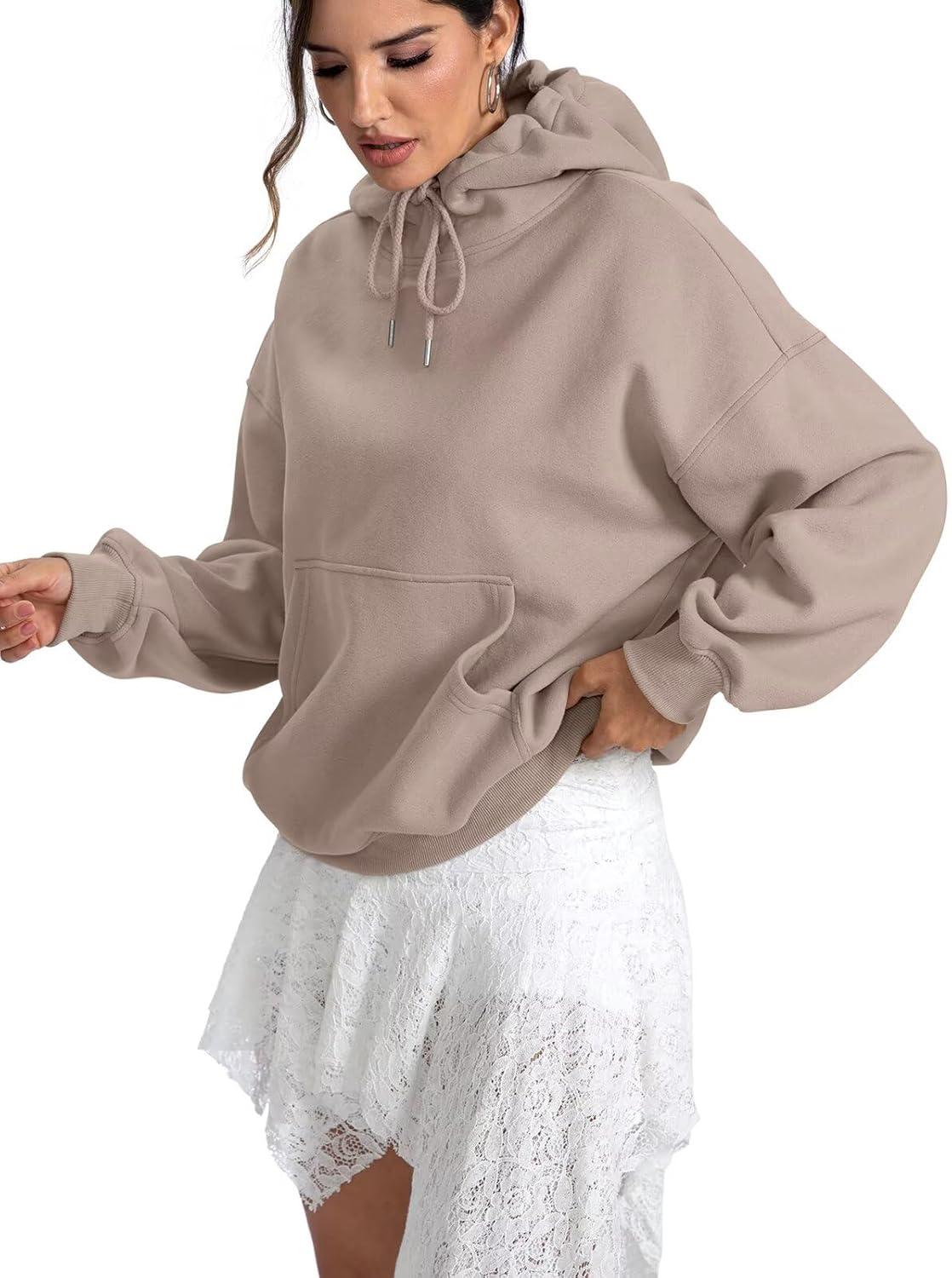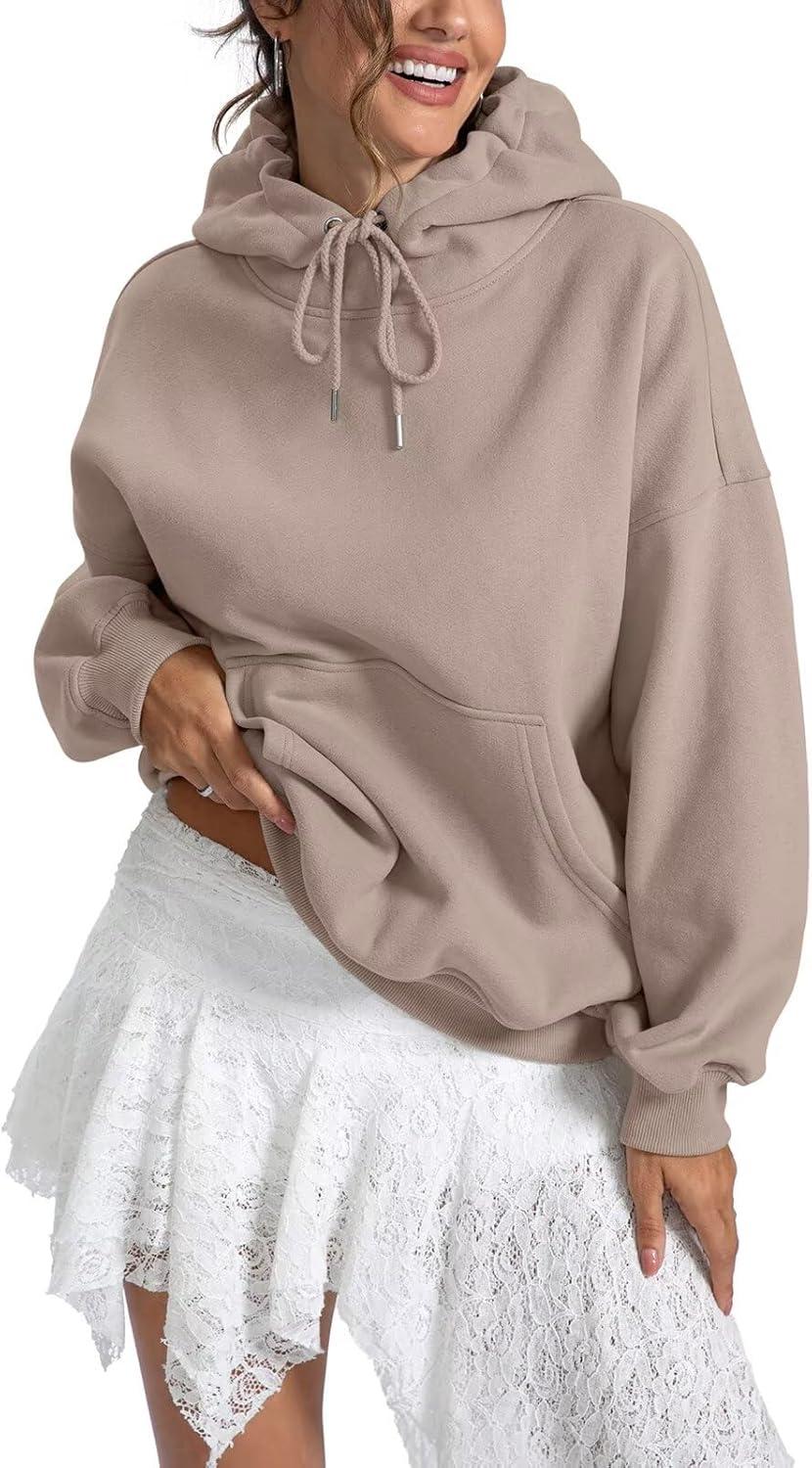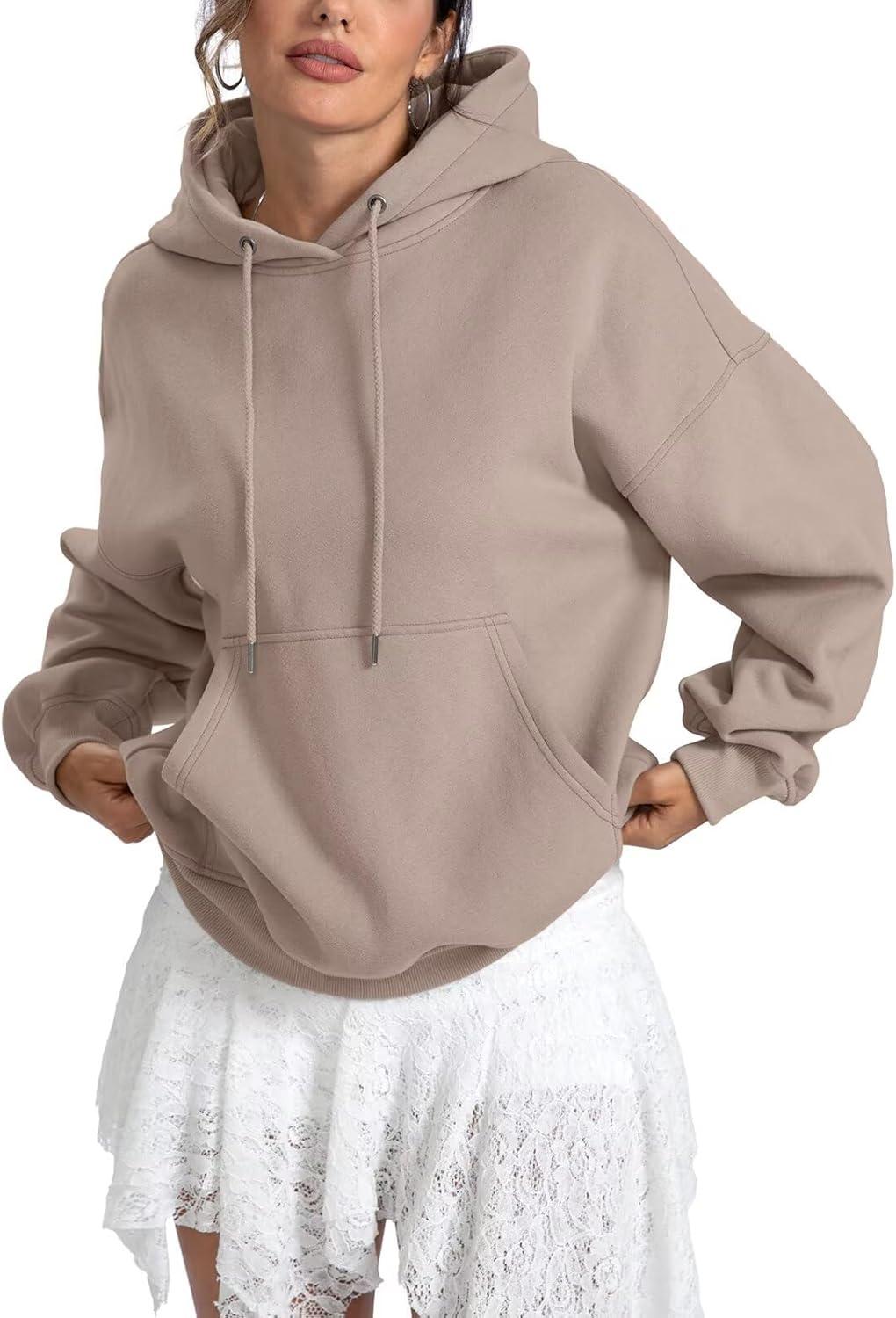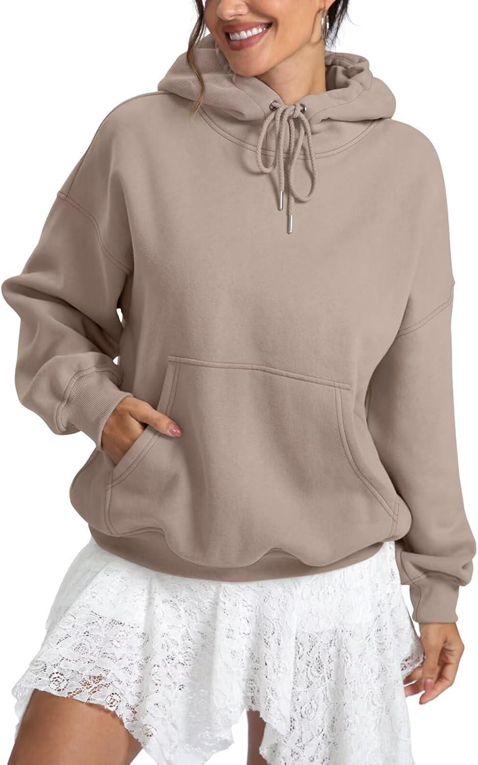 Women Fleece Hoodies with Pocket Oversized Hooded Sweatshirts Trendy Pullover Long Sleeve Top Fall Outfits 2026(Coffeegrey)