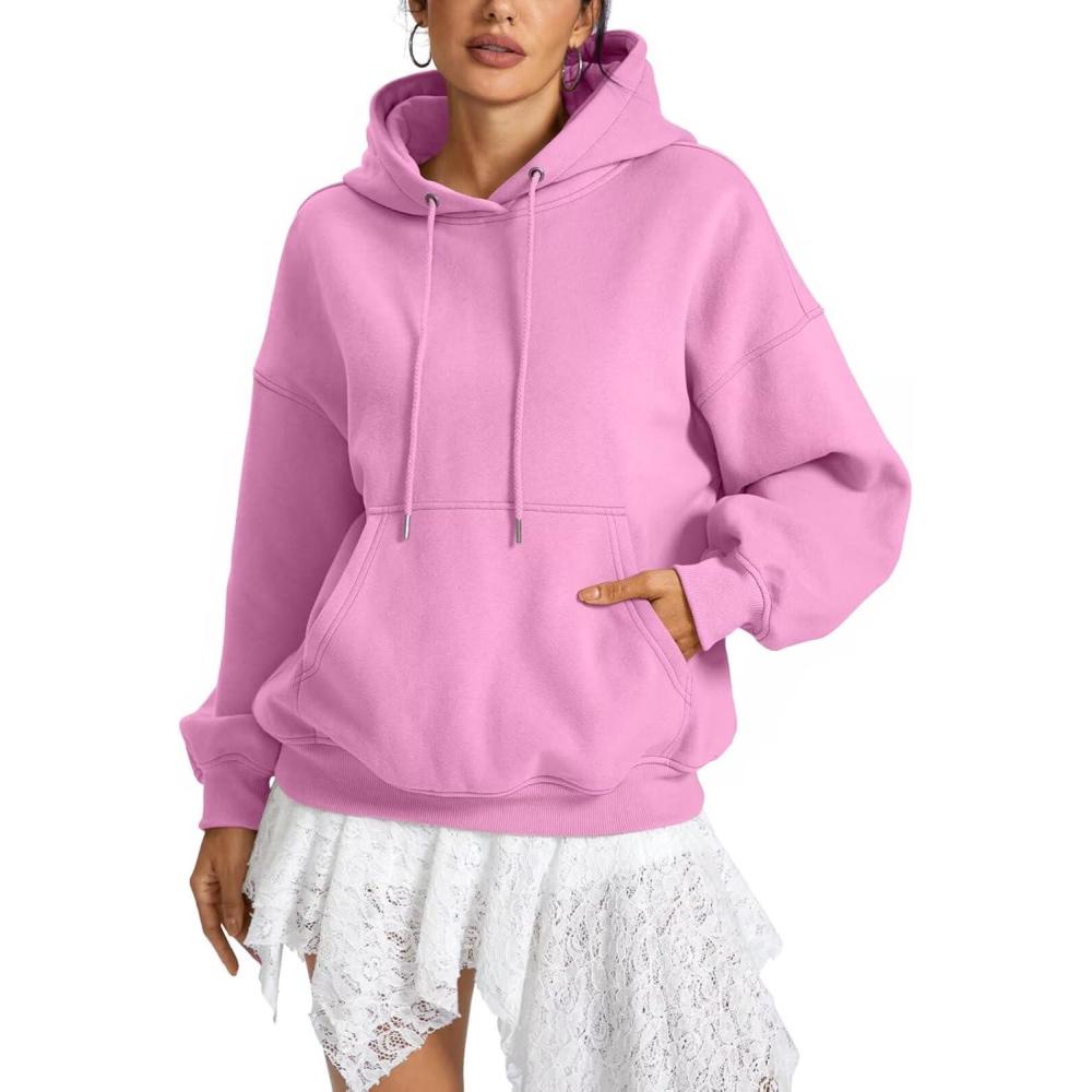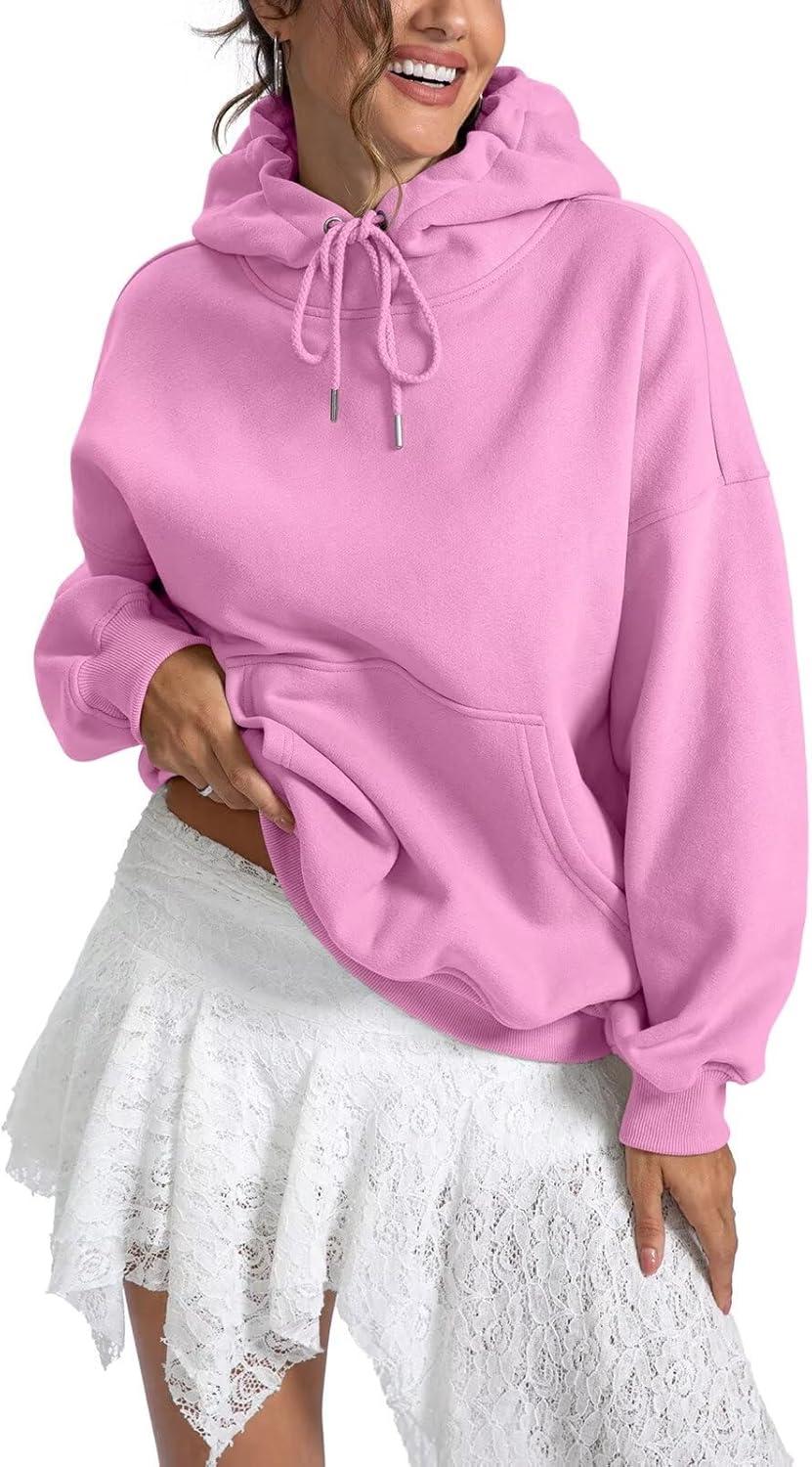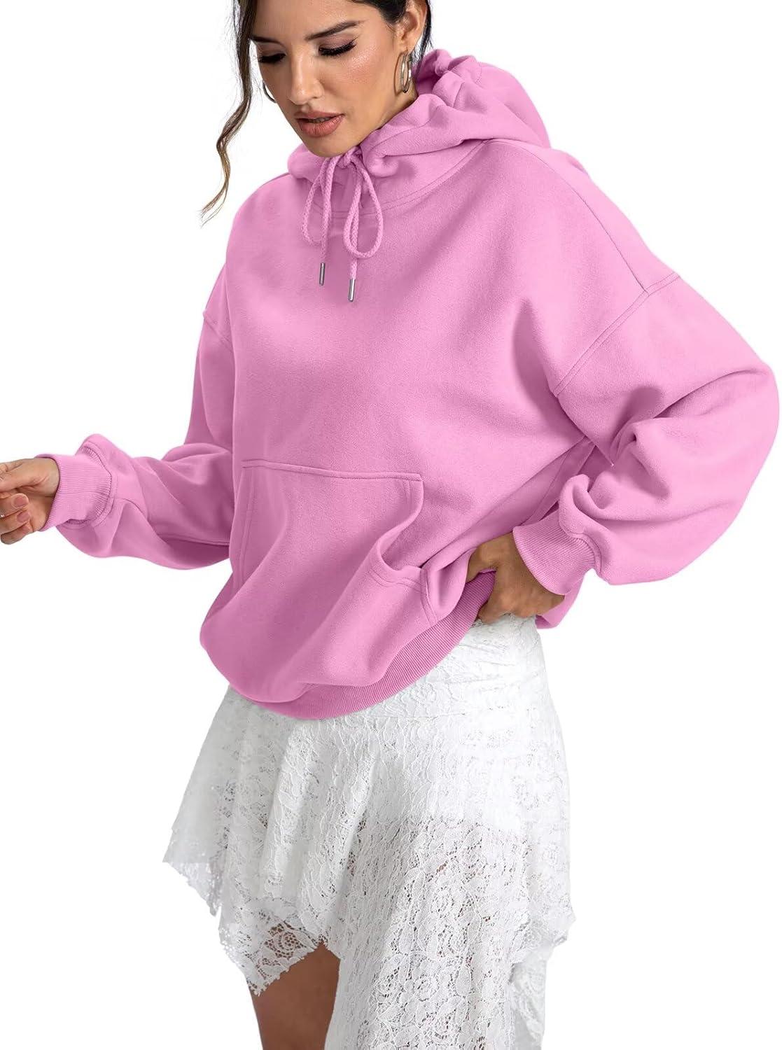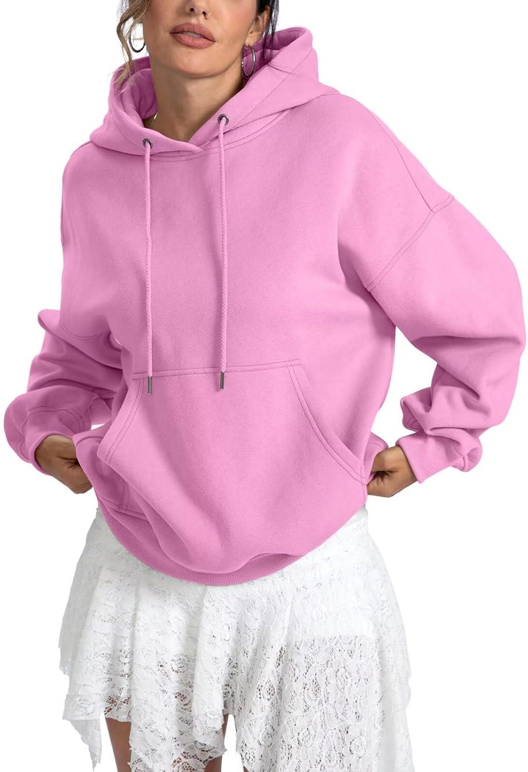 Women Fleece Hoodies with Pocket Oversized Hooded Sweatshirts Trendy Pullover Long Sleeve Top Fall Outfits 2026(Pink)