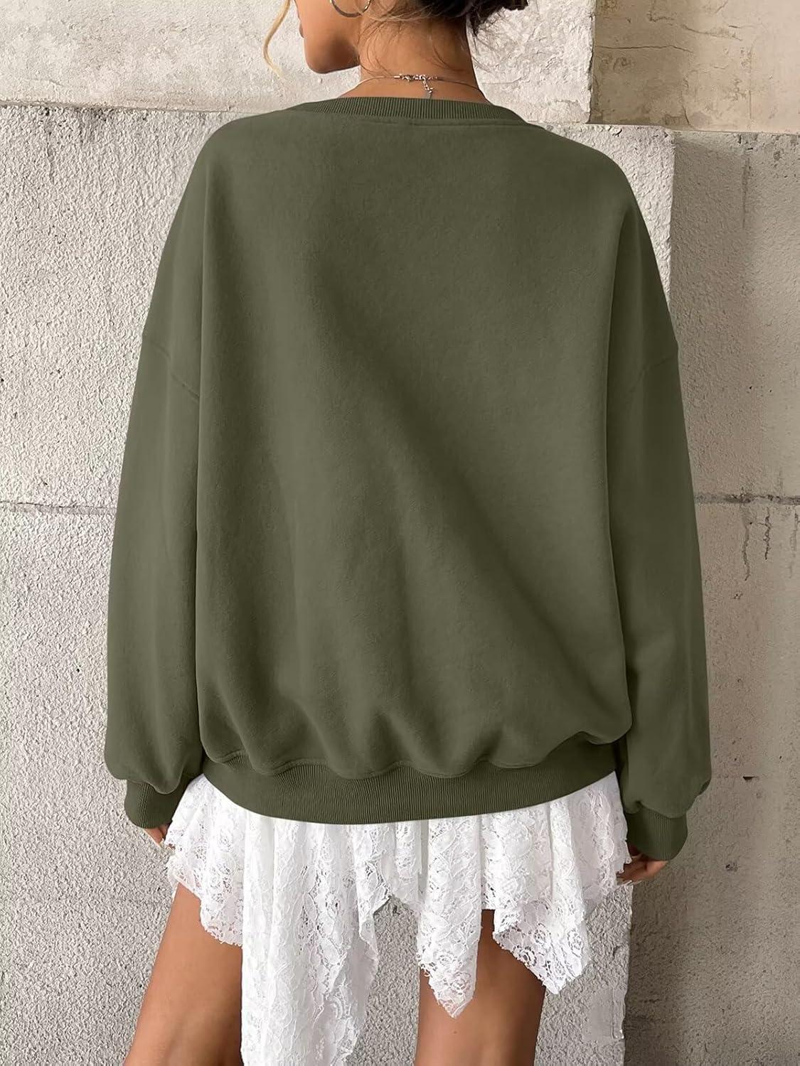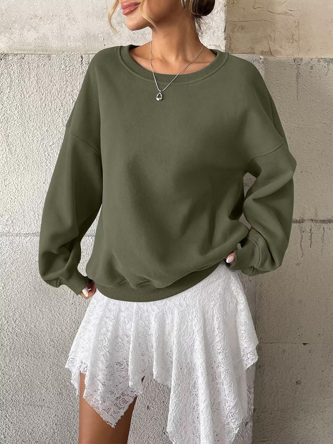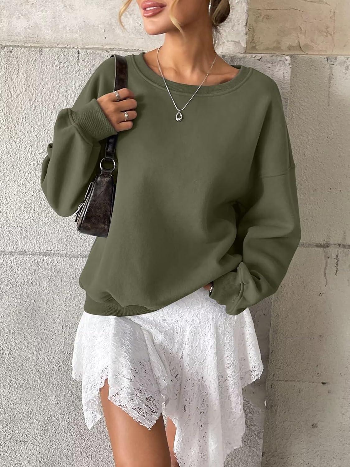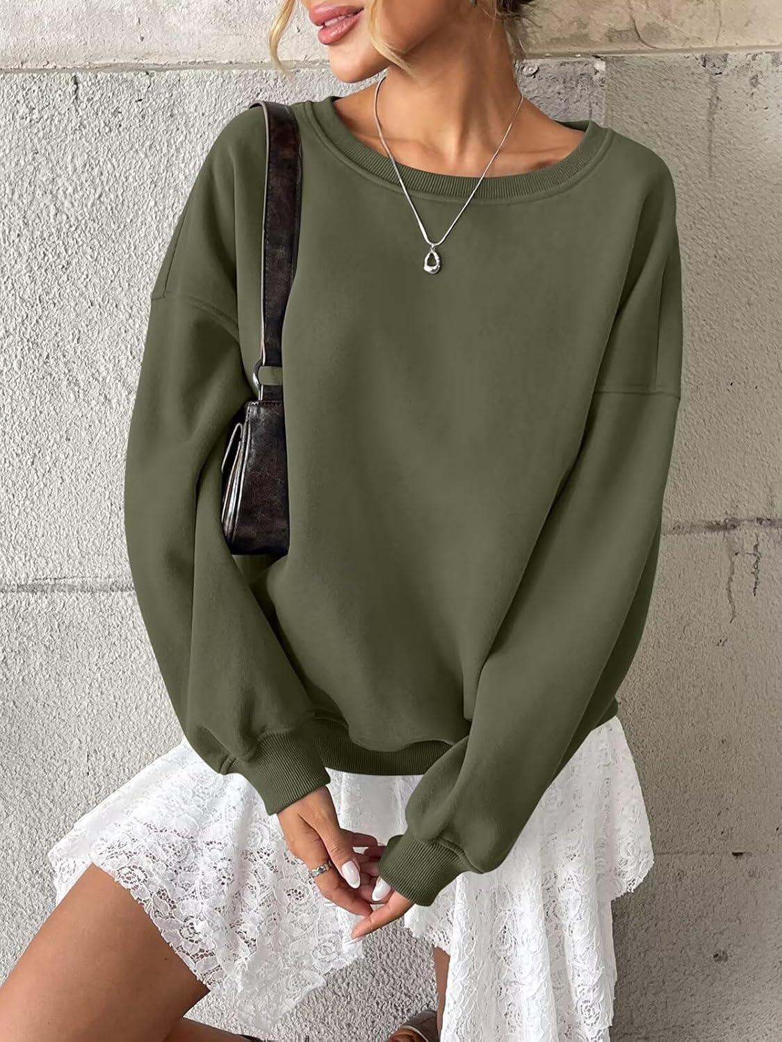 Women Fleece Sweatshirts Oversized Crewneck Pullover Trendy Long Sleeve Tops Fashion Fall Outfits Clothes 2025(Army Green)