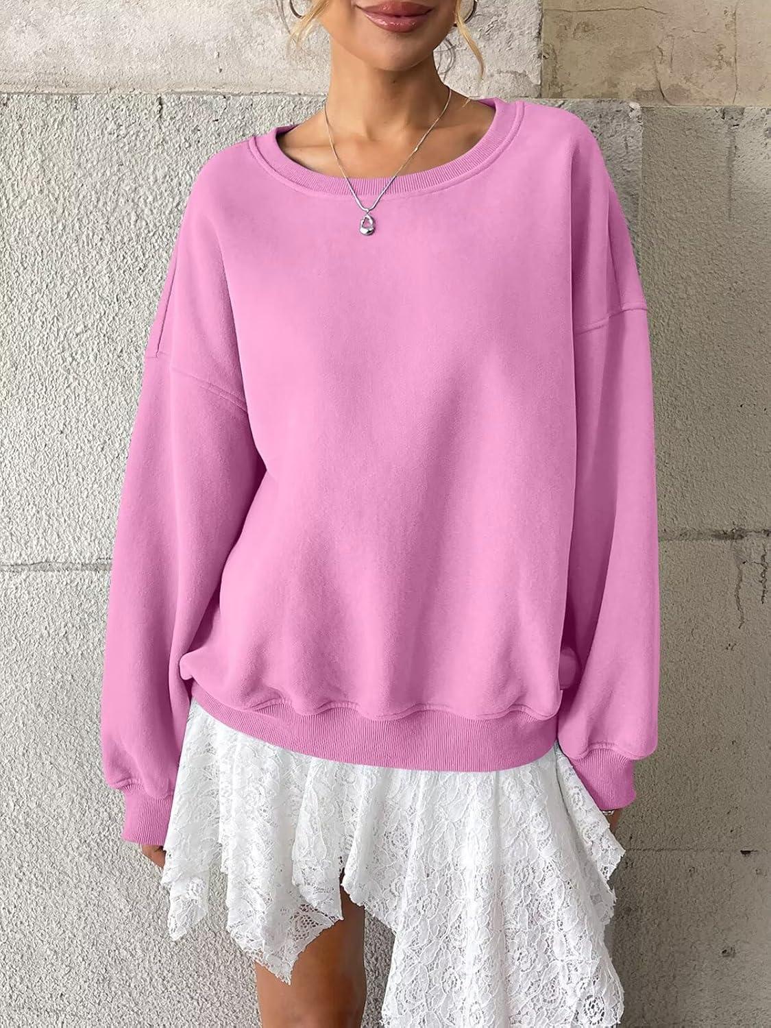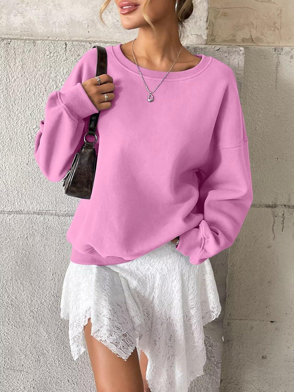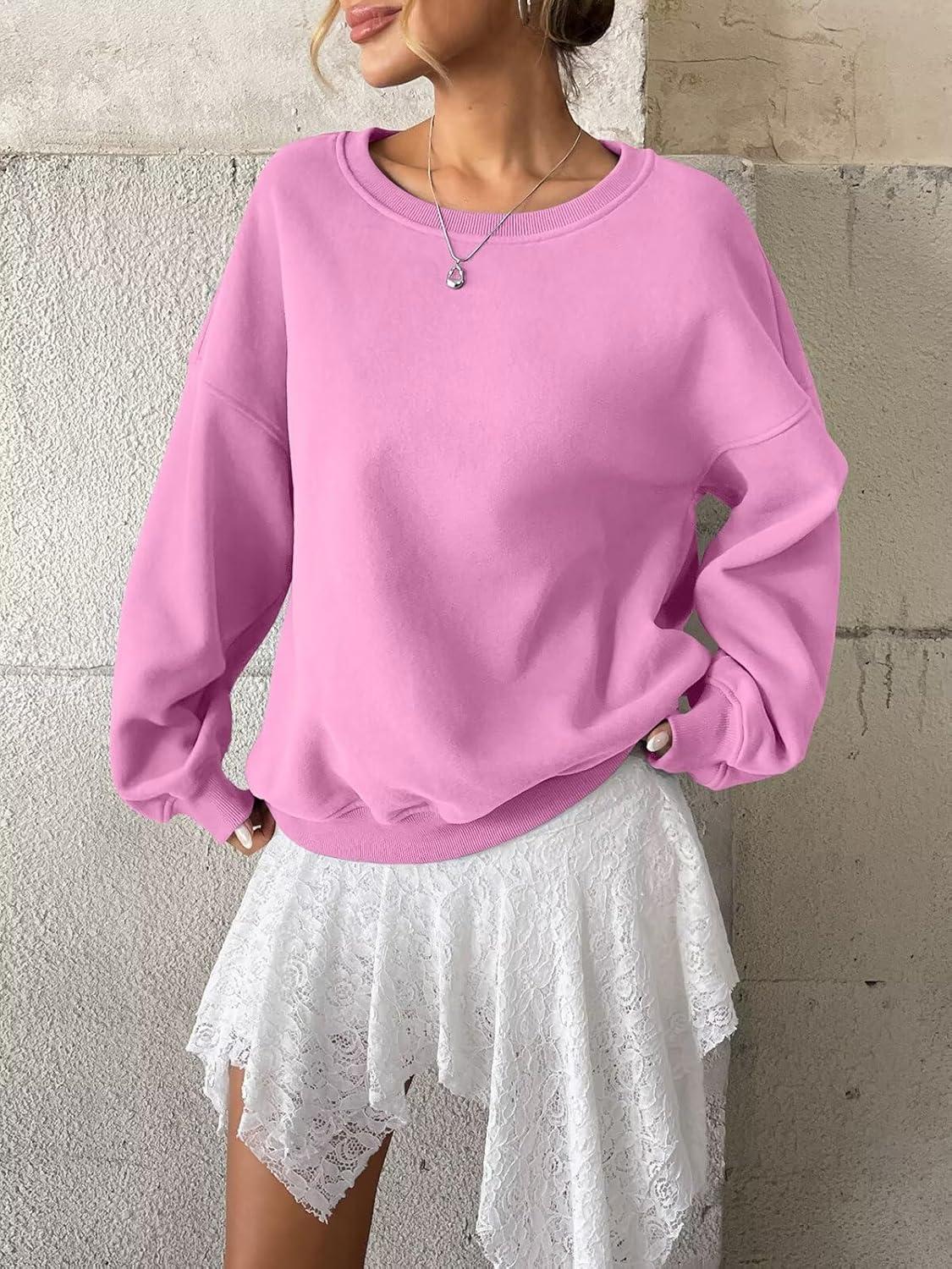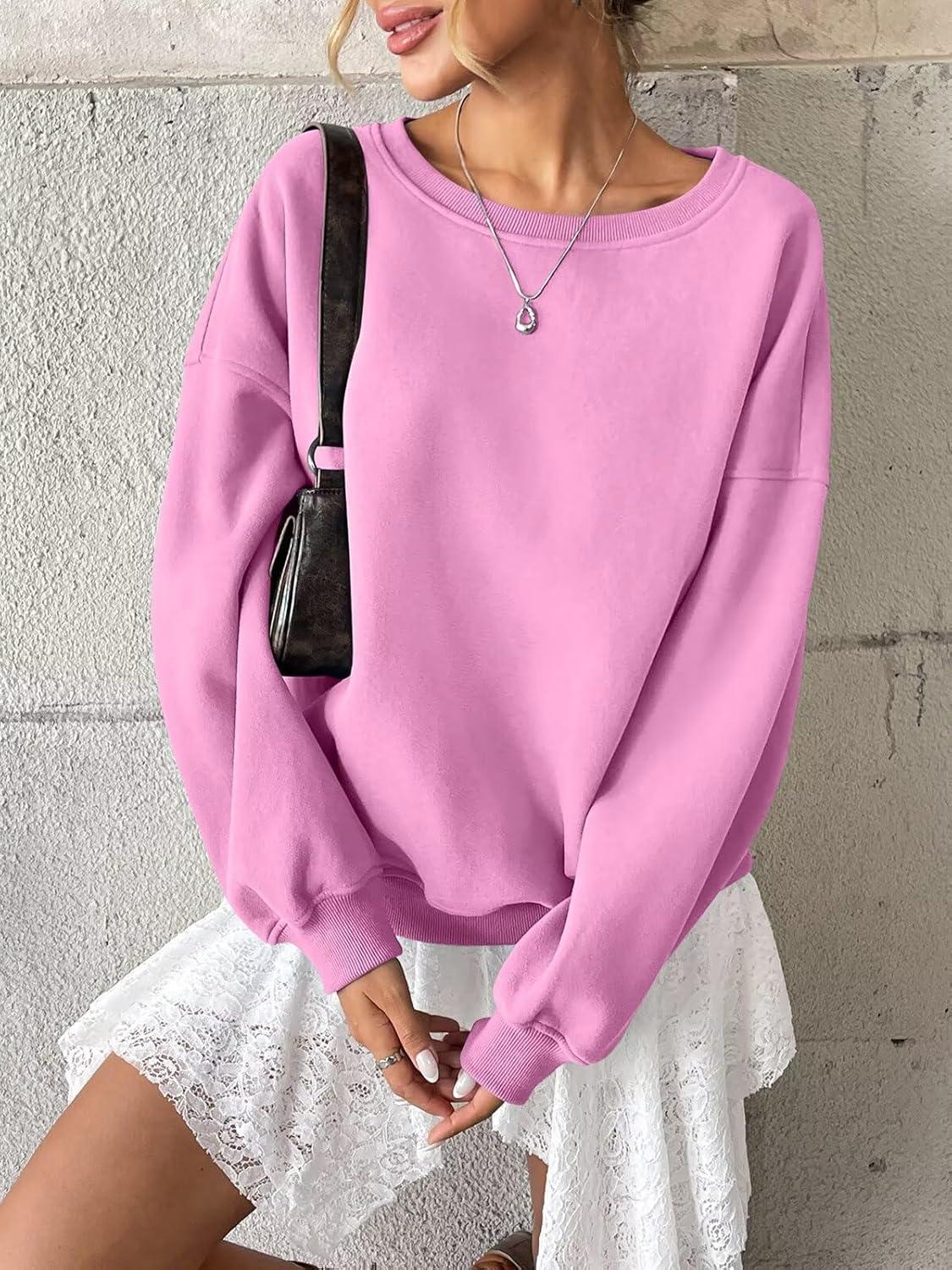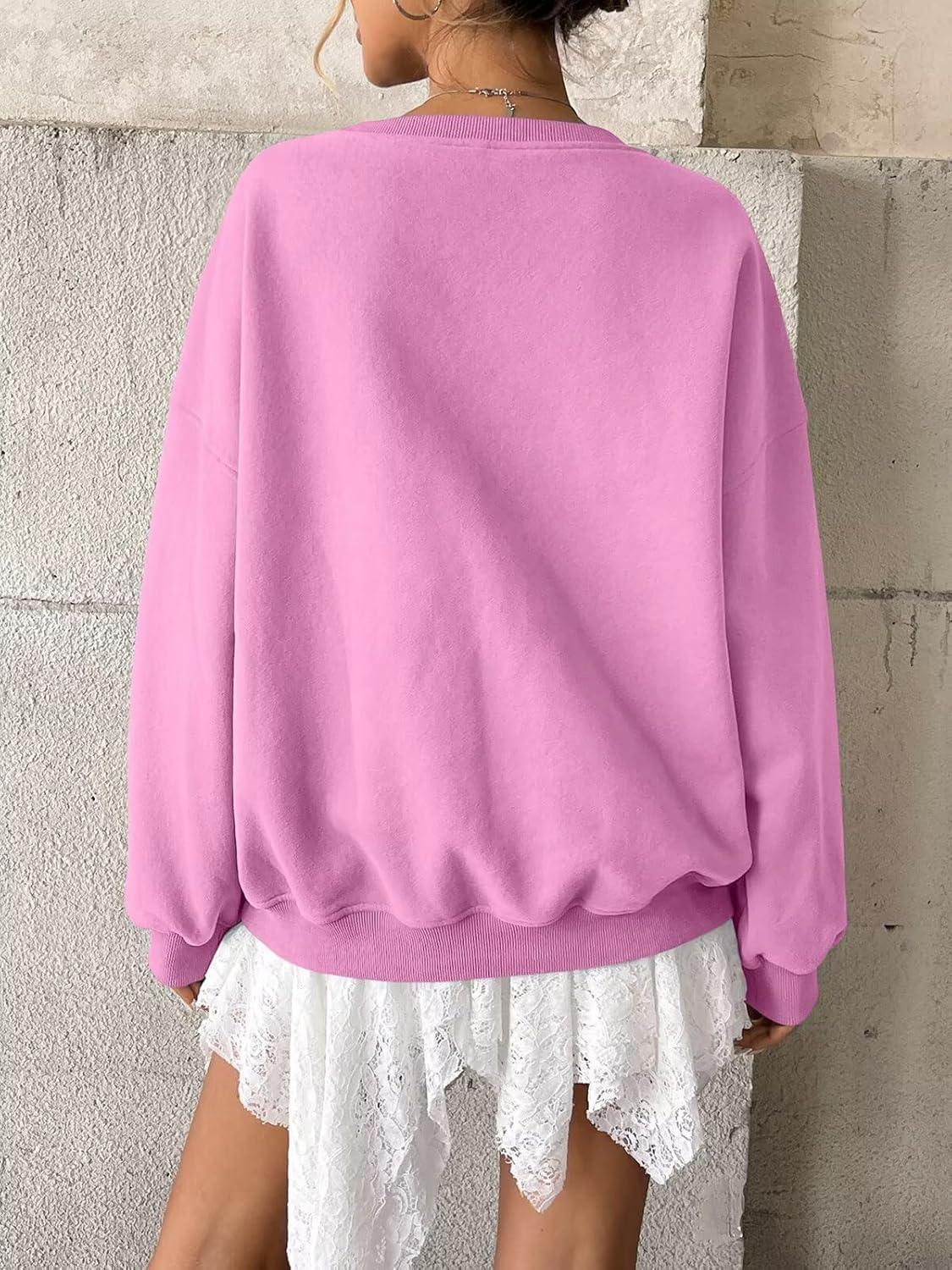 Women Fleece Sweatshirts Oversized Crewneck Pullover Trendy Long Sleeve Tops Fashion Fall Outfits Clothes 2025(Pink)