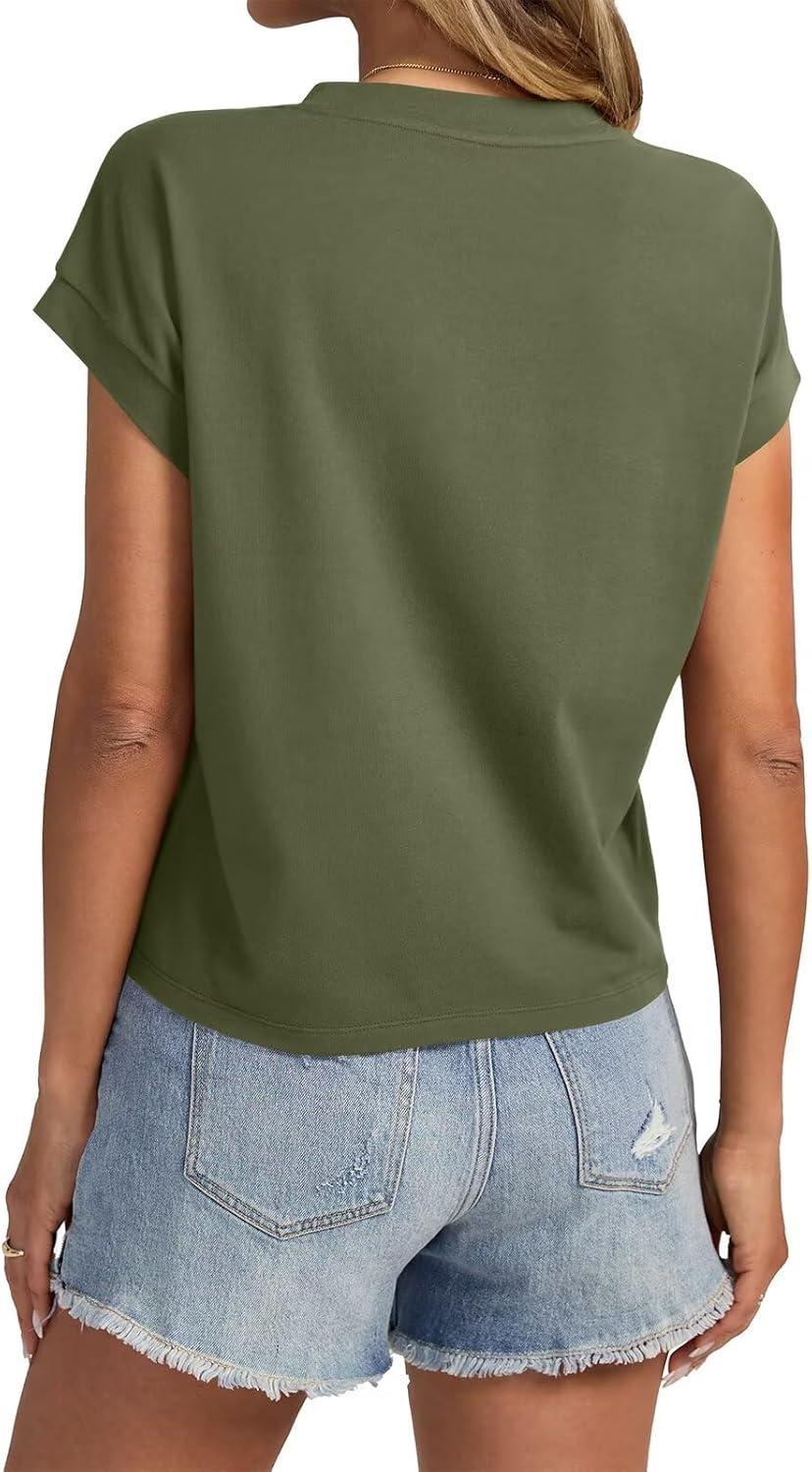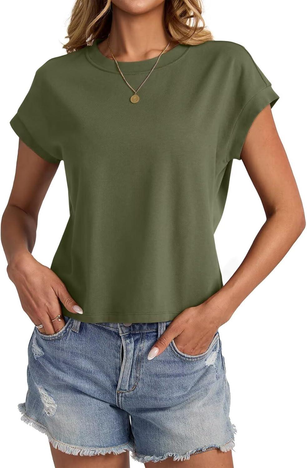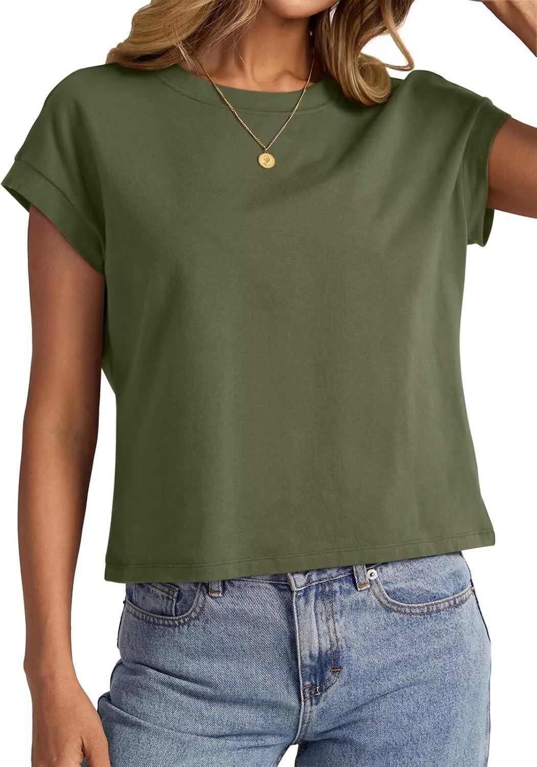Womens Cap Sleeve Crop Tops Cotton T Shirts Crewneck Loose Fit Short Sleeves Tee Summer Fashion Clothes 2025(A-army Green)