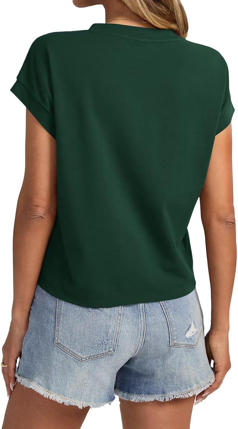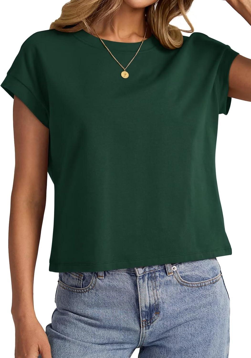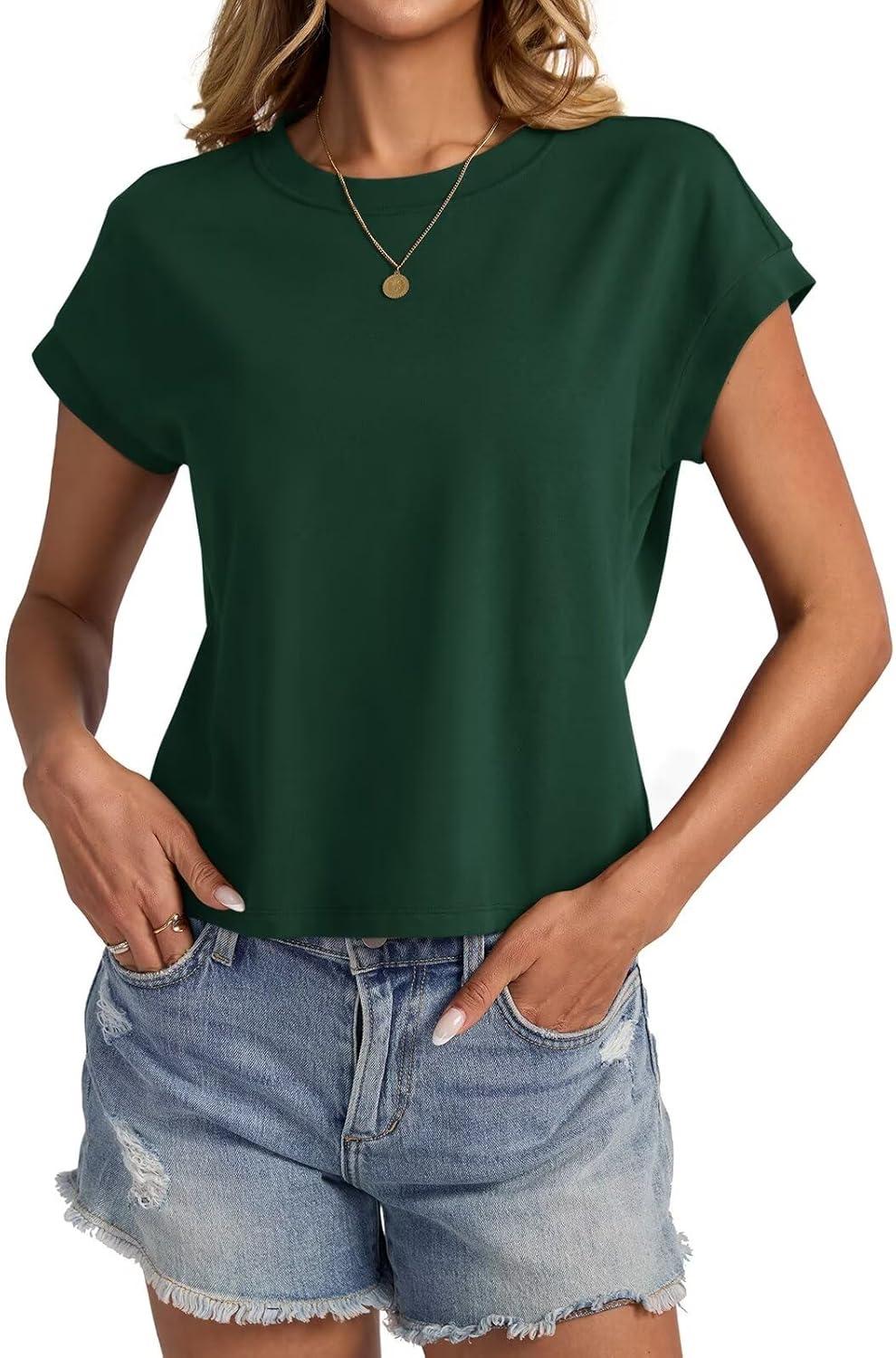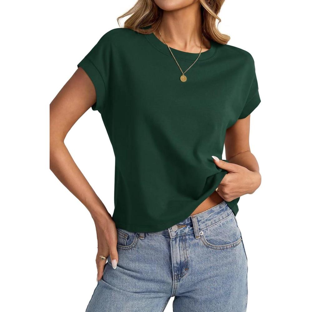 Womens Cap Sleeve Crop Tops Cotton T Shirts Crewneck Loose Fit Short Sleeves Tee Summer Fashion Clothes 2025(A-deep Green)