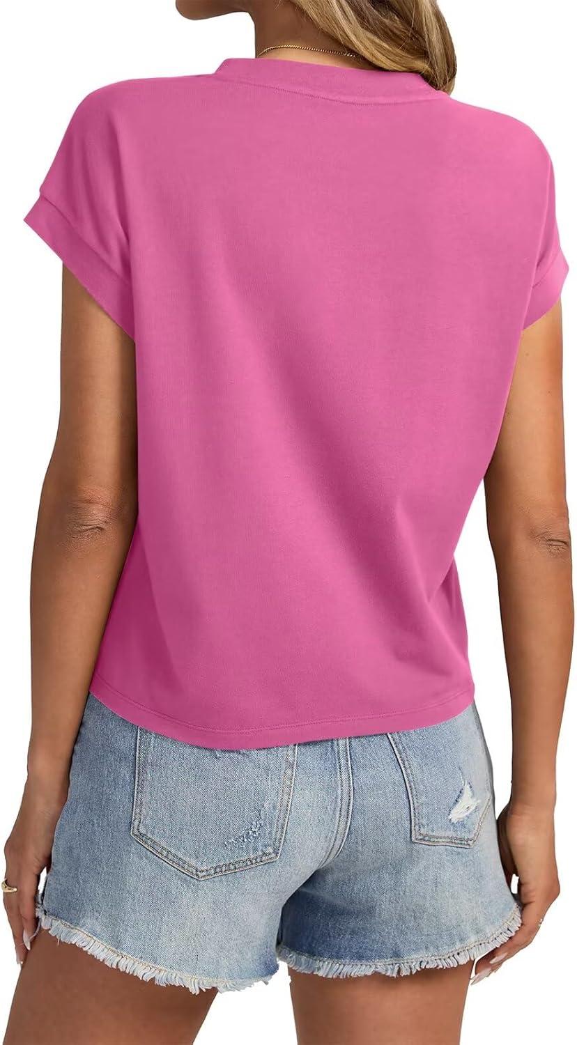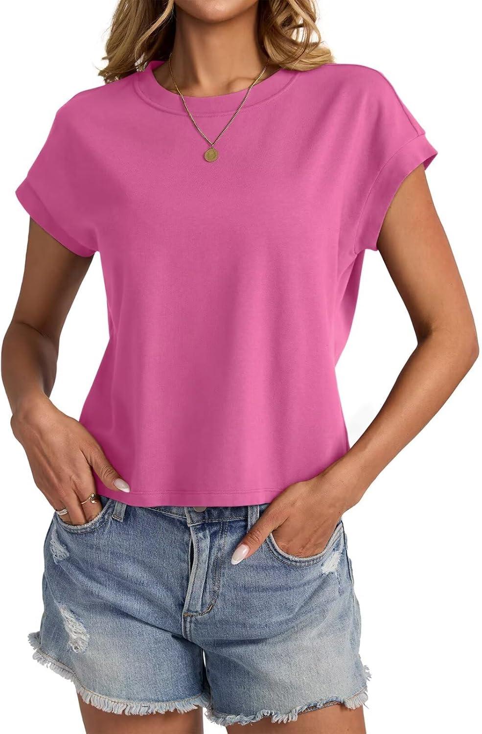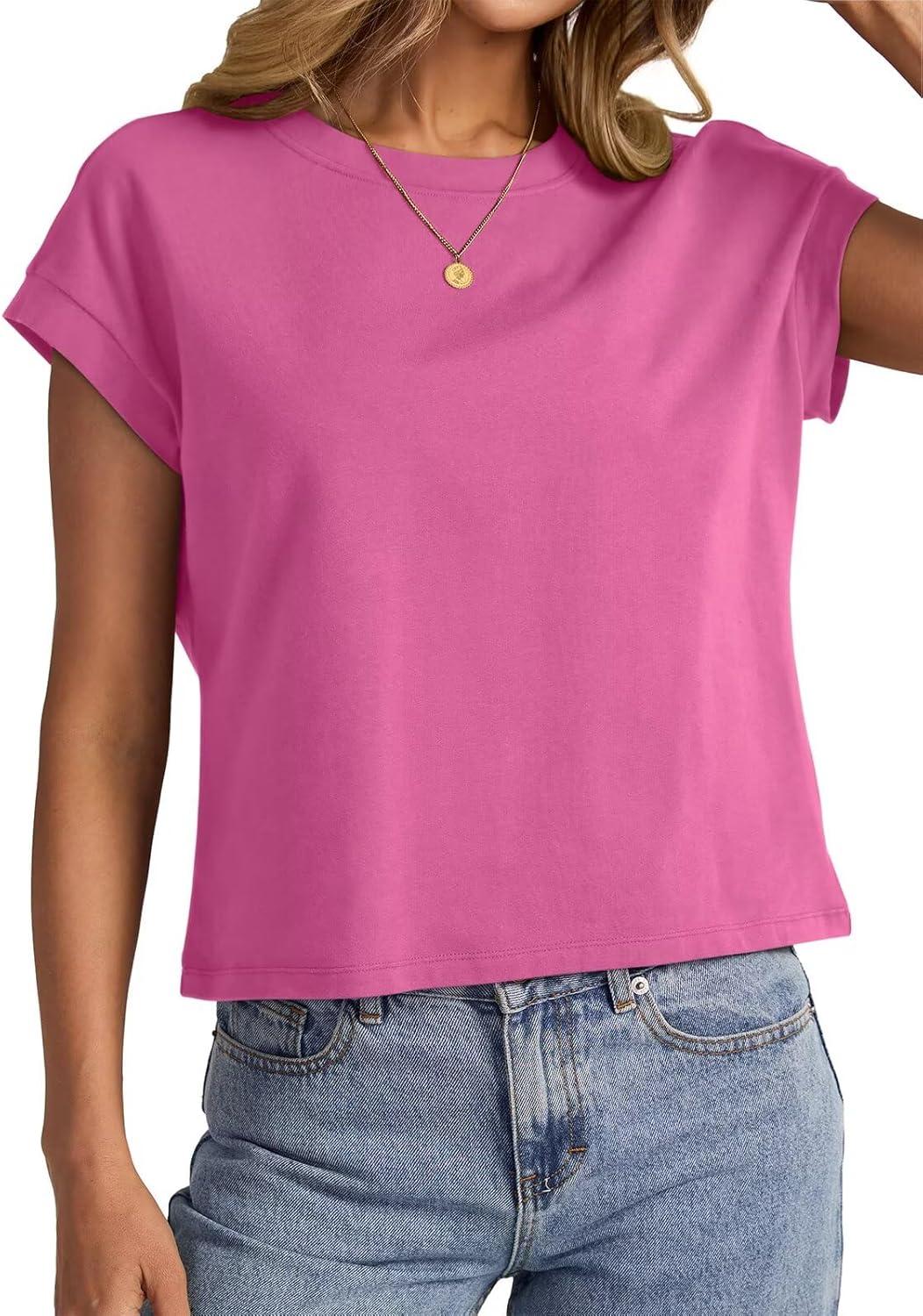 Womens Cap Sleeve Crop Tops Cotton T Shirts Crewneck Loose Fit Short Sleeves Tee Summer Fashion Clothes 2025(A-hot Pink)
