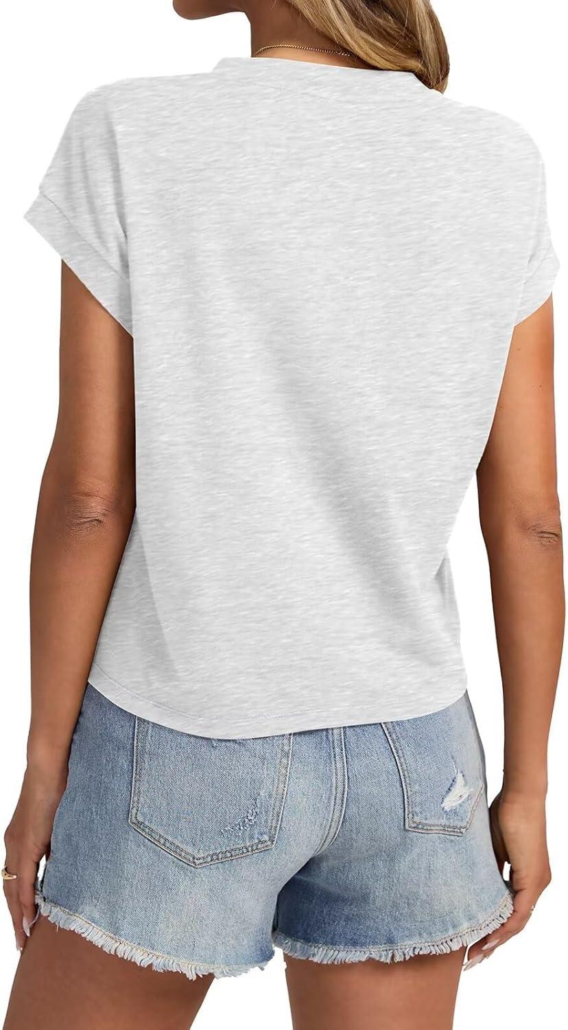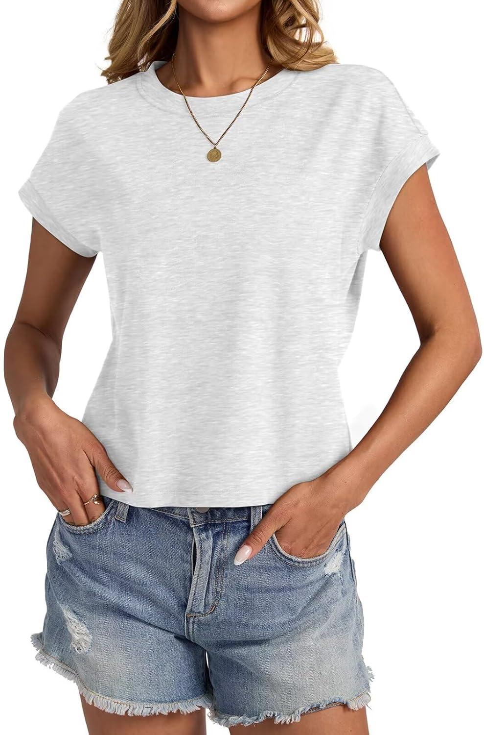 Womens Cap Sleeve Crop Tops Cotton T Shirts Crewneck Loose Fit Short Sleeves Tee Summer Fashion Clothes 2025(A-light Grey)