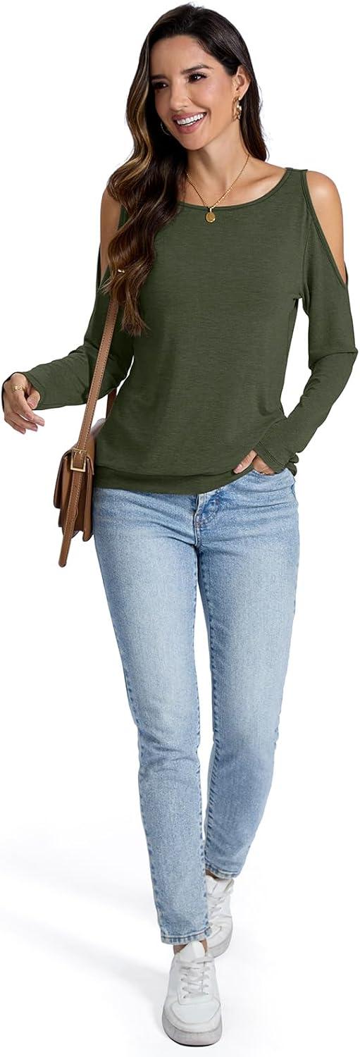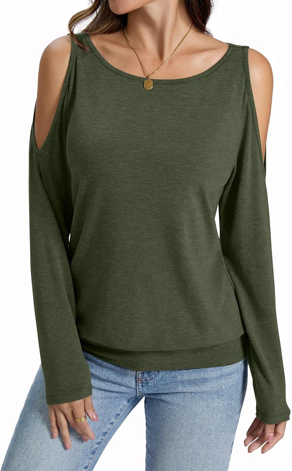 Womens Cold Shoulder Tops Banded Bottom Long Sleeve Shirts Boat Neck Fall Sexy Casual Outfits 2025(Army Green)