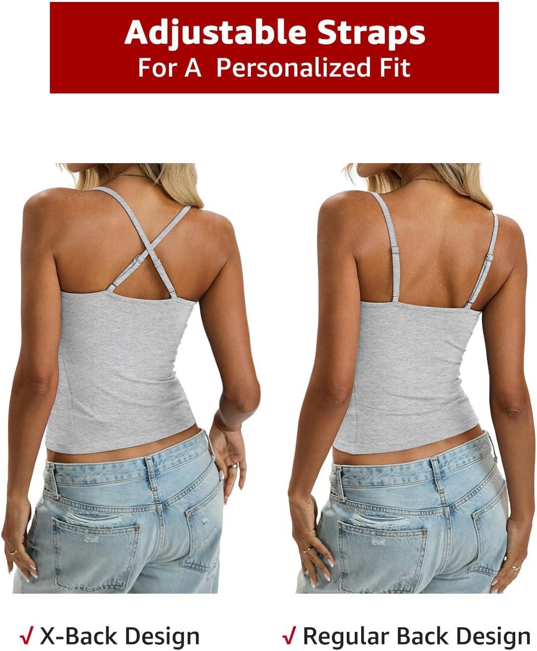 Womens Cotton Camisoles Lace V Neck Tank Top Spaghetti Strap Sexy Slim Fitted Cami Tops Going Out Y2K Shirts(Light Heather Grey)