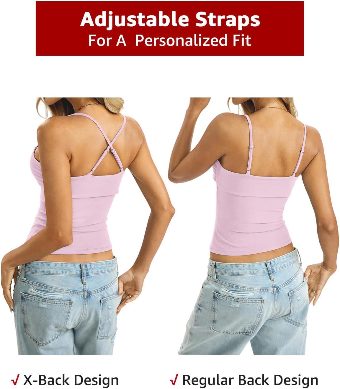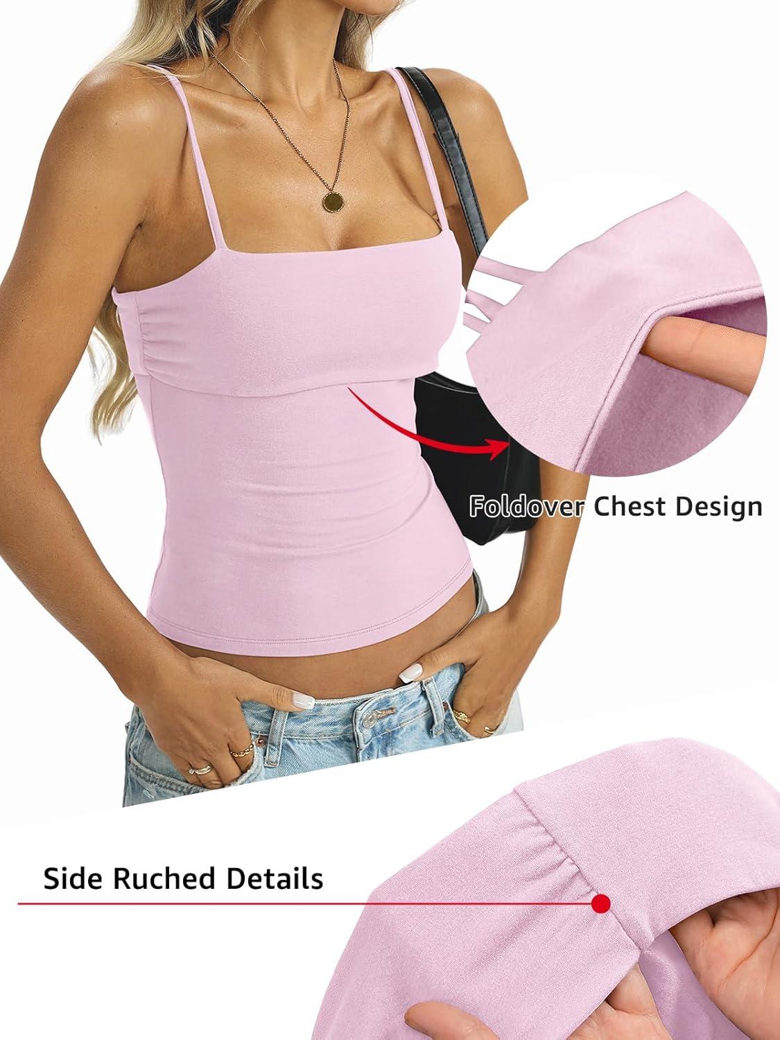 Womens Cotton Foldover Tank Tops Sexy Square Neck Spaghetti Strap Camisole Fitted Y2K Going Out Shirts 2026(Baby Pink)
