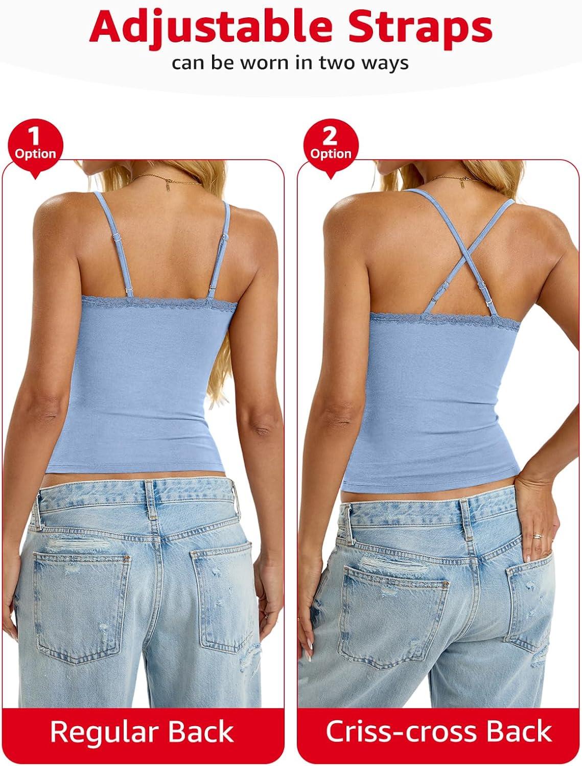 Womens Cotton Lace Camisole Scoop Neck Sexy Cami Top Adjustable Strap Going Out Tops Y2K Summer Clothes 2025(Baby Blue)