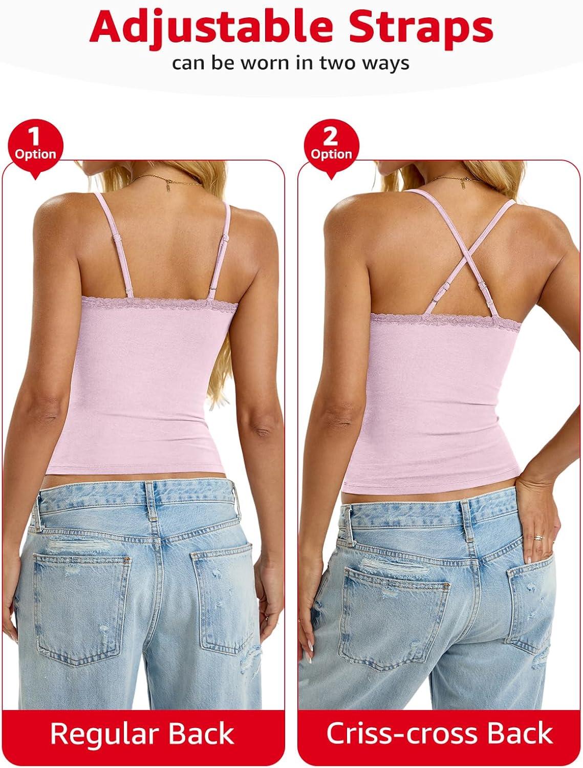 Womens Cotton Lace Camisole Scoop Neck Sexy Cami Top Adjustable Strap Going Out Tops Y2K Summer Clothes 2025(Baby Pink)