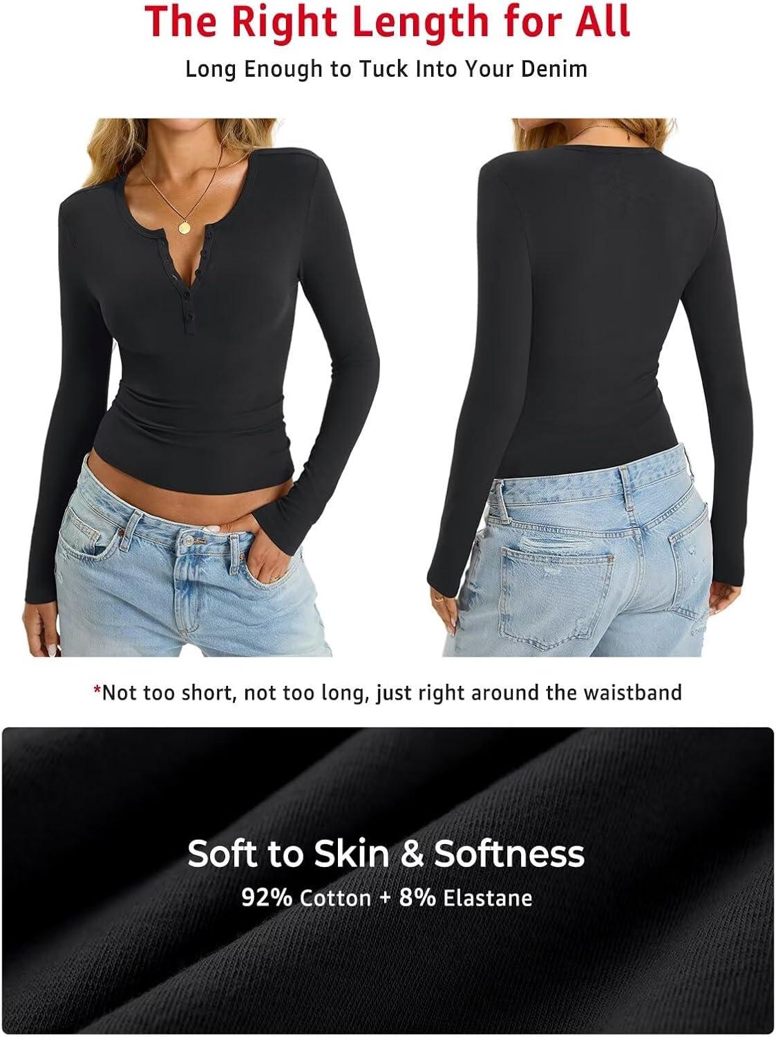Be the first to review “Womens Cotton Long Sleeve Shirts V Neck Henley Tops Slim Fit Basic Going Out Tshirts Fall Fashion Outfits 2025(Black)”