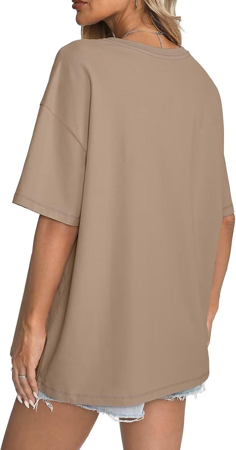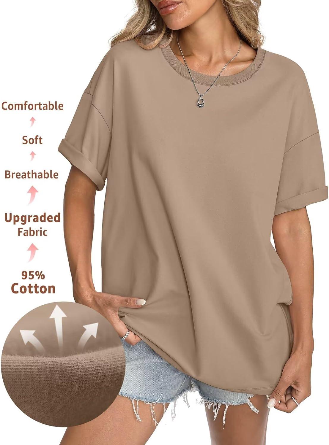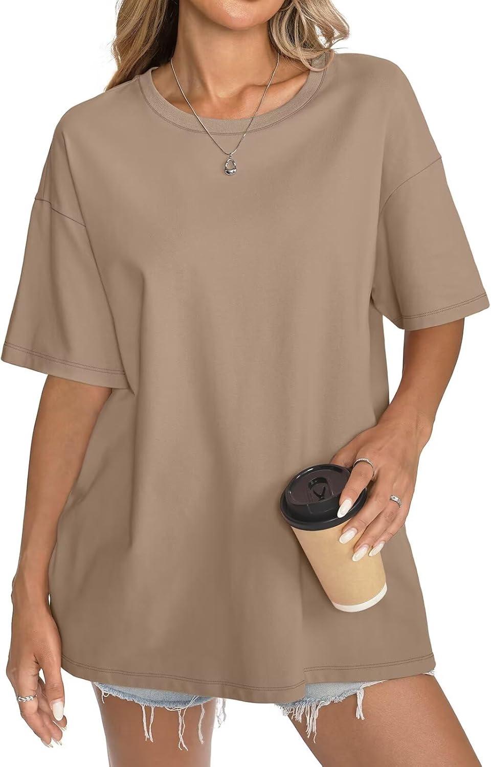Womens Cotton Oversized T Shirts Short Sleeve Tops Ribbed Crewneck Loose Fit Tee Summer Fashion Clothes 2026(Khaki)