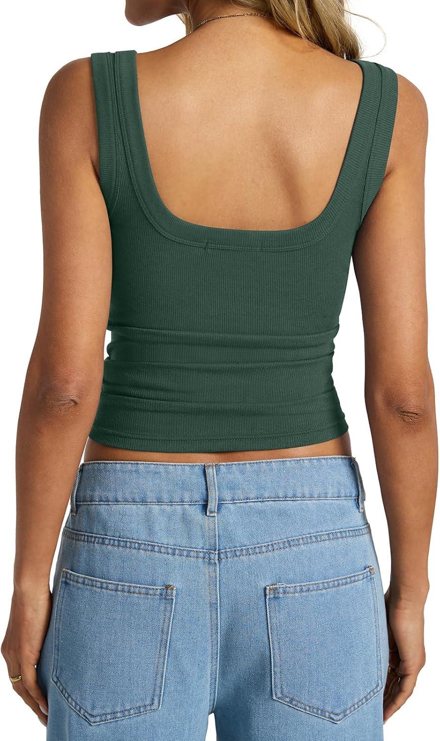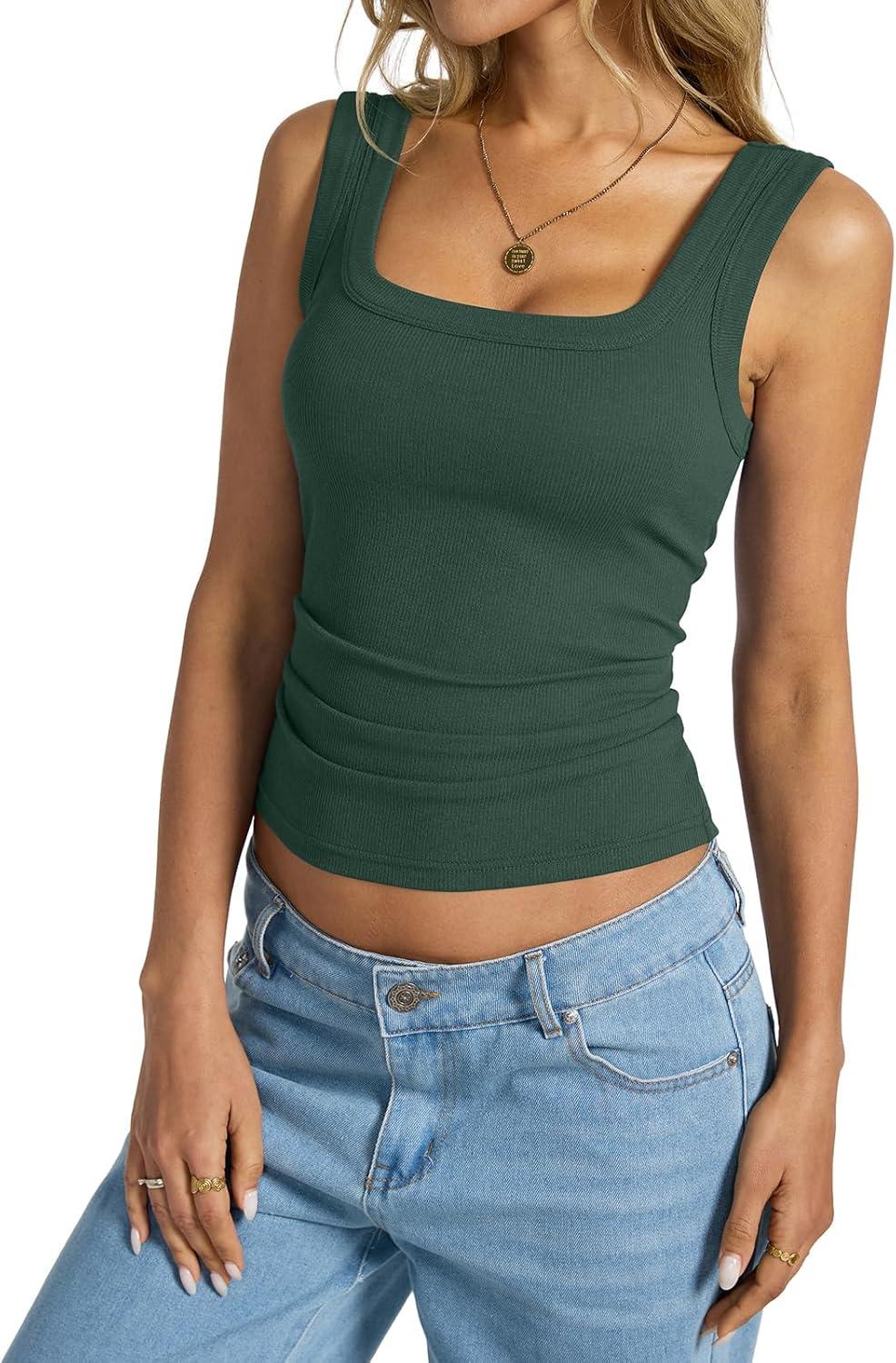 Womens Cotton Ribbed Square Neck Tank Tops Basic Backless Sleeveless Summer Cami Shirts 2025(Green)