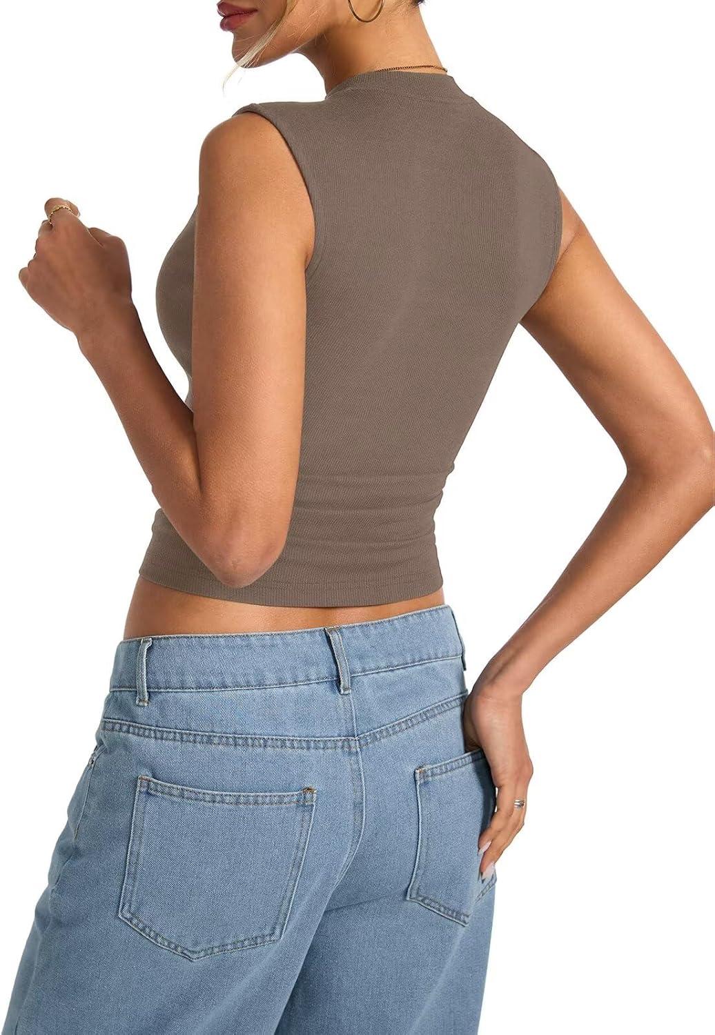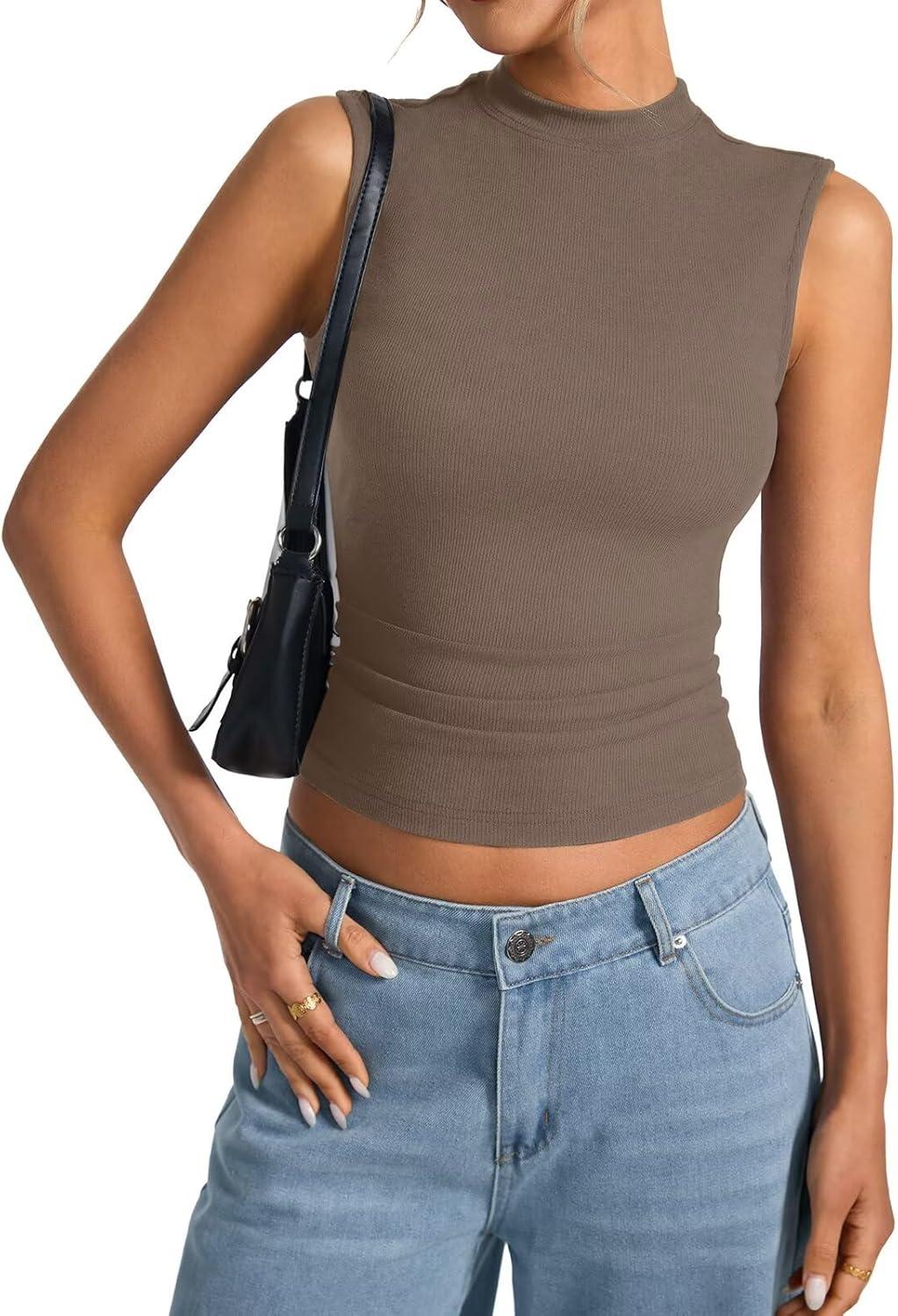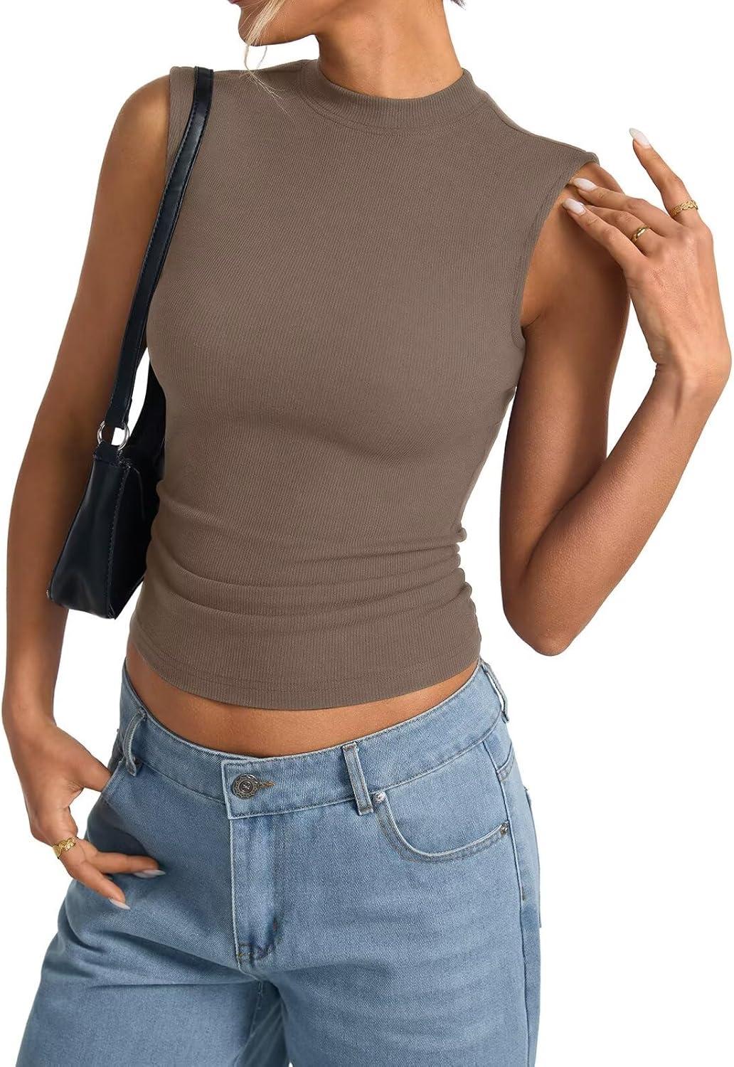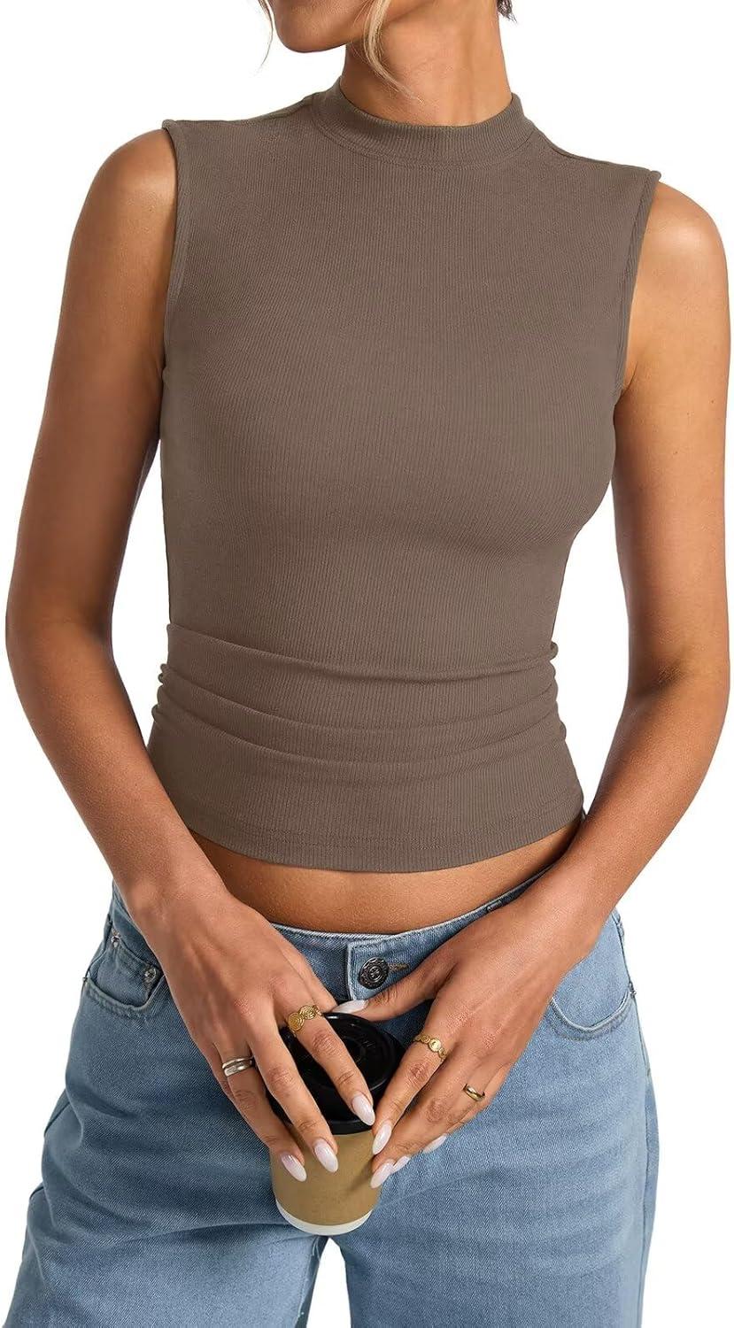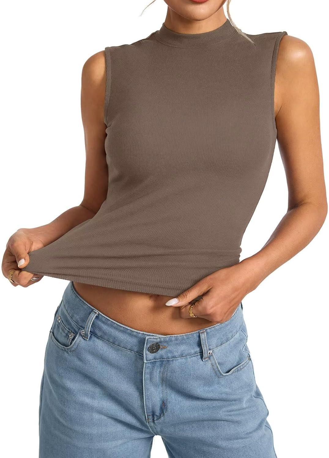 Womens Cotton Ribbed Tank Tops Sleeveless Mock High Neck Top Fitted Basic Summer Cami Shirts Y2K Outfits 2025(Coffee)