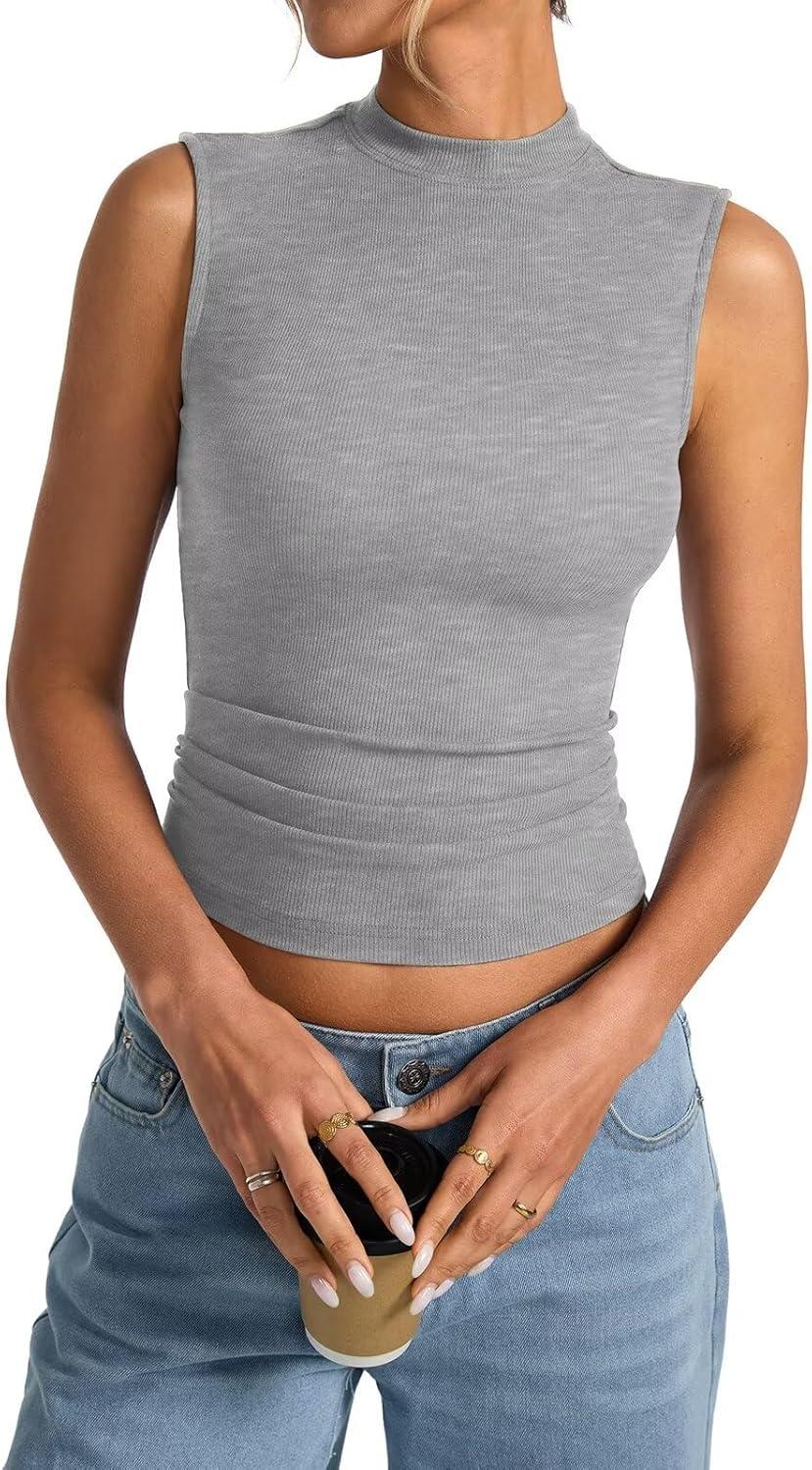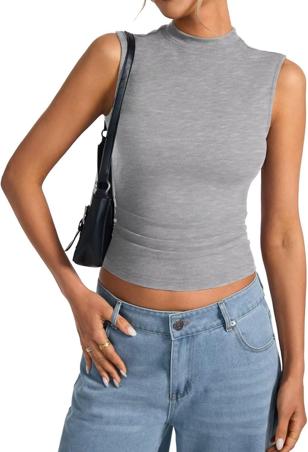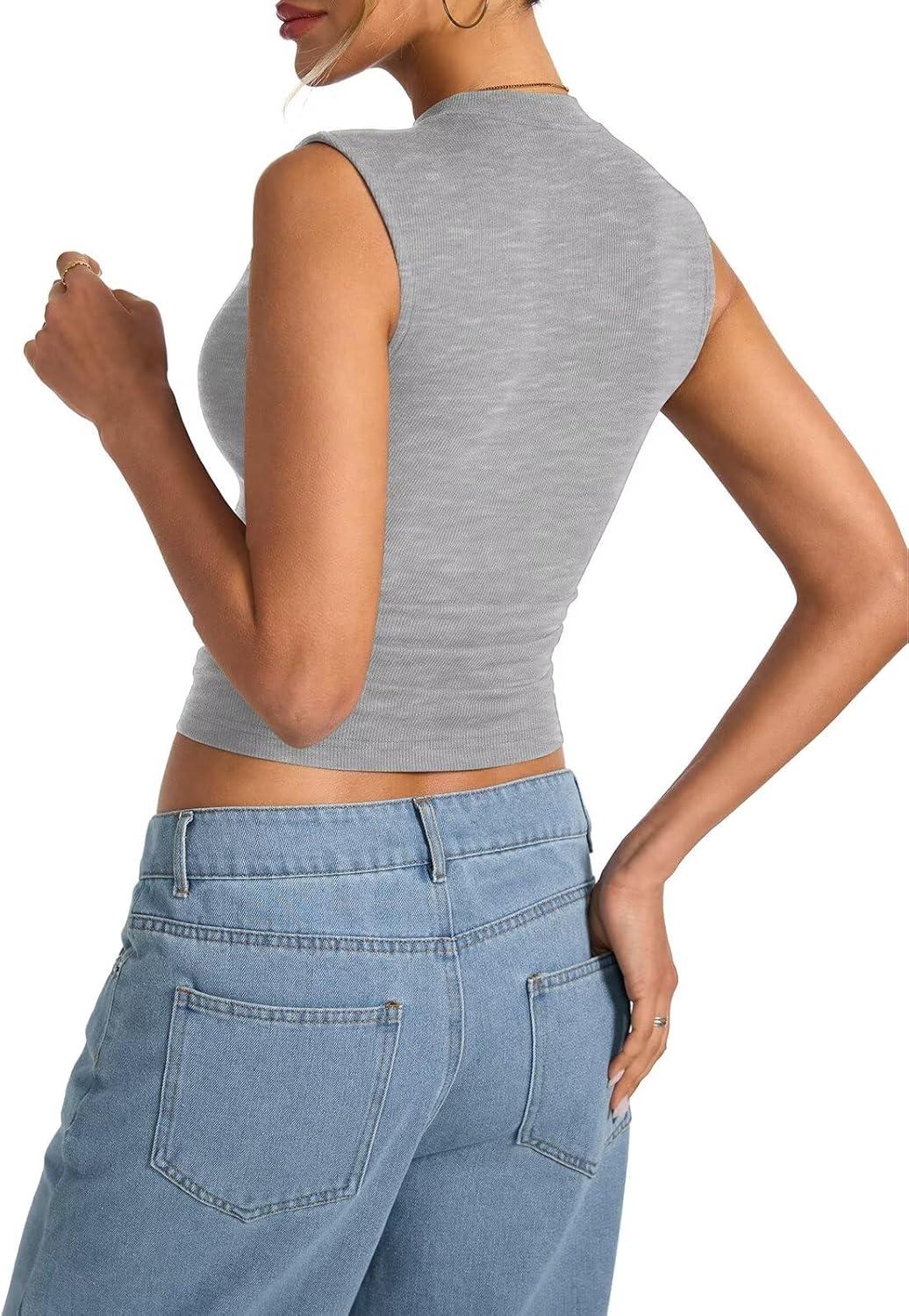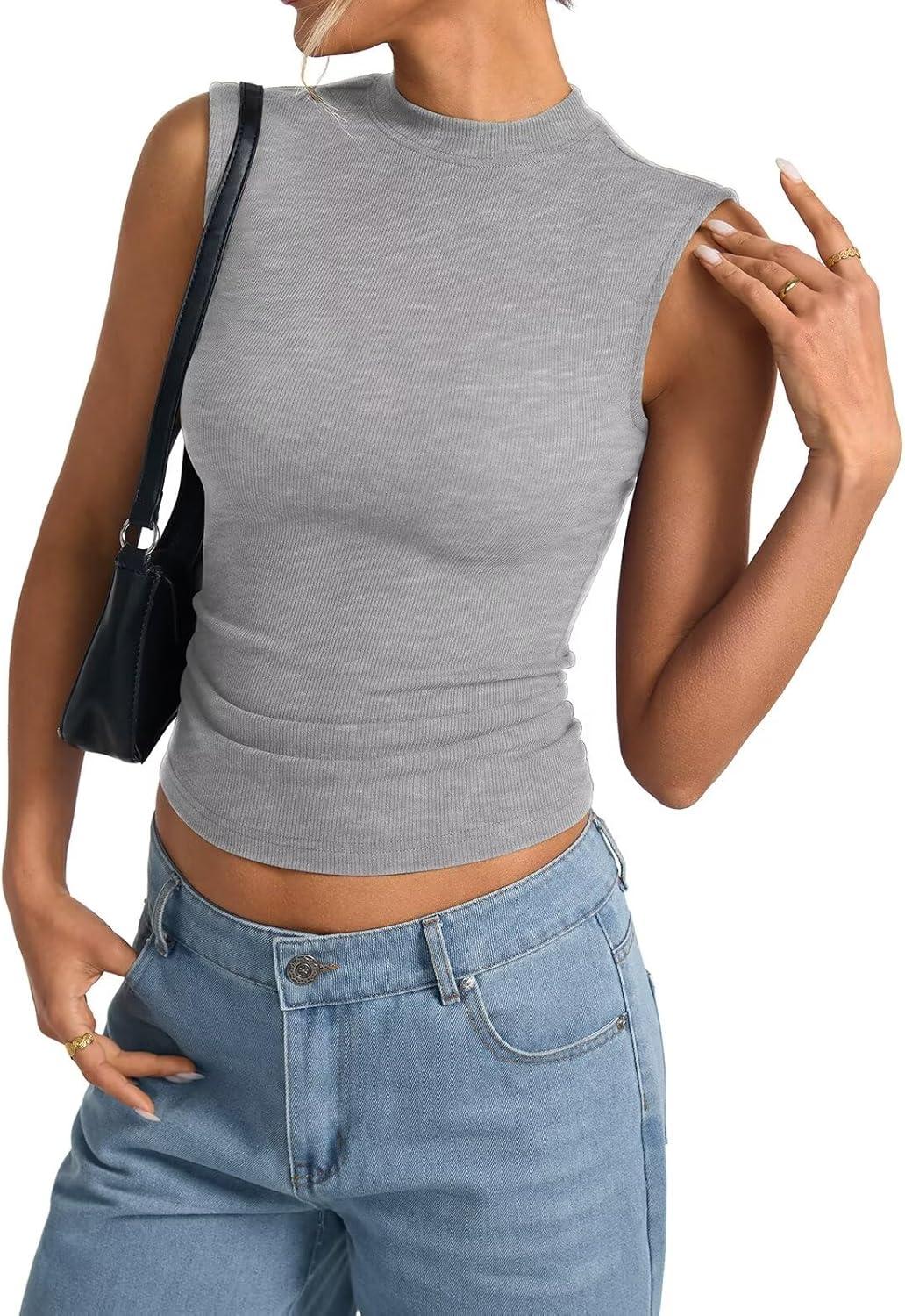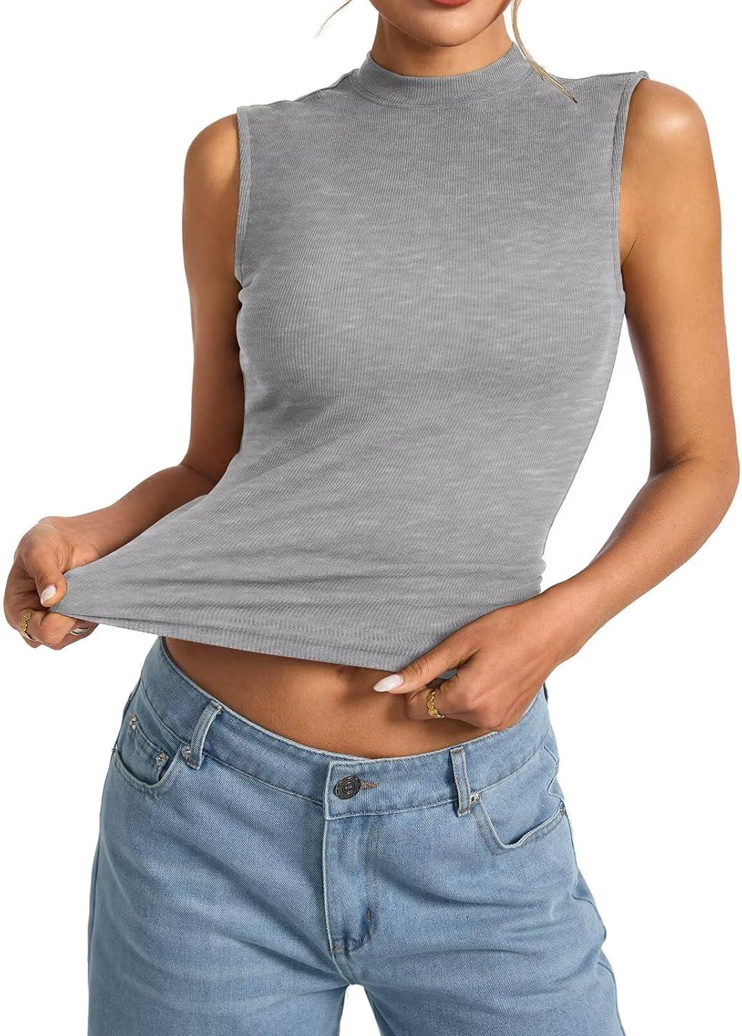Womens Cotton Ribbed Tank Tops Sleeveless Mock High Neck Top Fitted Basic Summer Cami Shirts Y2K Outfits 2025(Gray)