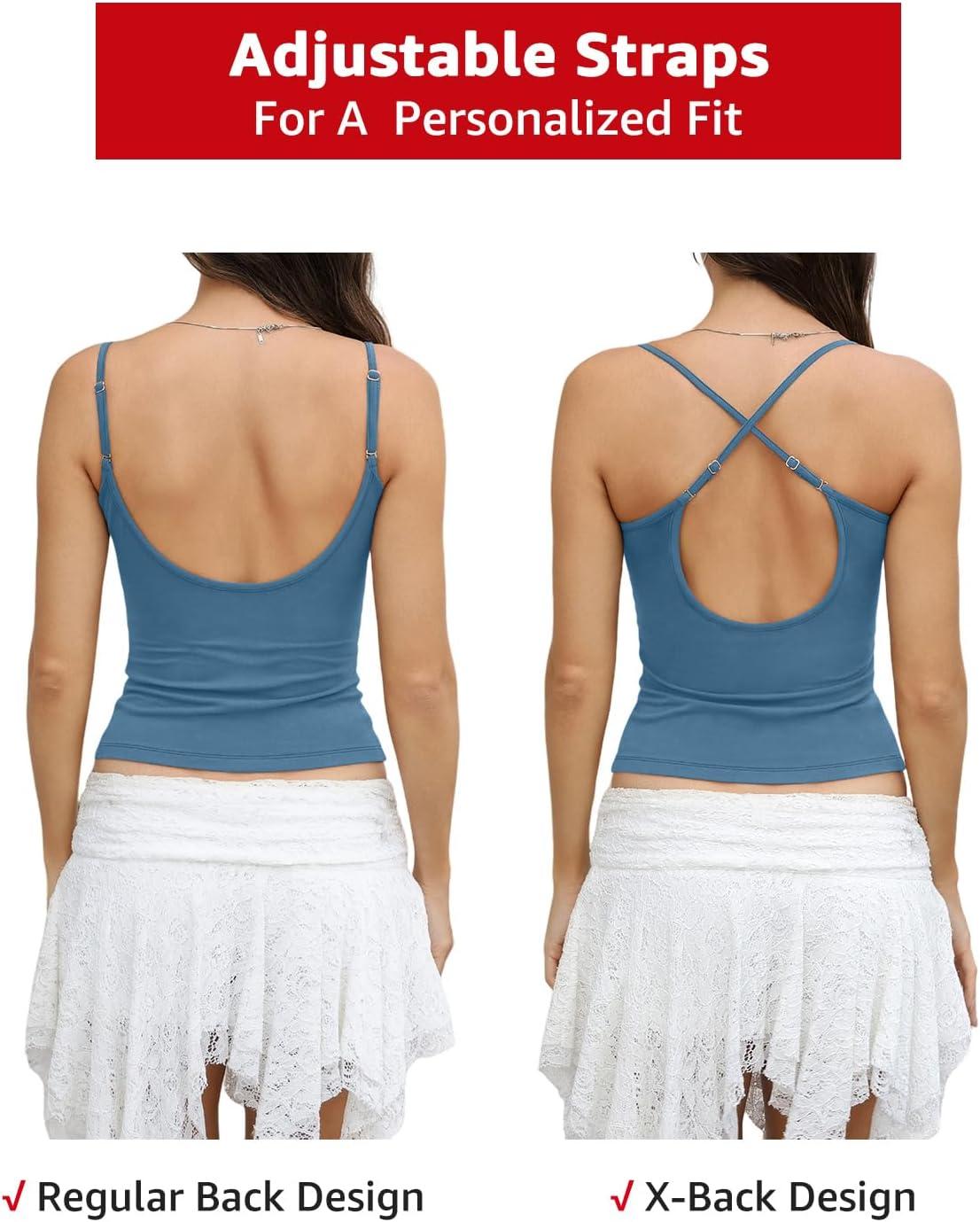 Womens Cotton Scoop Neck Tank Top Adjustable Spaghetti Strap Camisole Basic Summer Fitted Backless Shirts 2026(Kyanite)