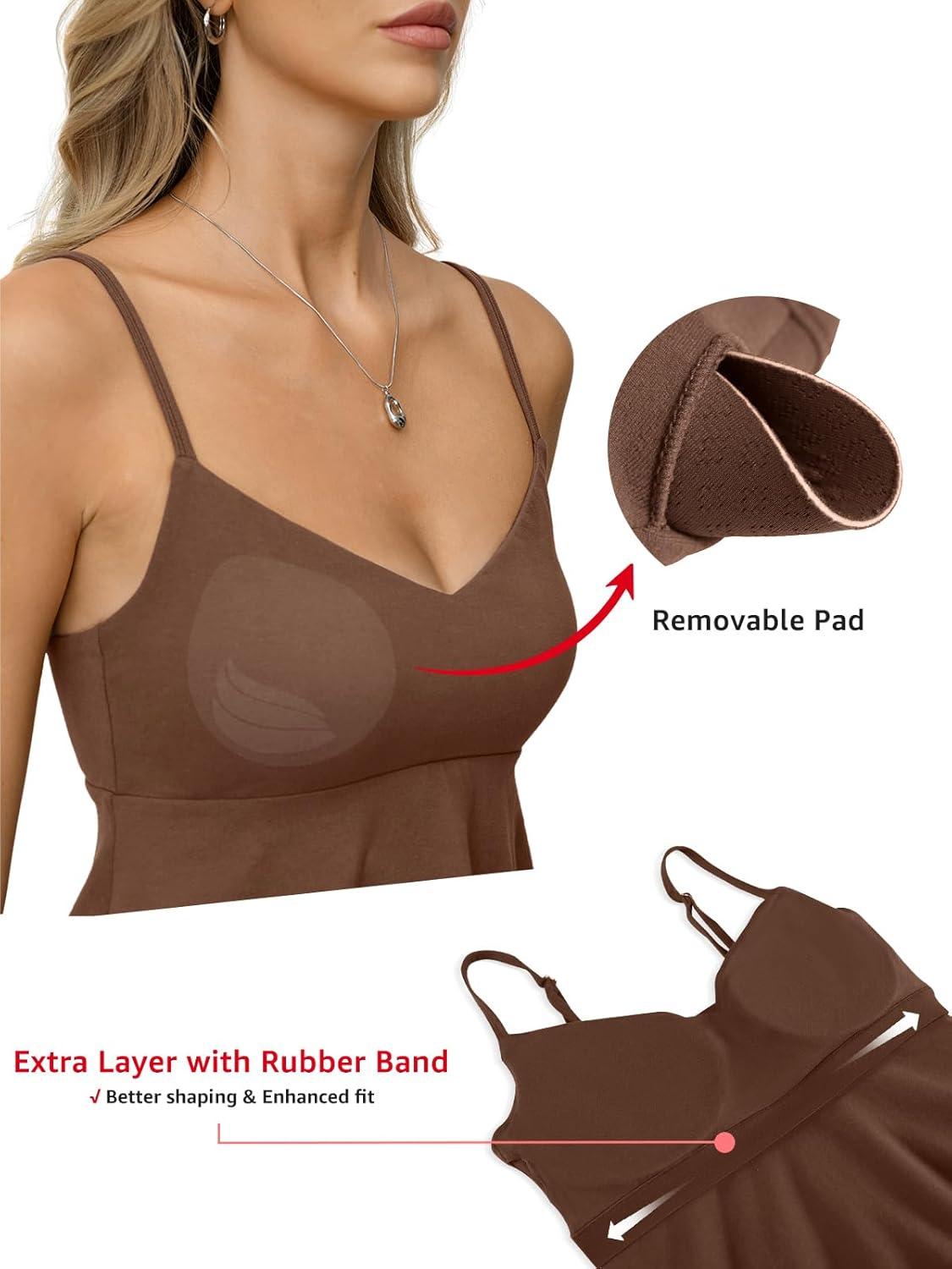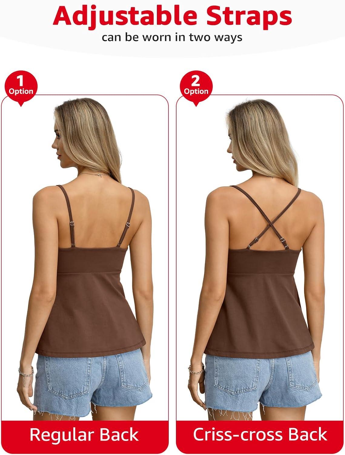 Womens Cotton Sweetheart Neck Camisoles Cute Babydoll Tops Padded Crop Shirt Adjustable Spaghetti Strap Tank(Brown)