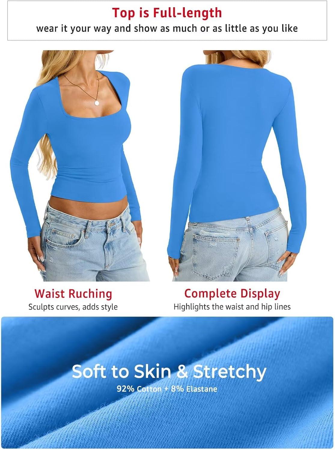 Womens Cotton Tops Long Sleeve T Shirts Square Neck Y2k Tops Slim Fit Going Out Fall Fashion Clothes 2025(Lake Blue)