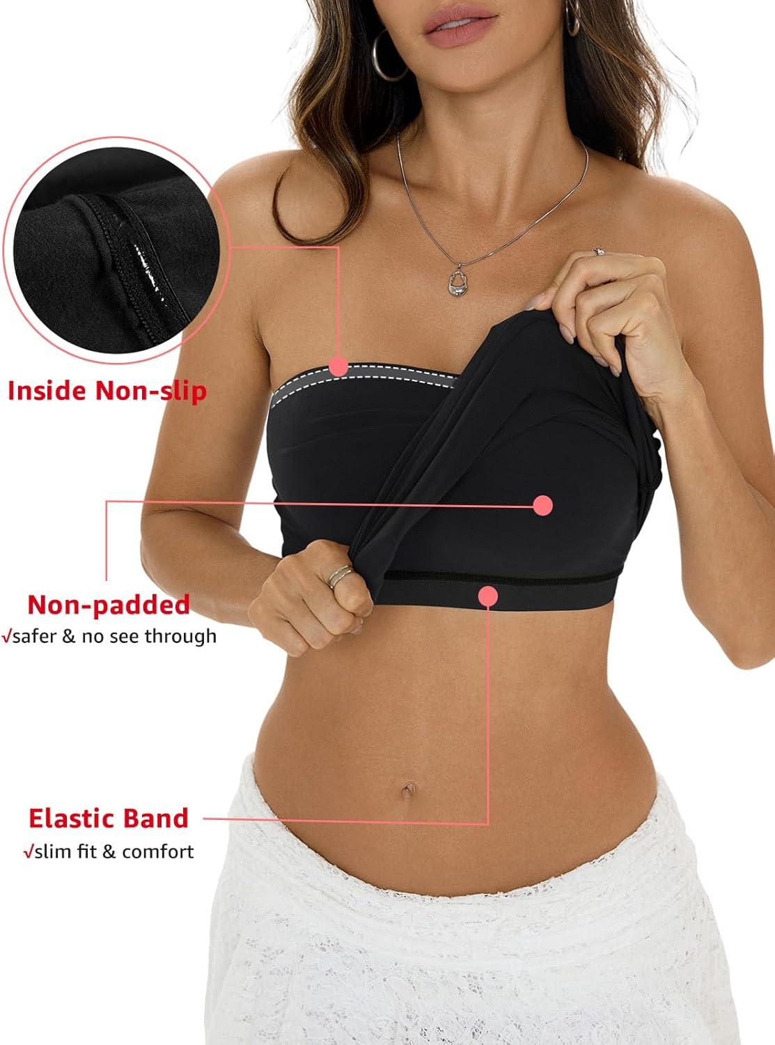Womens Cotton Tube Tops Sexy Fitted Strapless Shirts Basic Going Out Backless Bandeau Tops Cute Trendy Clothes(True Black)