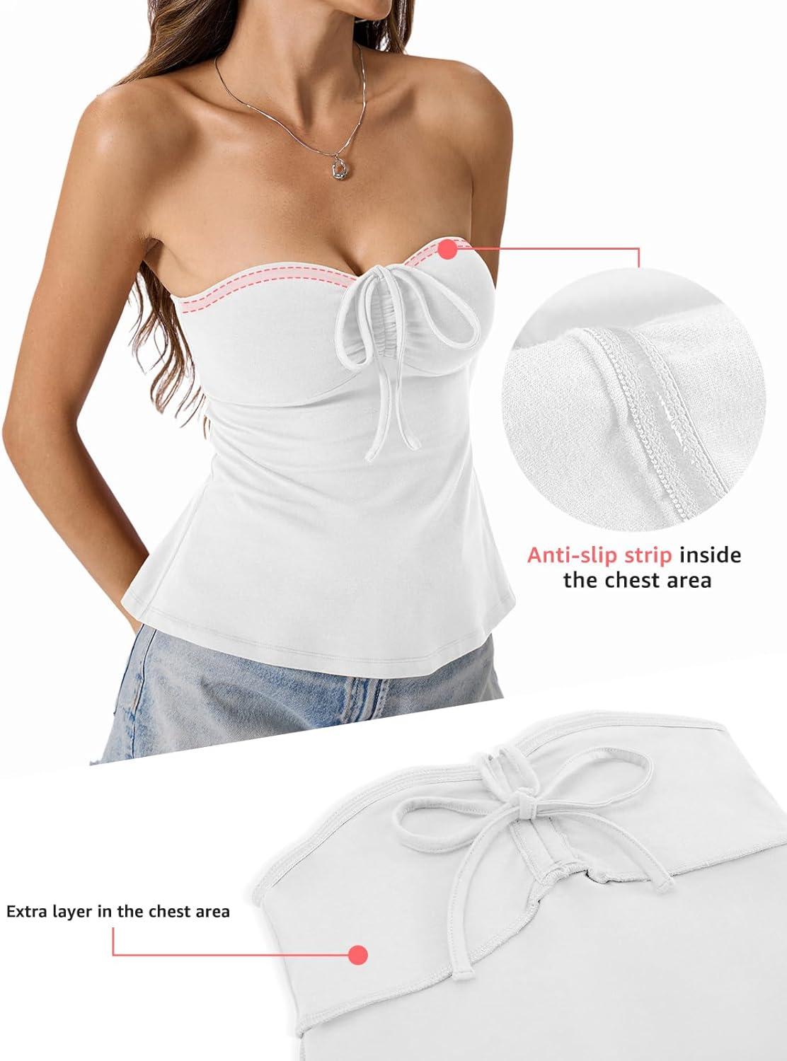 Be the first to review “Womens Cotton Tube Tops Tie Front Ruched Strapless Tank Babydoll Peplum Bandeau Top Cute Crop Going Out Outfit(True White)”