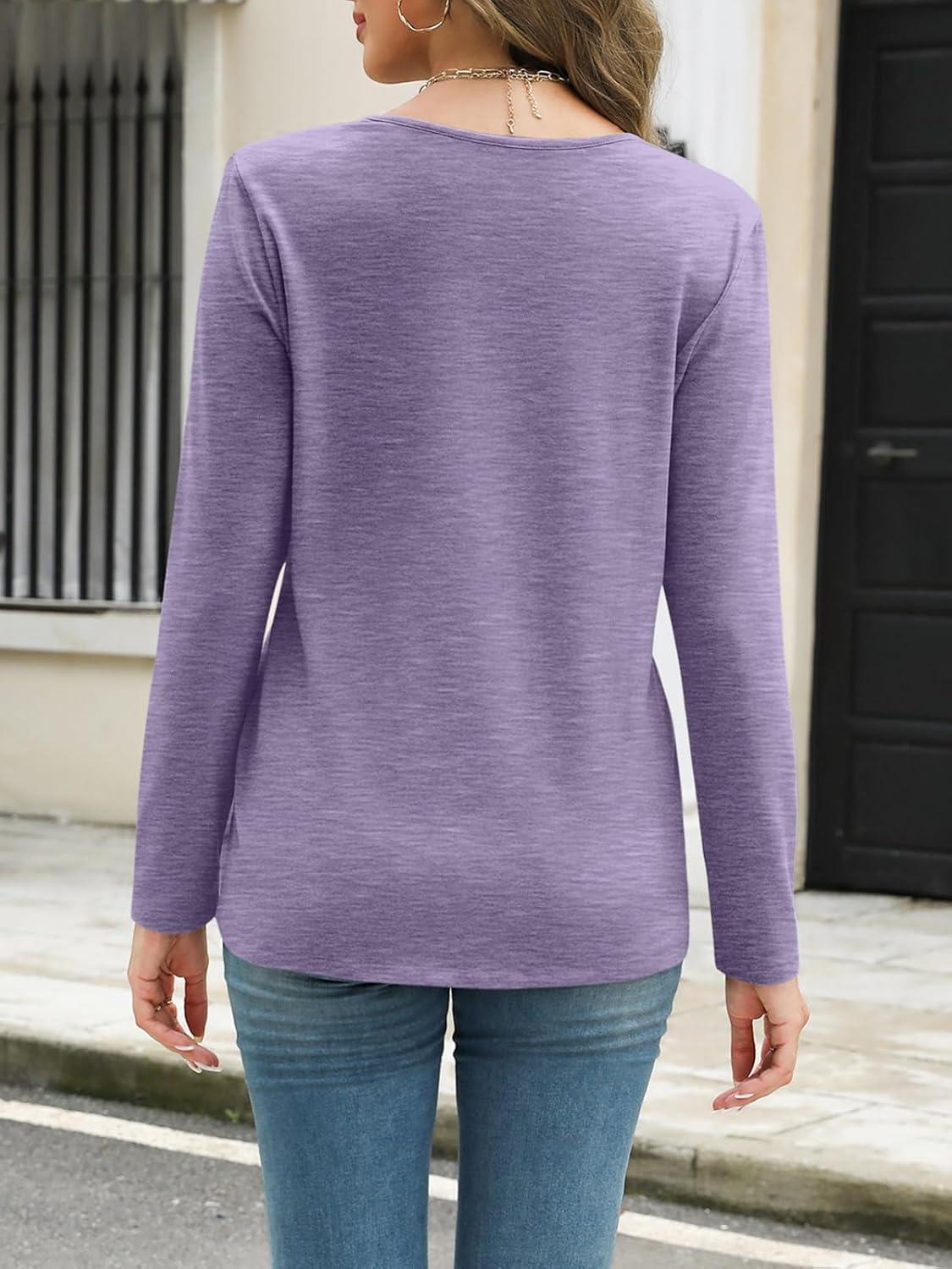 Womens Deep V Neck Long Sleeve Shirts Pleated Dressy Casual Tops Sexy Loose Fit T Shirt(Purple)