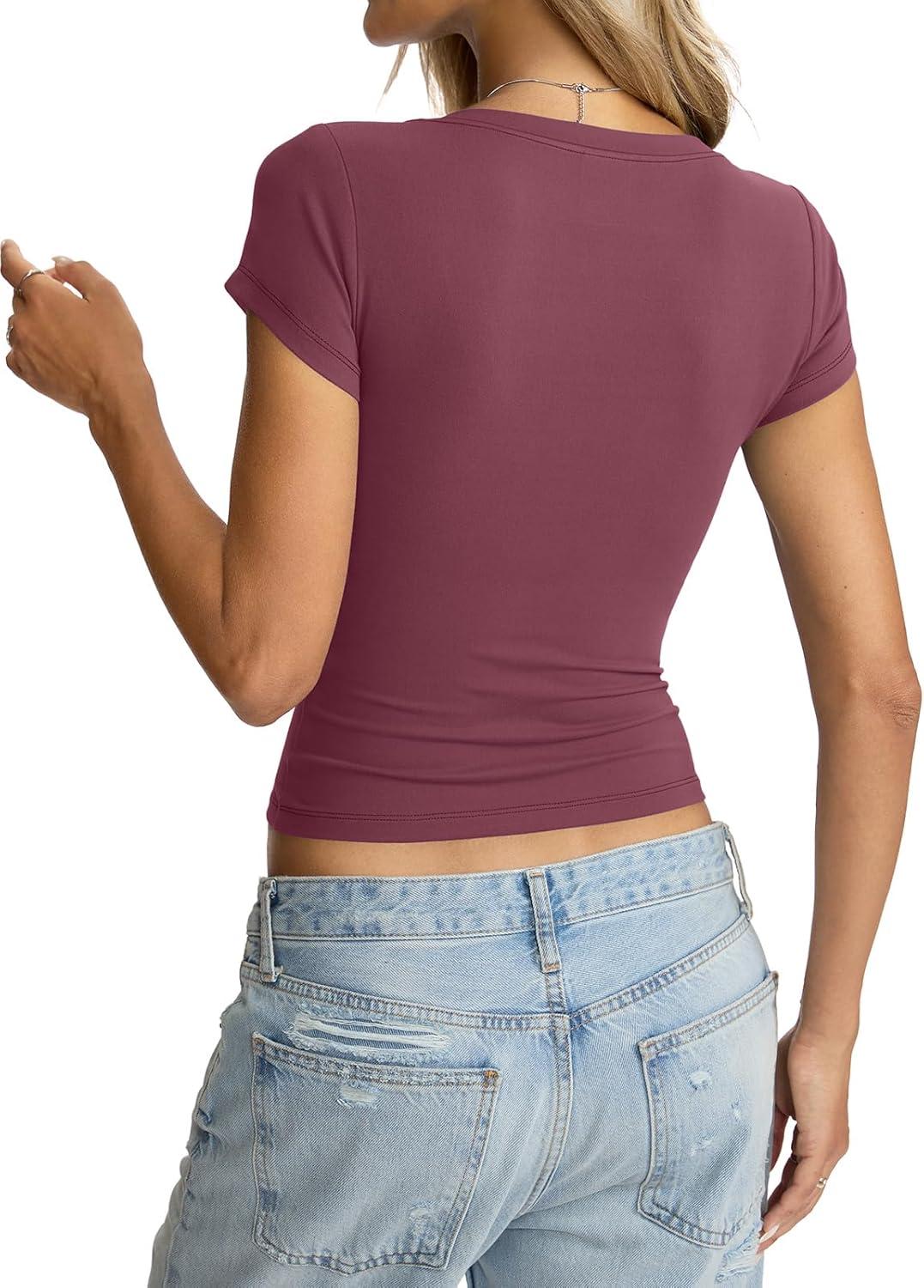 Be the first to review “Womens Deep V Neck Short Sleeve Shirts Sexy Slim Fit Crop Tops Basic Tees Going Out Summer Outfits(Wine Red)”