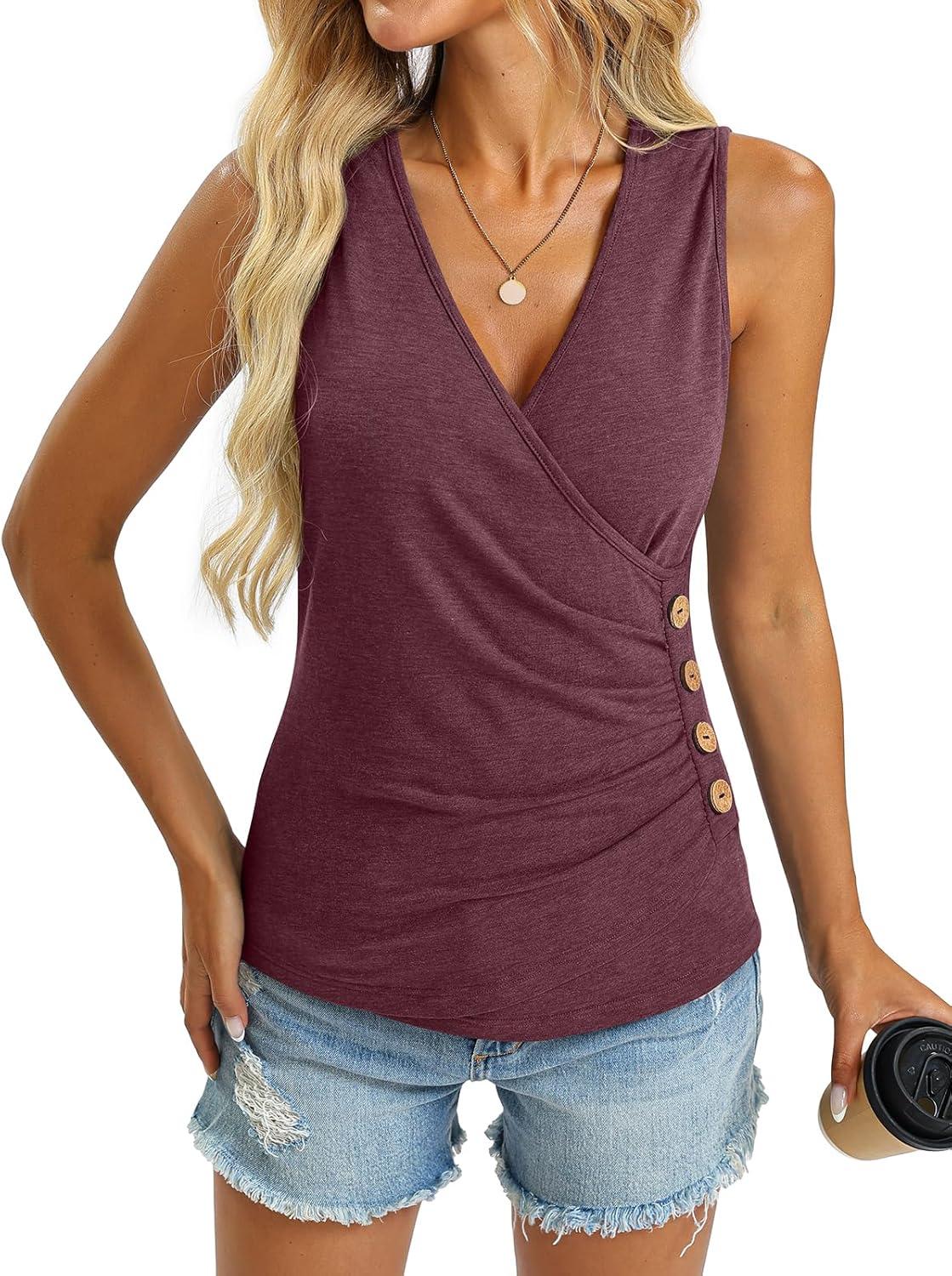 Womens Deep V Neck Tank Tops Sexy Sleeveless Wrap Tops Fitted Ruched Shirts 2025(Burgundy)