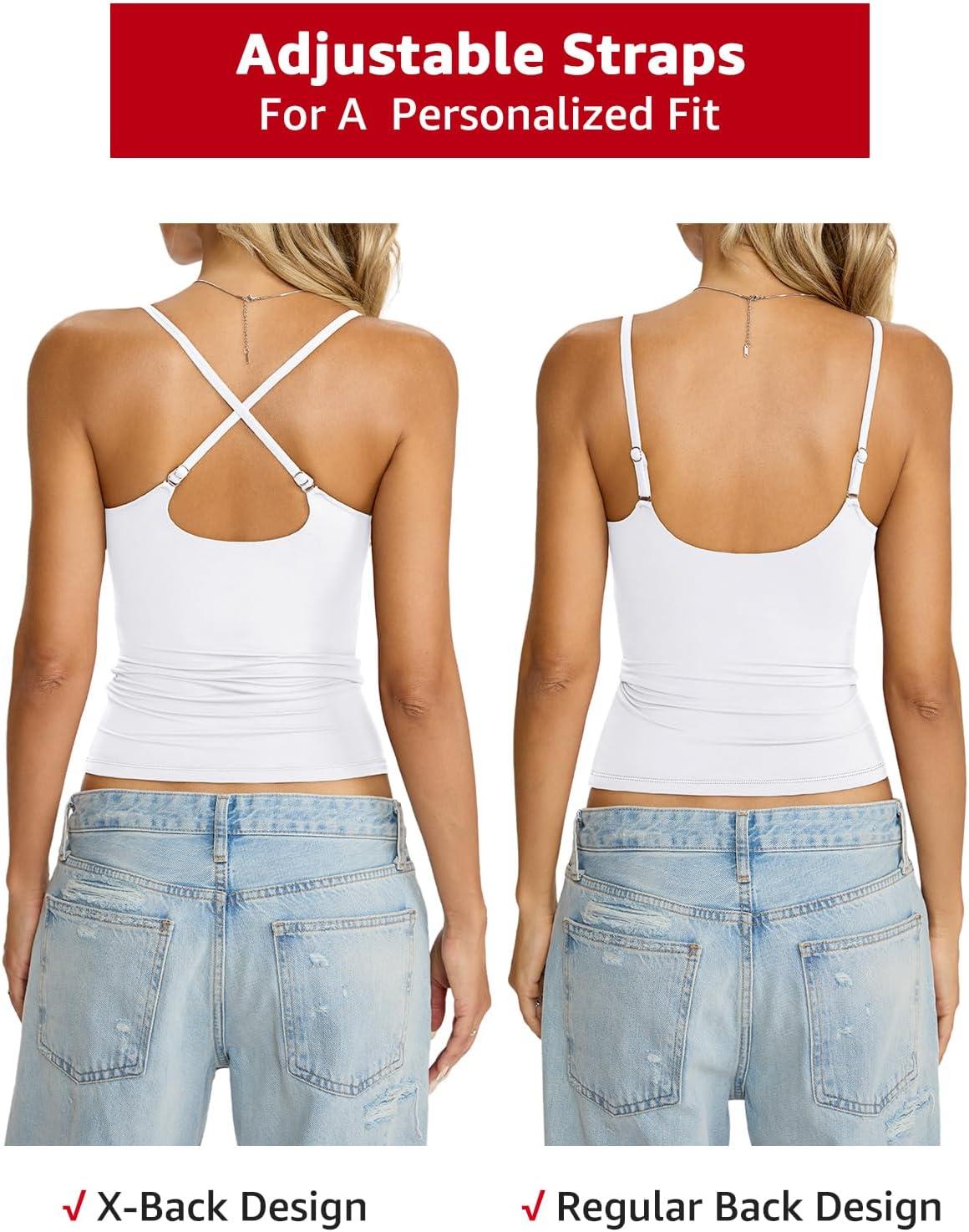 Womens Double Lined Camisole Tank Top Sexy Backless Spaghetti Strap Shirt Scoop Neck Slim Fitted Cami Y2K Going Out Top(Pure White)