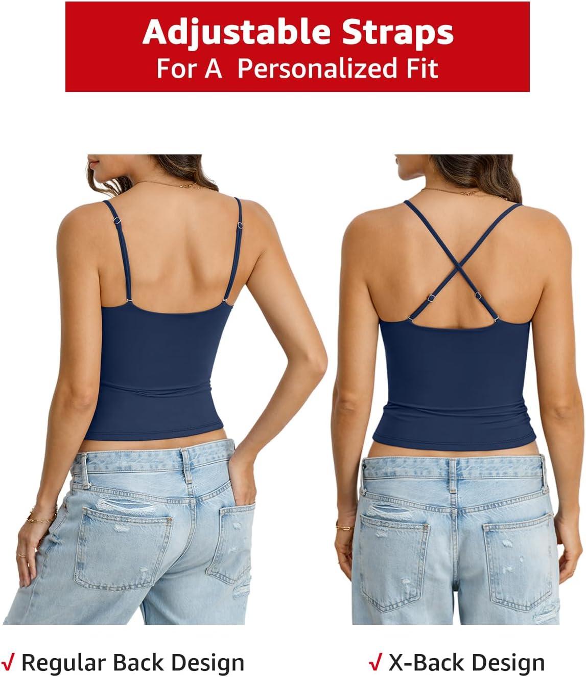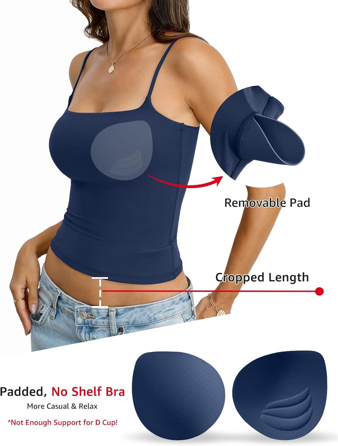 Womens Double Lined Padded Crop Cami Tops Fitted Spaghetti Strap Tank Top Summer Basic Shirt Y2K Going Out Tops(Navy Blue)