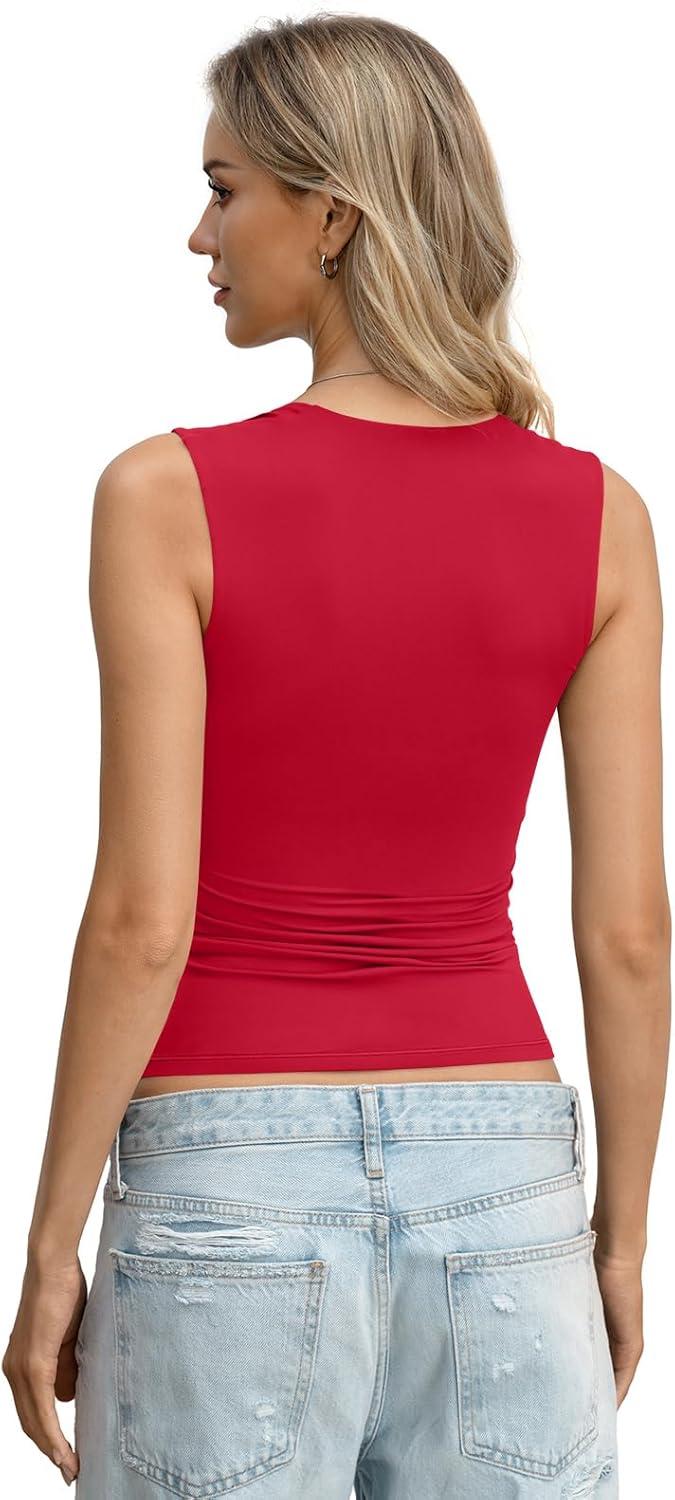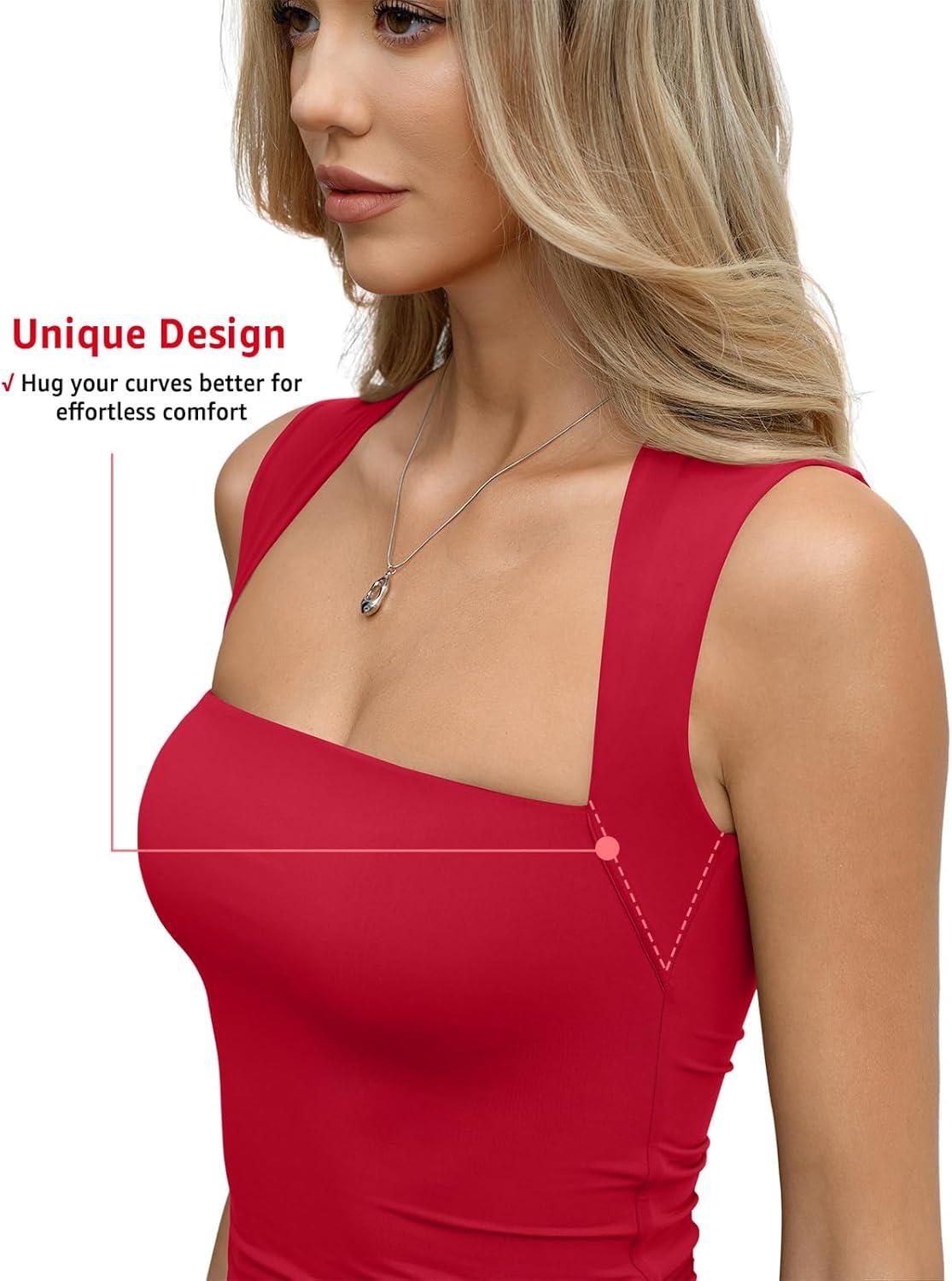 Womens Double Lined Square Neck Tank Tops Basic Slim Fit Sleeveless Shirts Y2K Summer Going Out Outfits 2026(Red)
