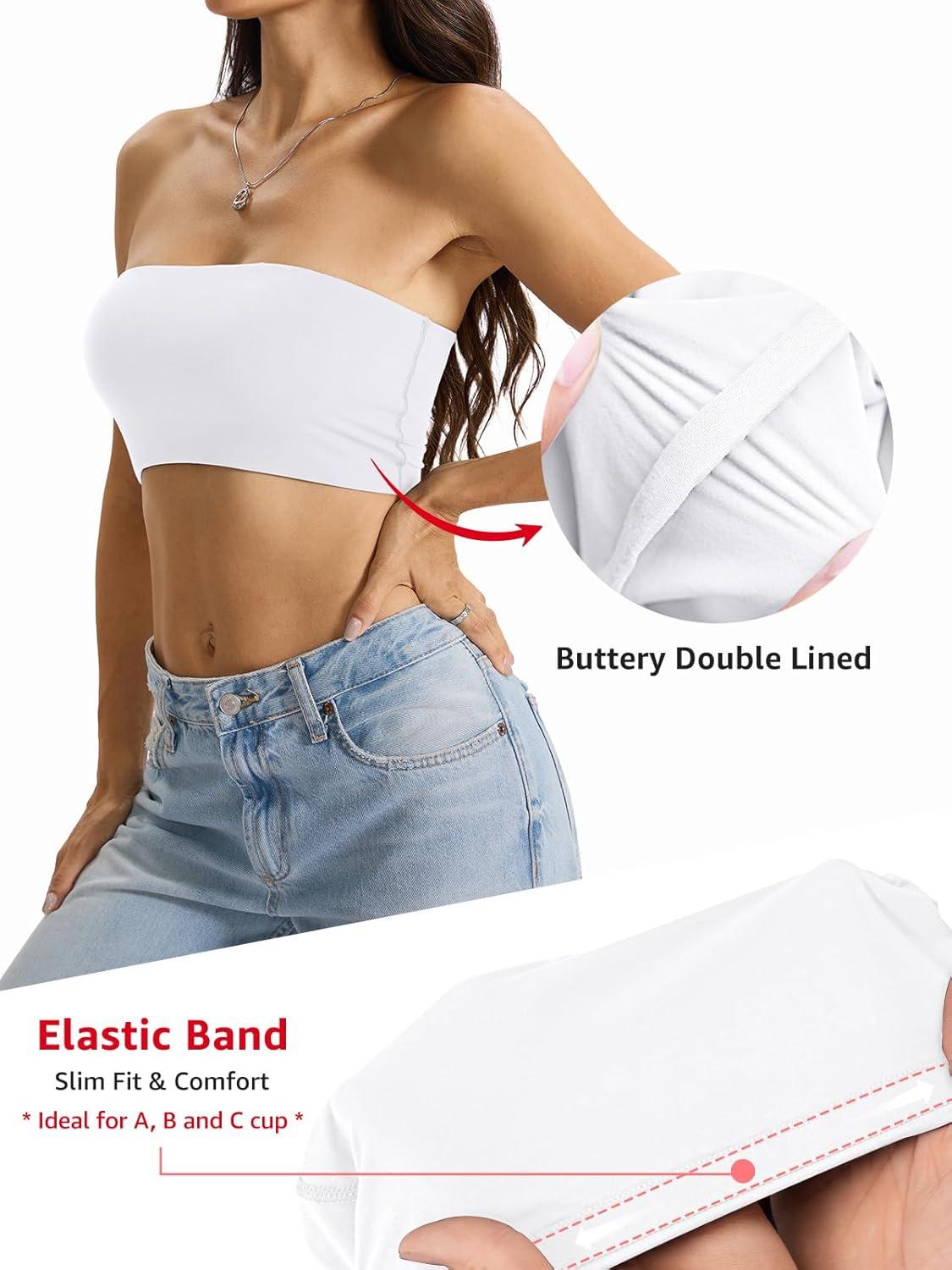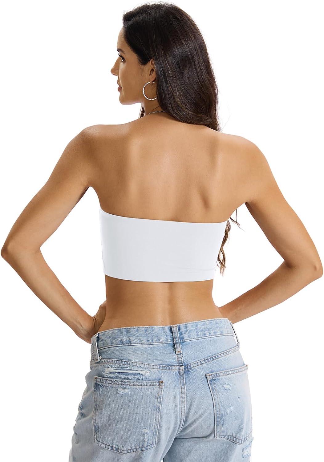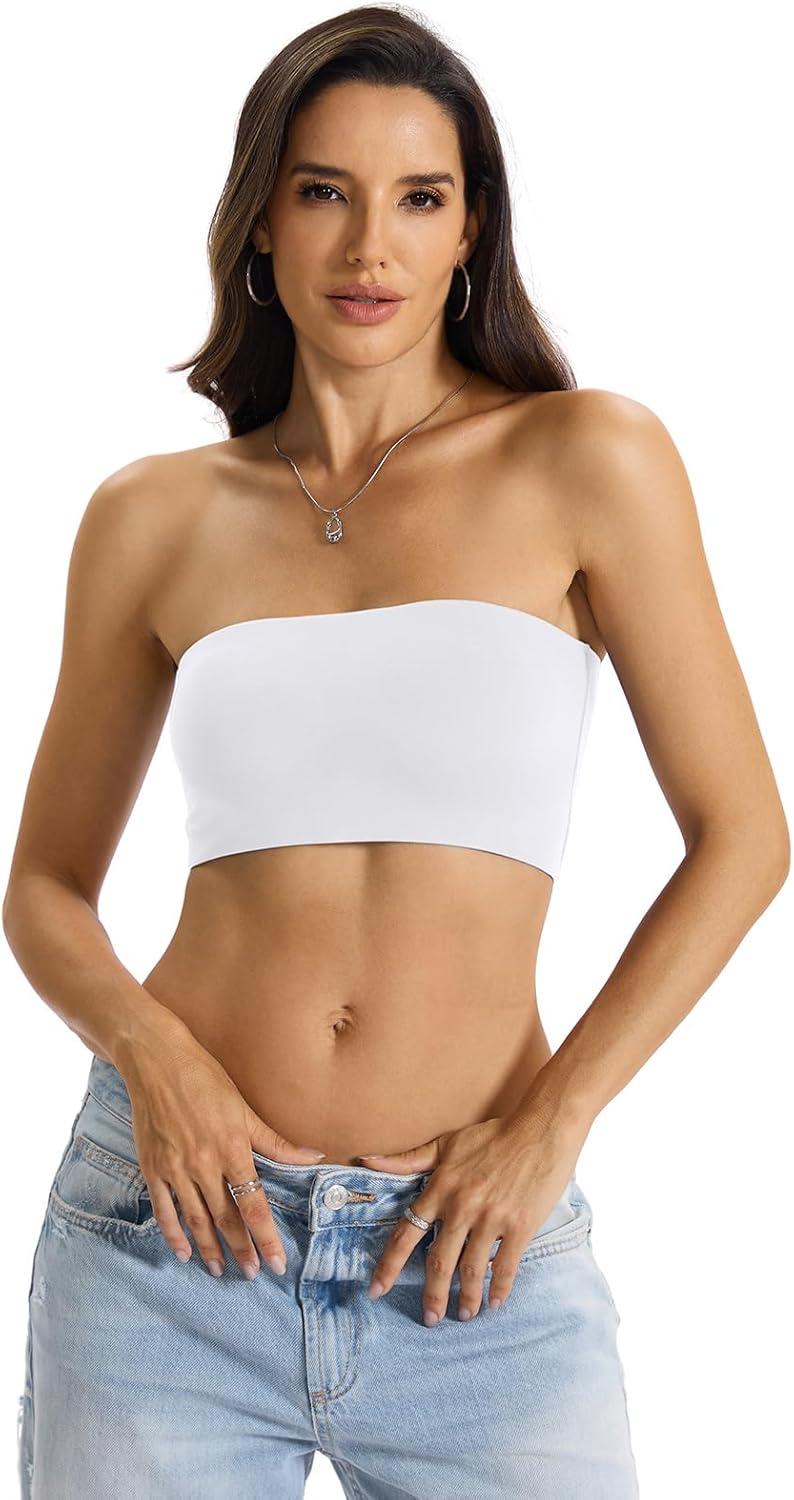 Womens Double Lined Tube Tops Crop Tank Top Non-Padded Strapless Bandeau Shirts Sexy Going Out Tops Summer 2026(Pure White)