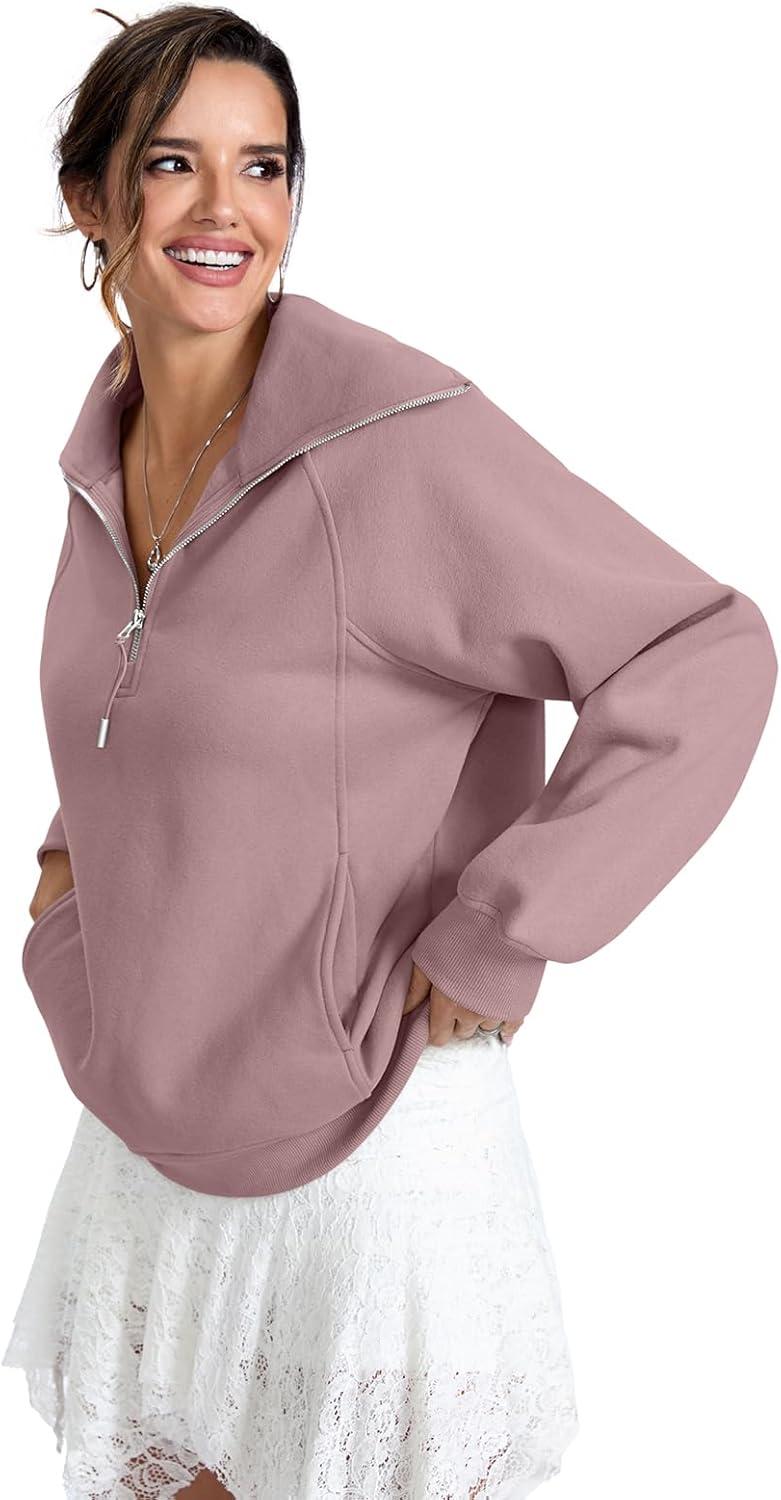 Be the first to review “Womens Fleece Lined Sweatshirts Oversized Half Zip Pullover with Pocket Trendy Long Sleeve Tops Outfits Clothes(Dark Pink)”