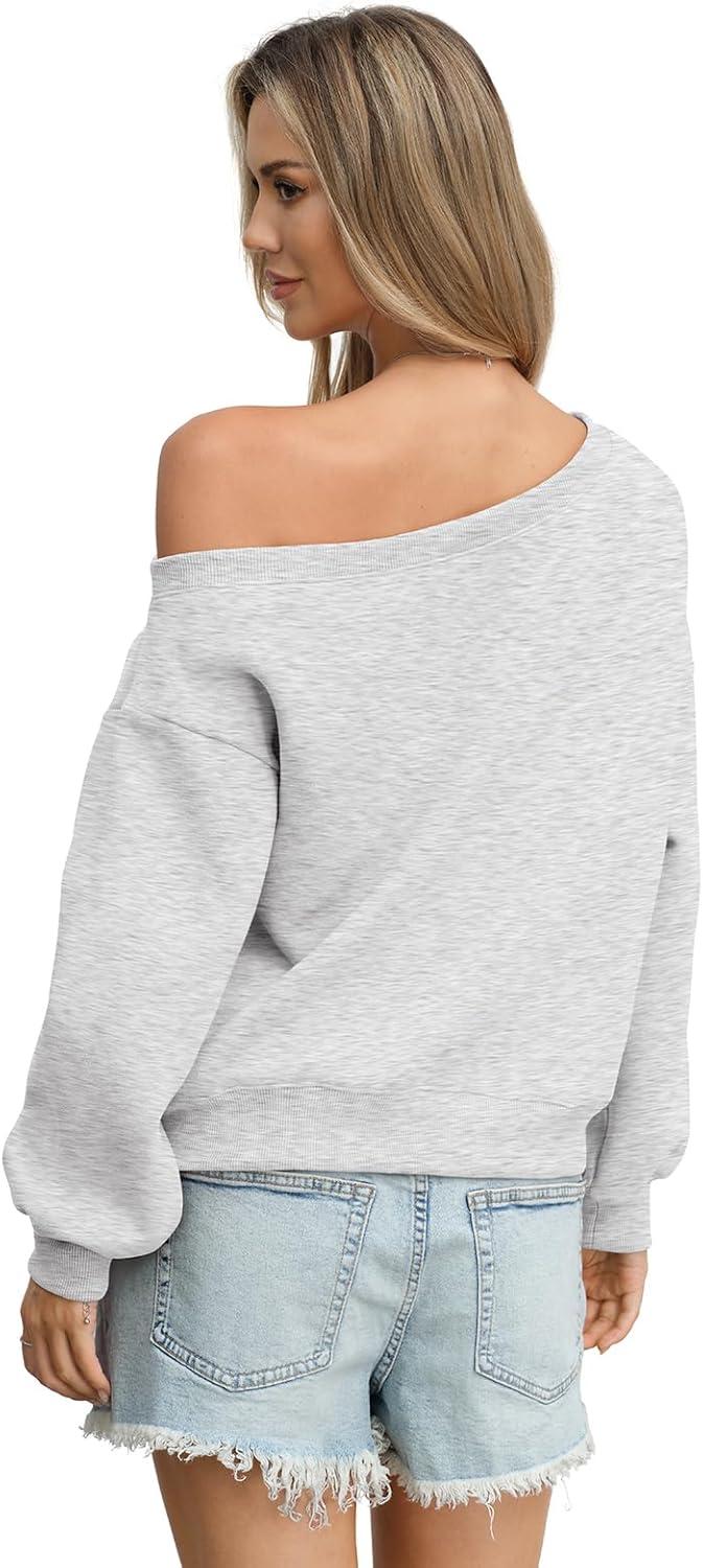 Womens Fleece Sweatshirts Oversized Off The Shoulder Pullover Tops Casual Long Sleeve Comfy Fall Outfits 2026(Gray)