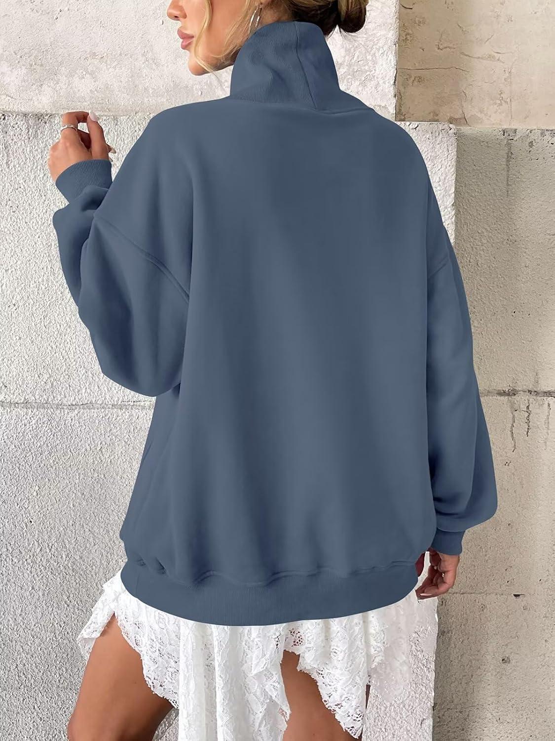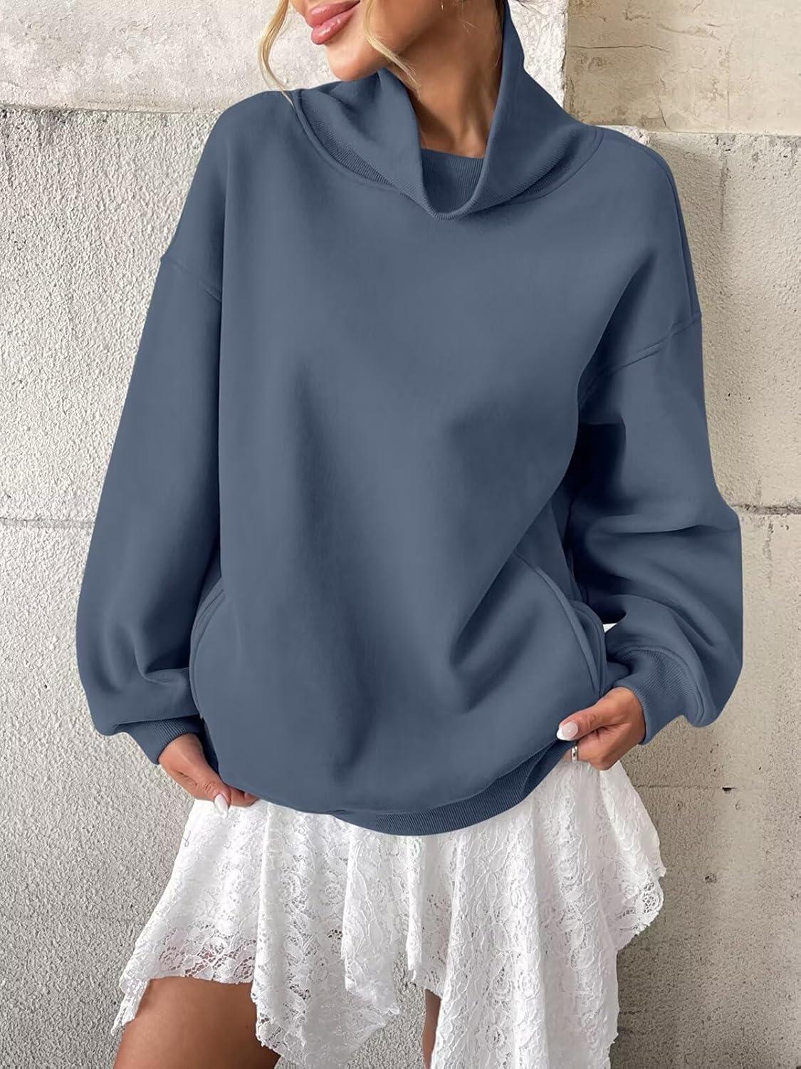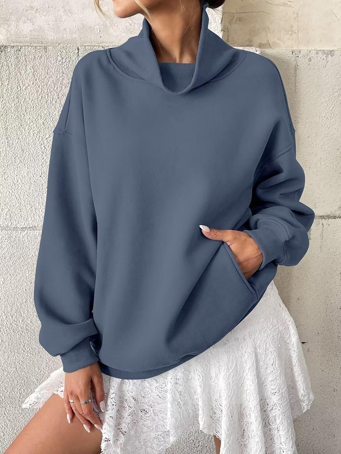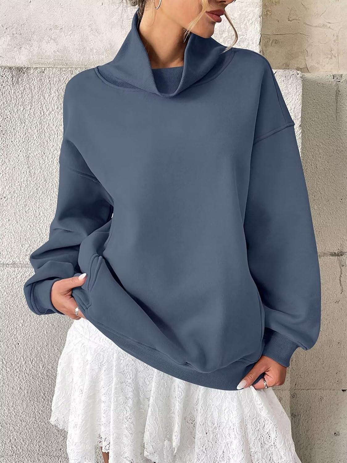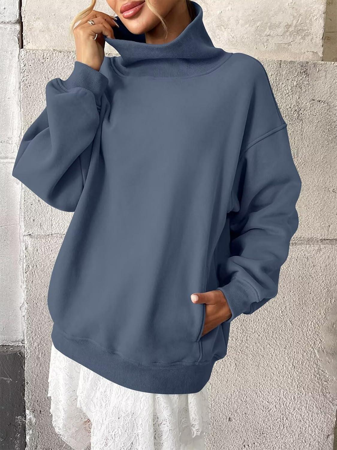 Womens Fleece Sweatshirts with Pockets Oversized Turtleneck Pullover Trendy Long Sleeve Tops Fall Fashion Shirts(Dust Blue)