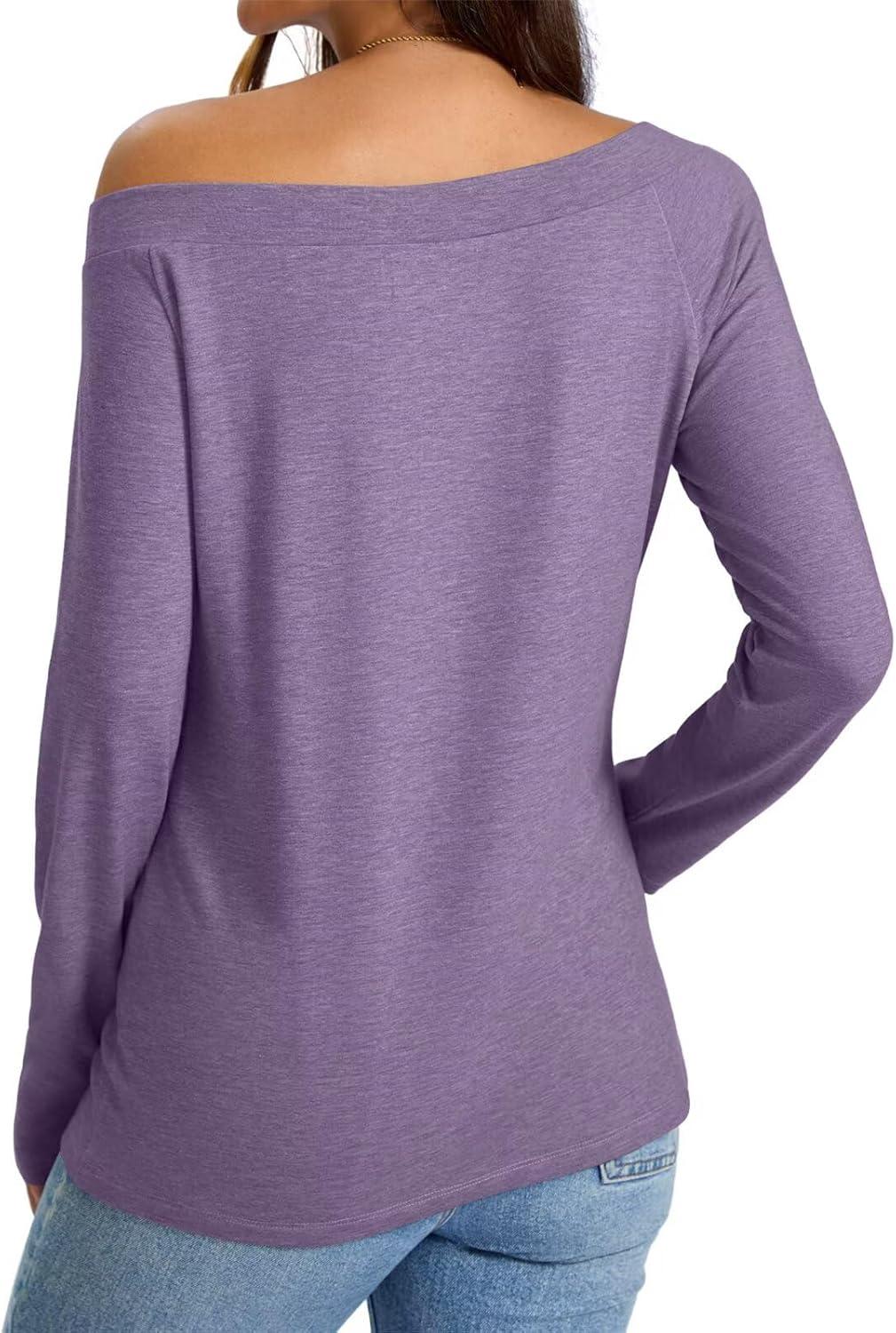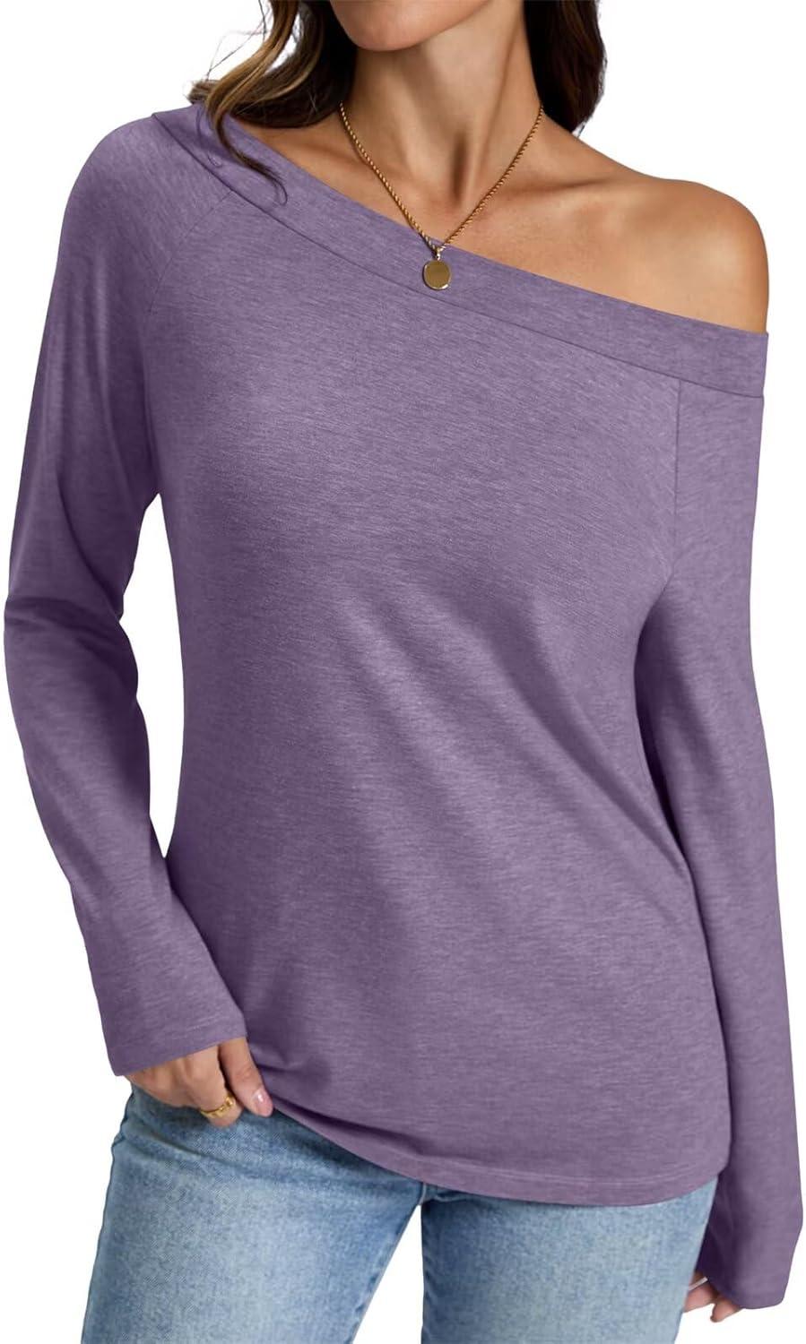 Womens Off Shoulder Tops Long Sleeve Shirts Sexy Tops Casual Loose Fit Tee Going Out Fashion Clothes 2025(Purple)