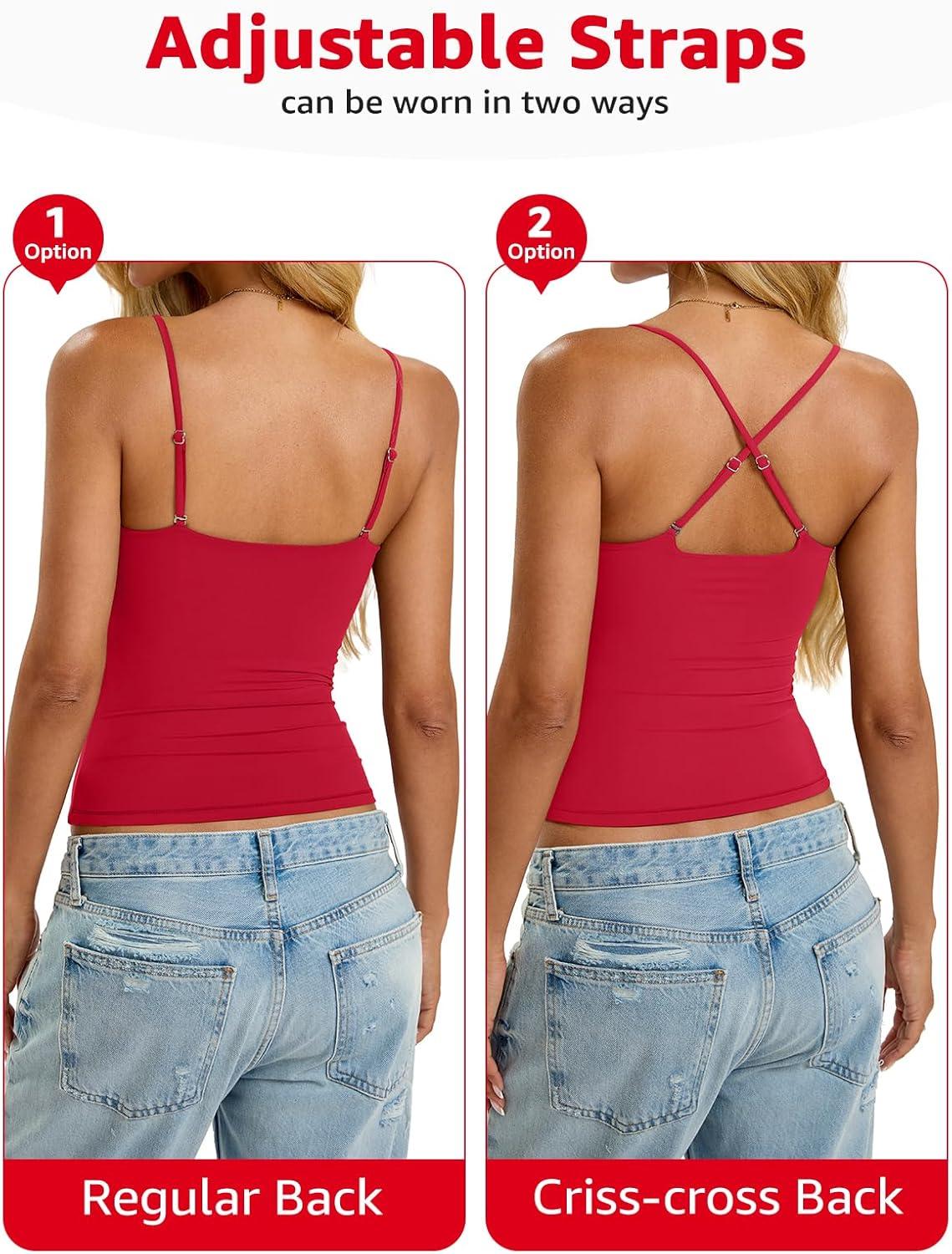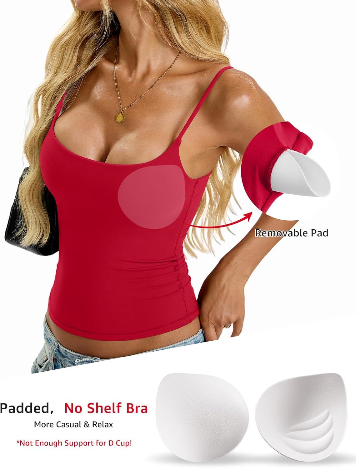 Womens Padded Cami Tank Tops Double Lined Spaghetti Strap Built in Bra Shirts Slim Fitted Basic Summer Cloth 2025(Red)