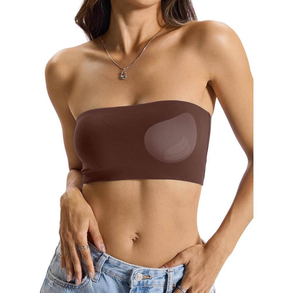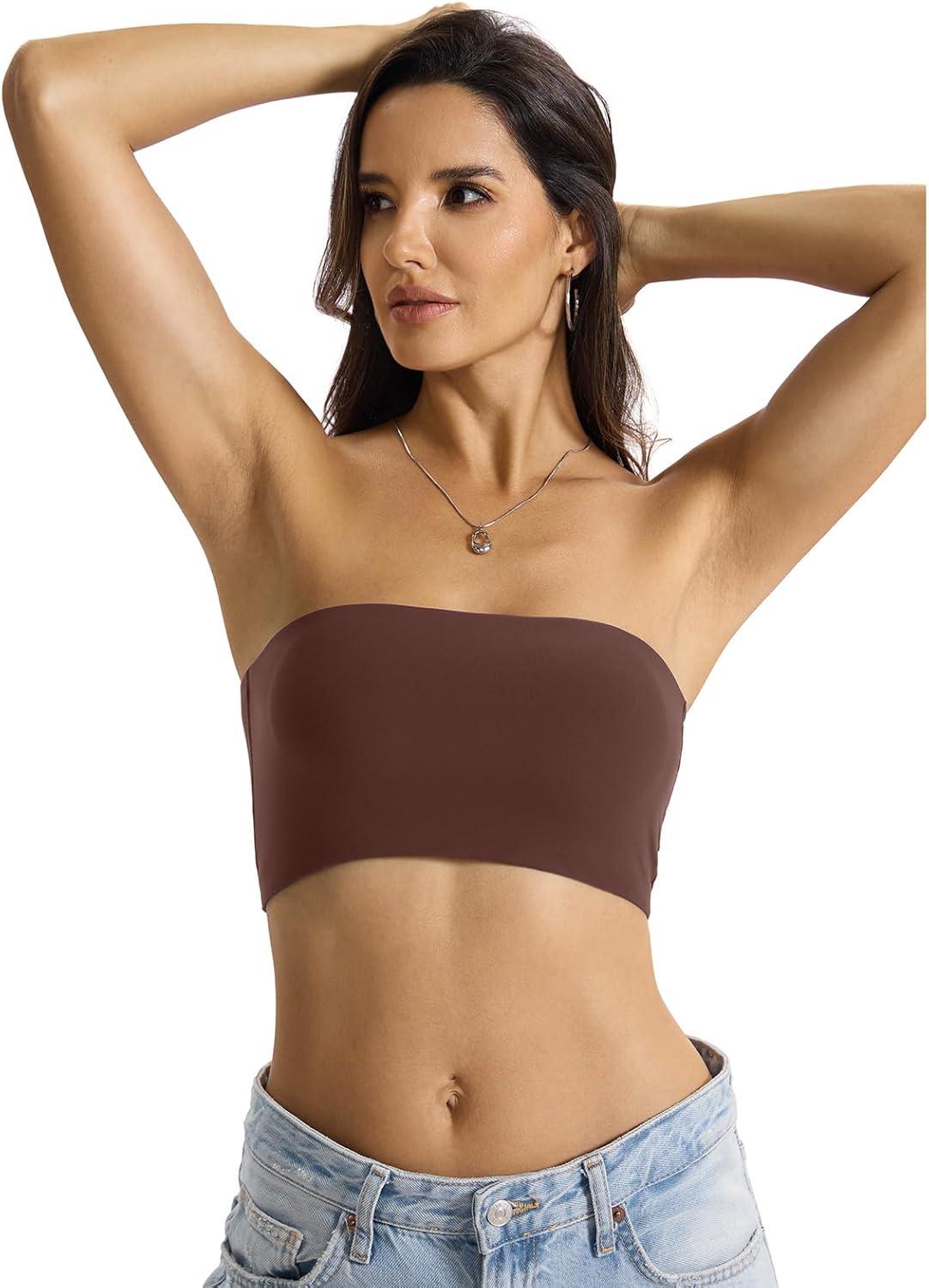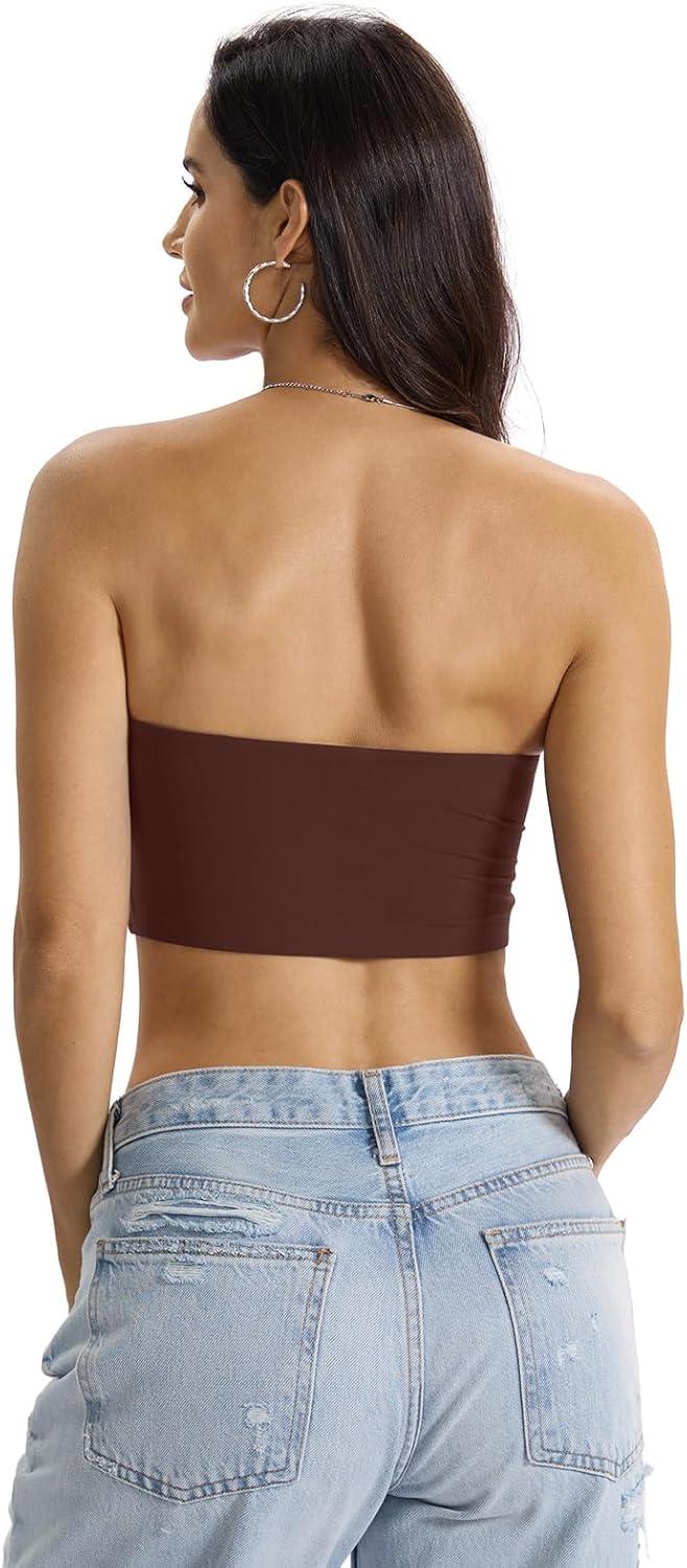 Womens Padded Double Lined Tank Tops Bandeau Strapless Tube Tops Crop Backless Shirts Sexy Going Out Tops 2026(Brown)
