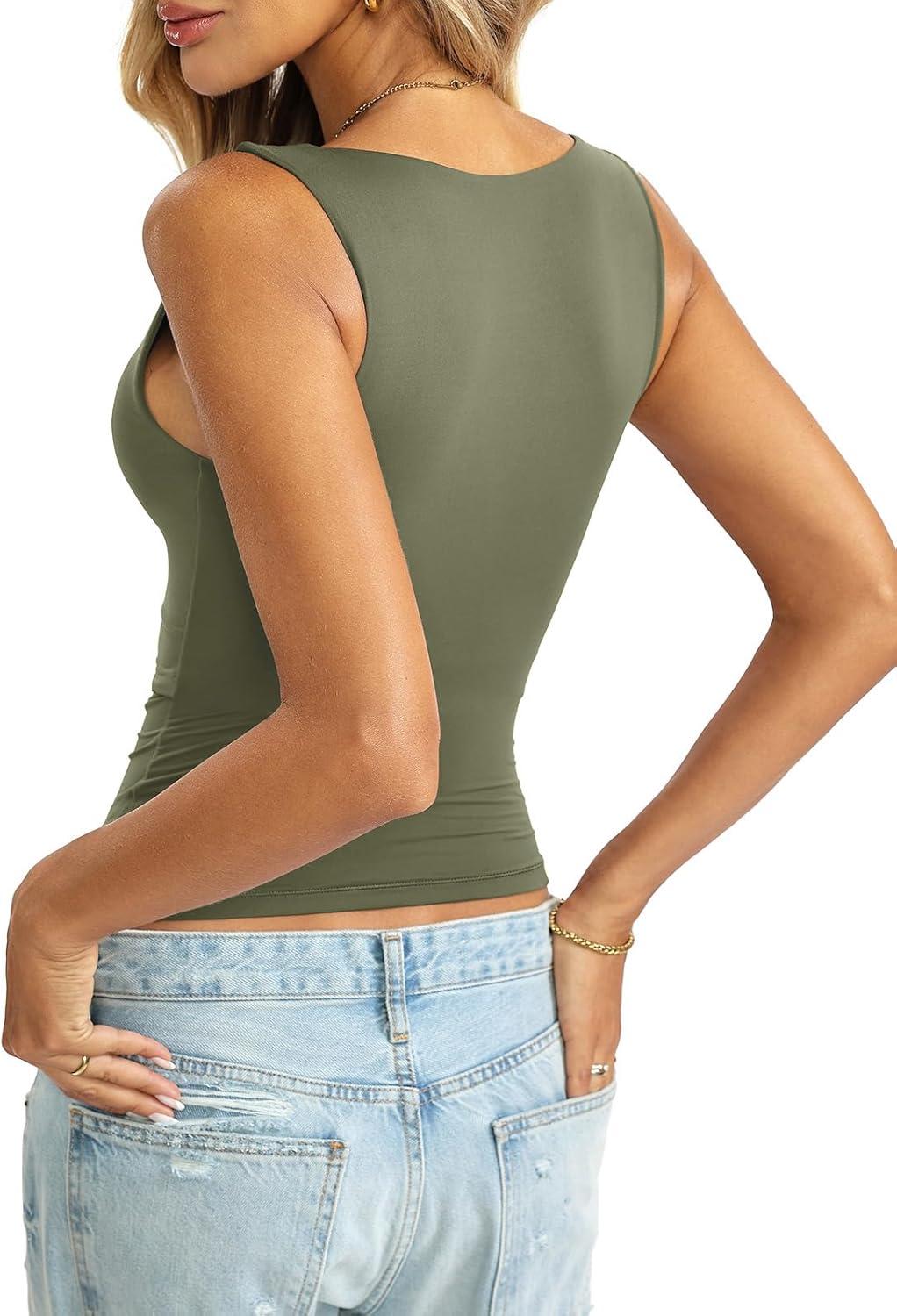 Buttery Soft Double Lined Tank Tops: This womens summer tops is made of 76% Polyamide, 24% Elastane, soft and smooth feels like a second skin, 4 way stretchy to hug your curves well, seamless, breathable and lightweight