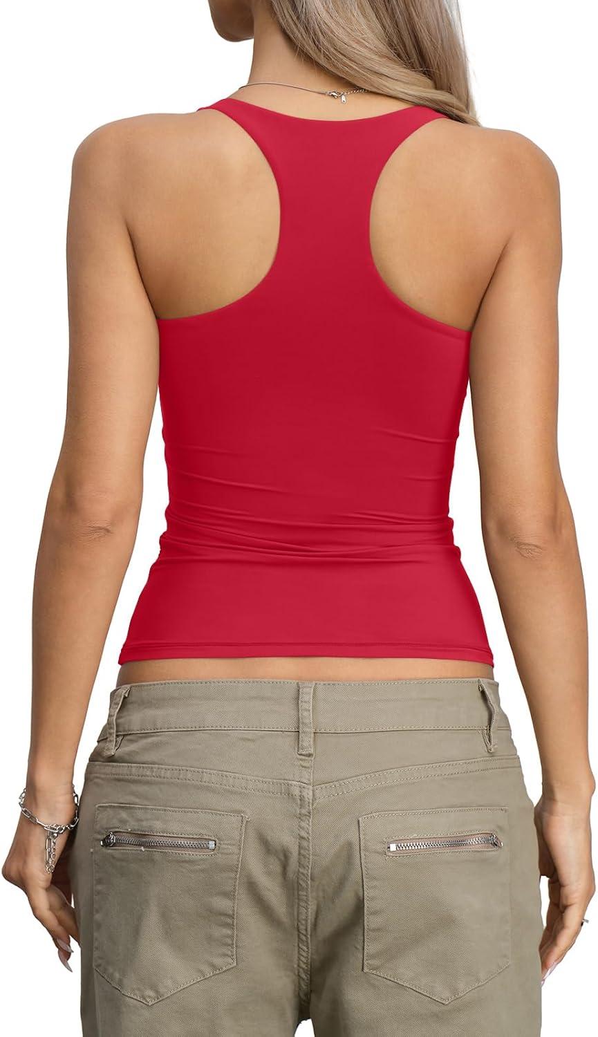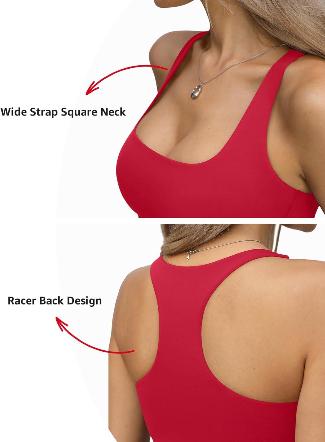 Womens Padded Double Lined Tank Tops Square Neck Racerback Built in Bra Tops Sleeveless Fitted Summer Clothes(Red)