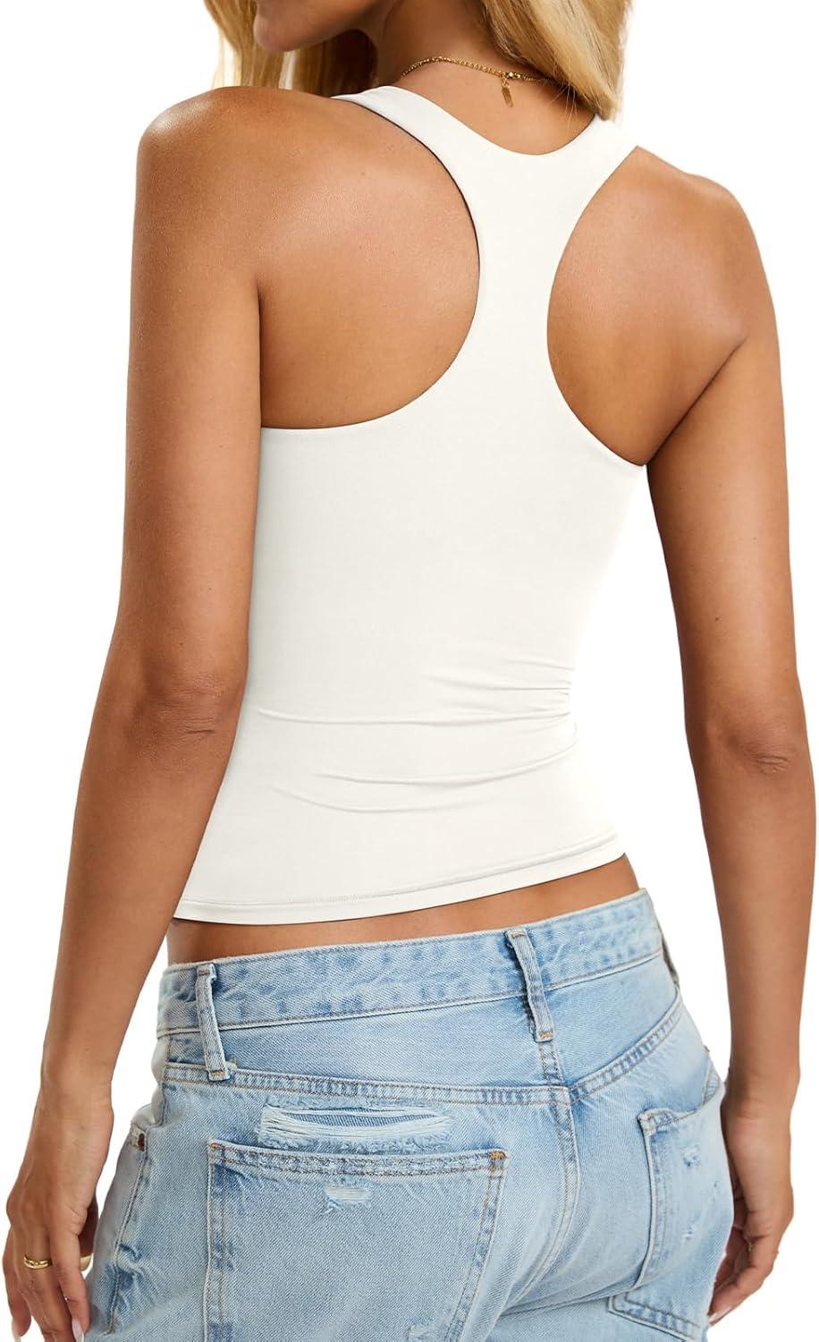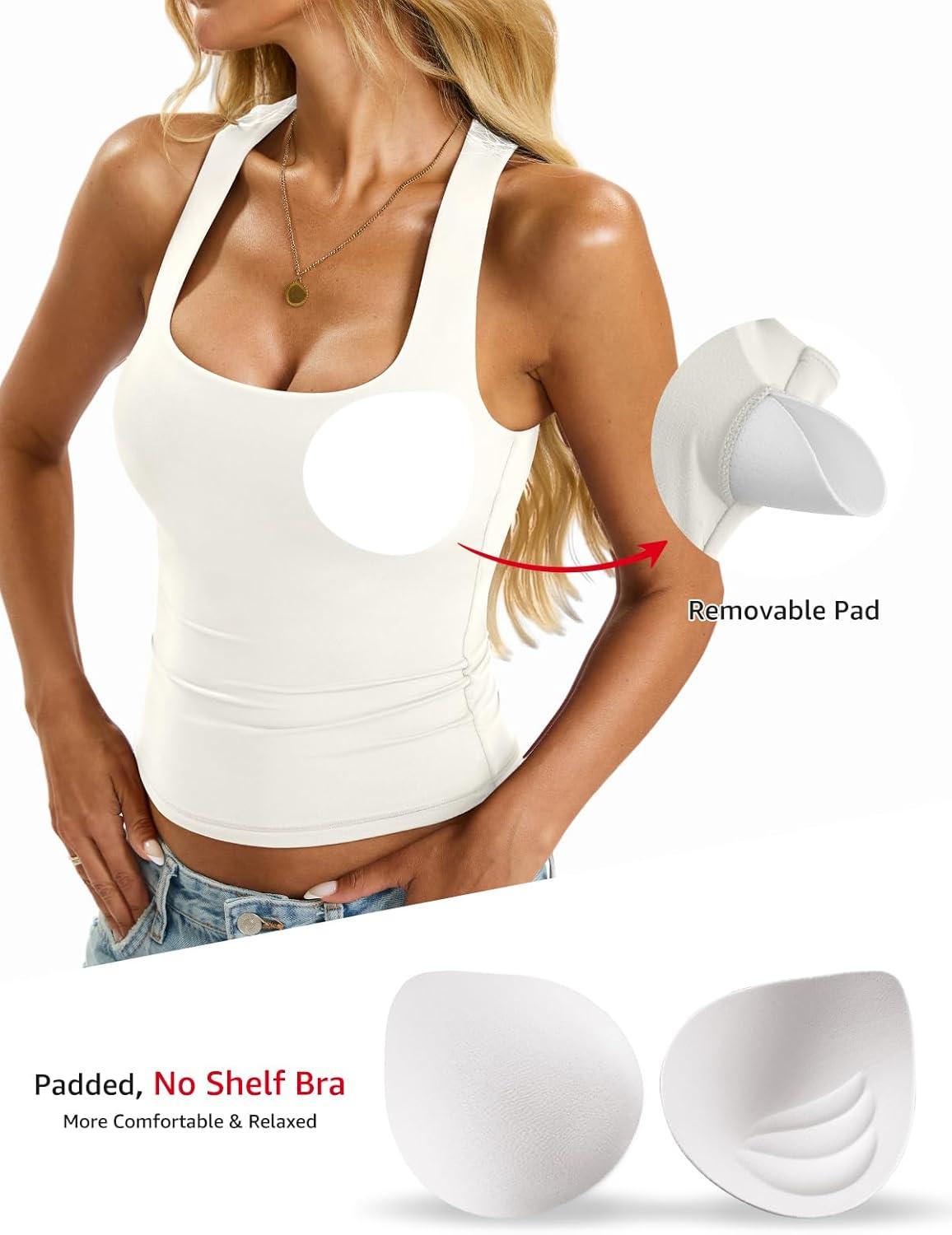 Womens Padded Racerback Tank Tops Double Lined Built in Bra Cami Tops Basic Fitted Shirts Summer Going Out Tops(Cream White)