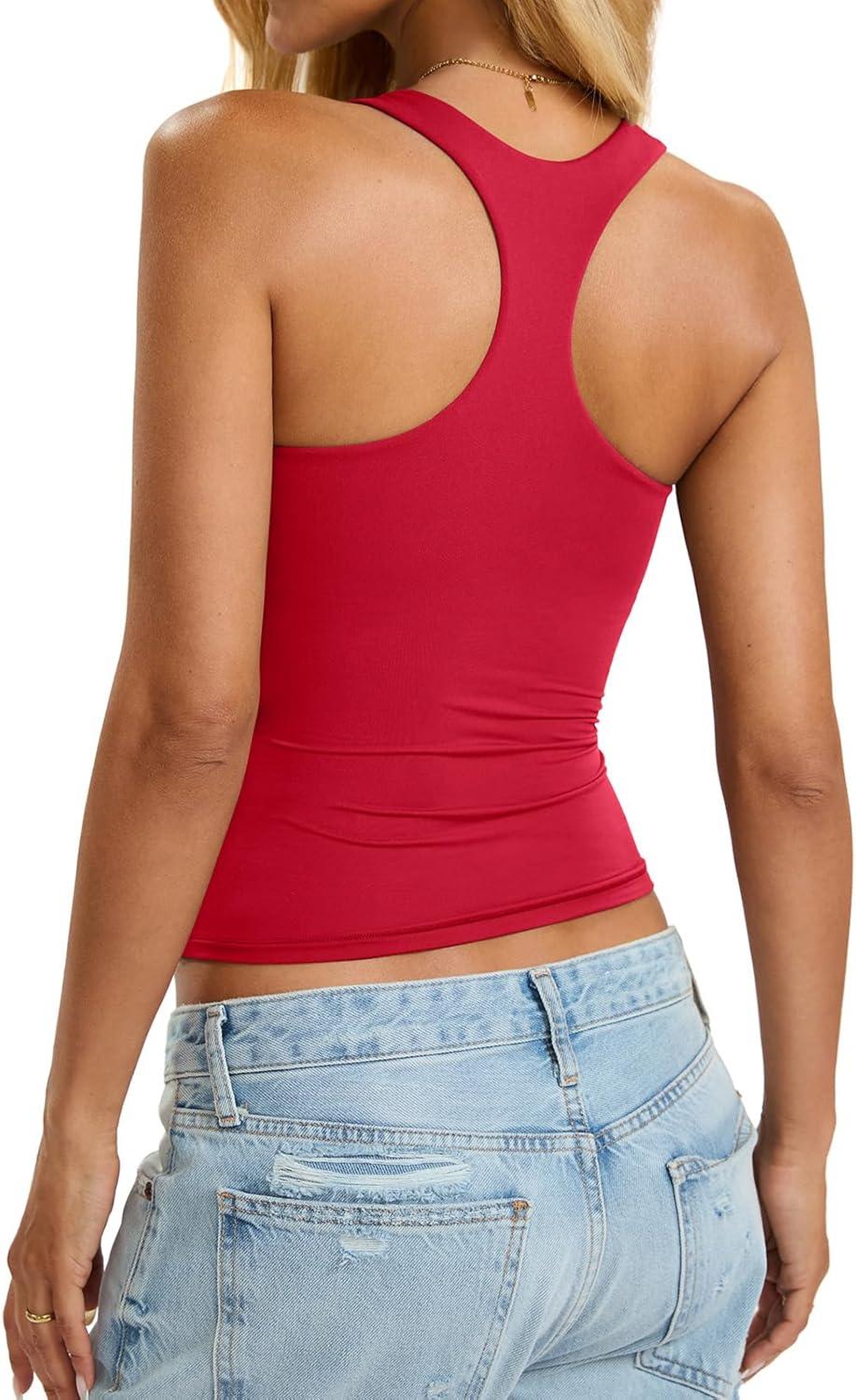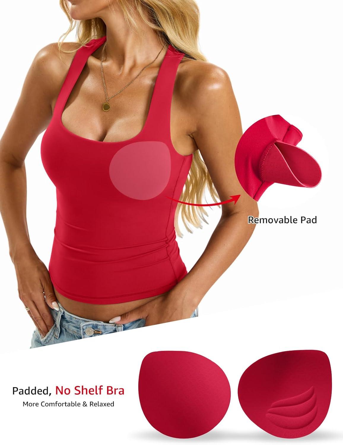 Womens Padded Racerback Tank Tops Double Lined Built in Bra Cami Tops Basic Fitted Shirts Summer Going Out Tops(Red)