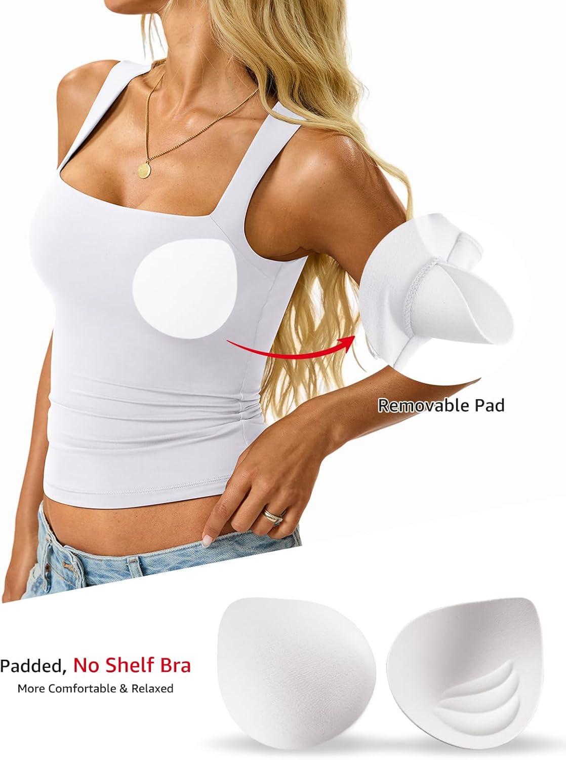 Womens Padded Tank Tops Double Lined Built in Bra Sleeveless Top Square Neck Slim Fitted Summer T Shirts 2025(White)