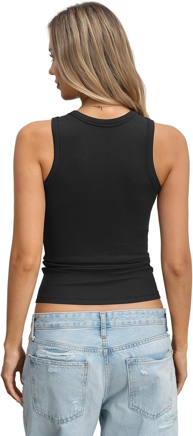 Womens Ribbed Cotton Tank Tops Basic Crew Neck Sleeveless Shirts Fitted Going Out Tops Summer Trendy 2026(Black)