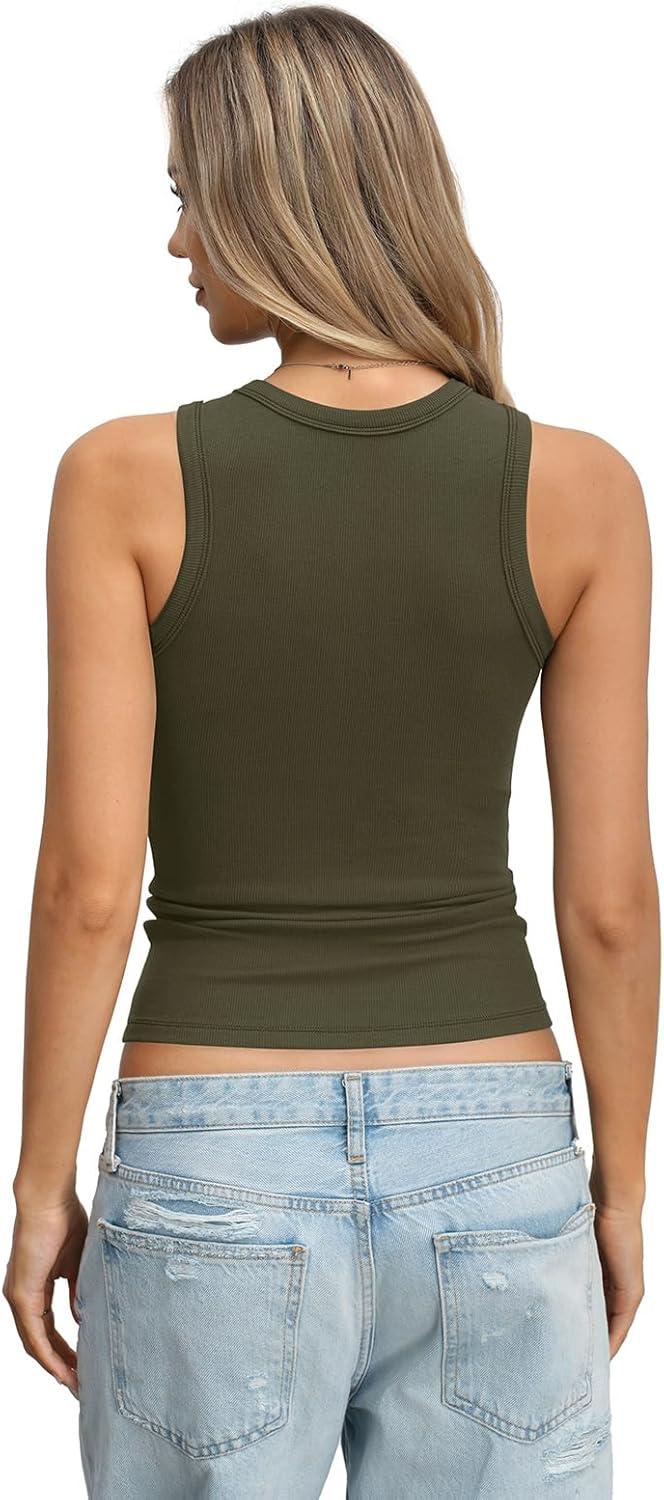Womens Ribbed Cotton Tank Tops Basic Crew Neck Sleeveless Shirts Fitted Going Out Tops Summer Trendy 2026(Dark Green)