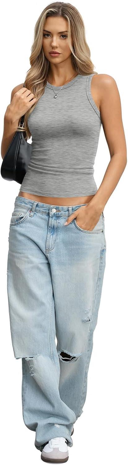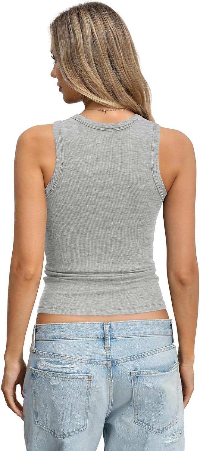 Womens Ribbed Cotton Tank Tops Basic Crew Neck Sleeveless Shirts Fitted Going Out Tops Summer Trendy 2026(Heather Grey)