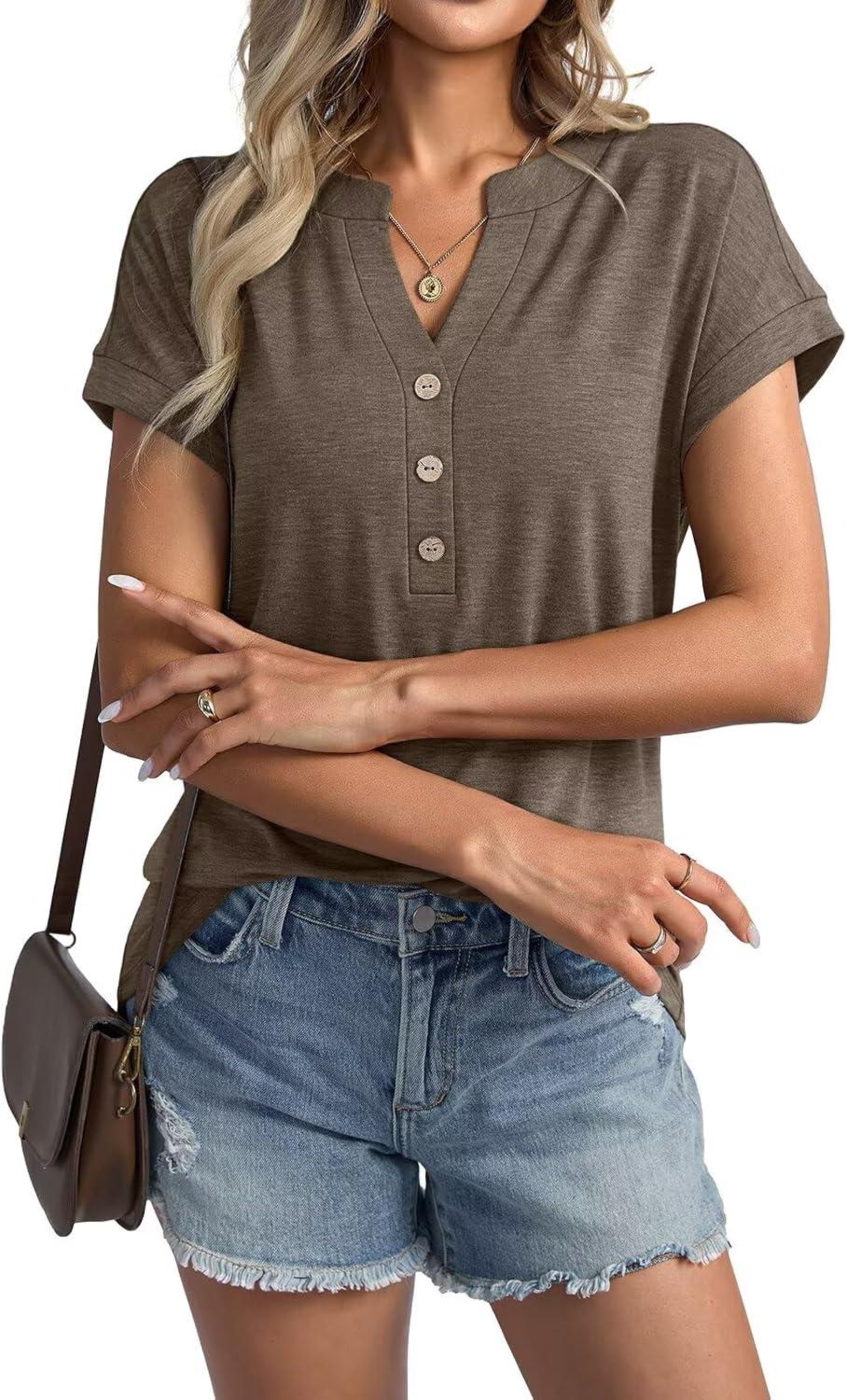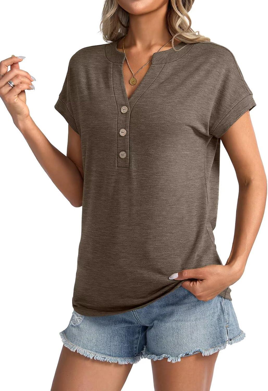 Womens V Neck Cap Sleeve Tops Summer Casual Short Sleeve Shirts Loose Fit Basic Work Tee Trendy Clothes 2025(Coffee)
