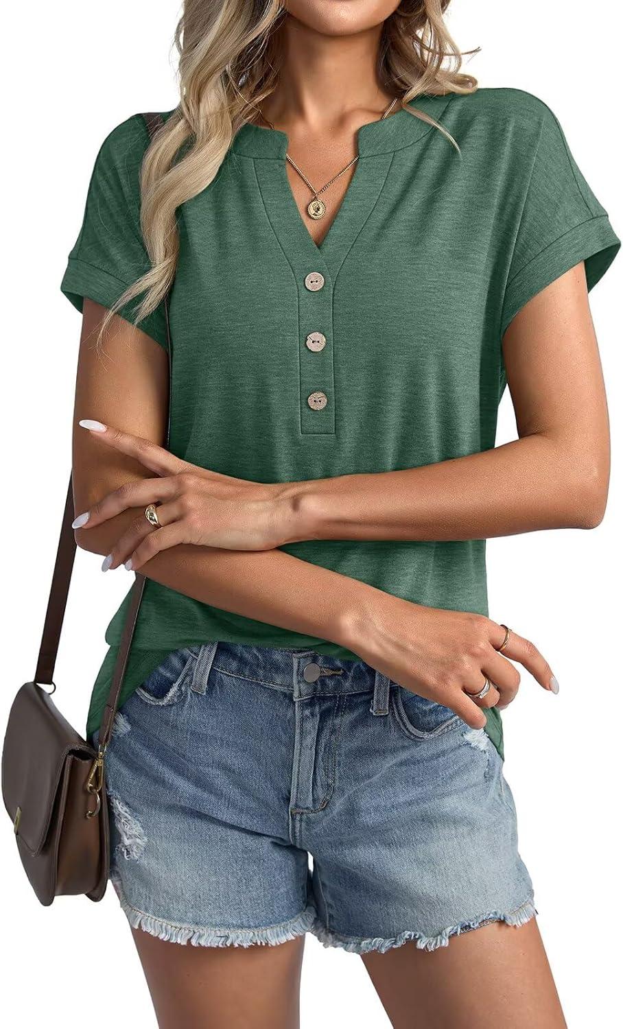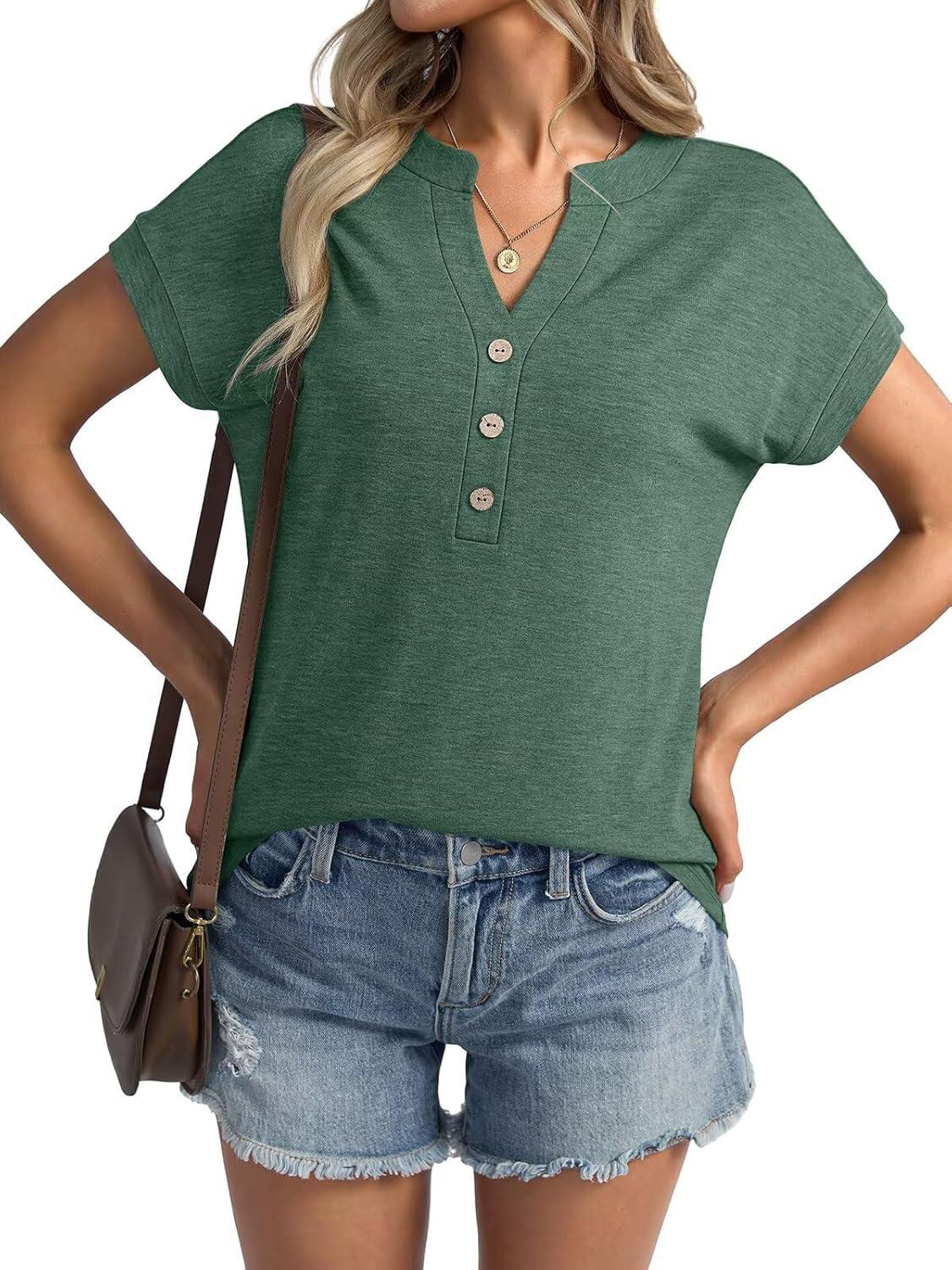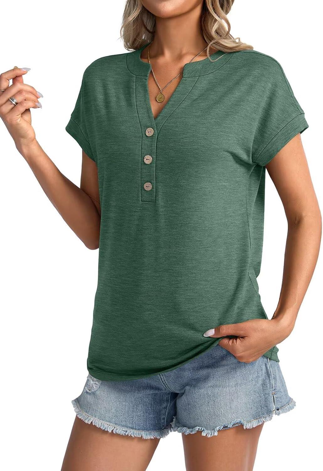 Womens V Neck Cap Sleeve Tops Summer Casual Short Sleeve Shirts Loose Fit Basic Work Tee Trendy Clothes 2025(Green)