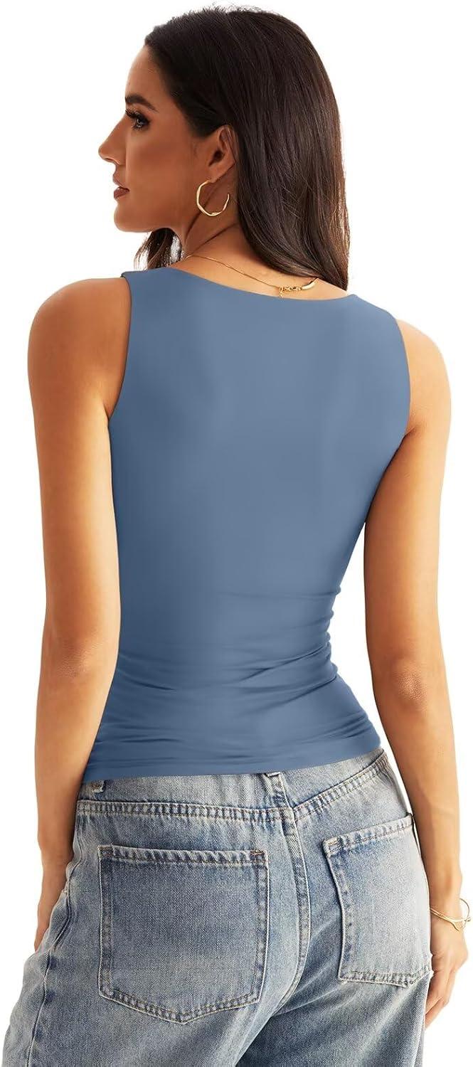 Womens V Neck Tank Tops Sleeveless Double Lined Basic Tops Slim Fit Summer Shirts 2025(Coronet Blue)