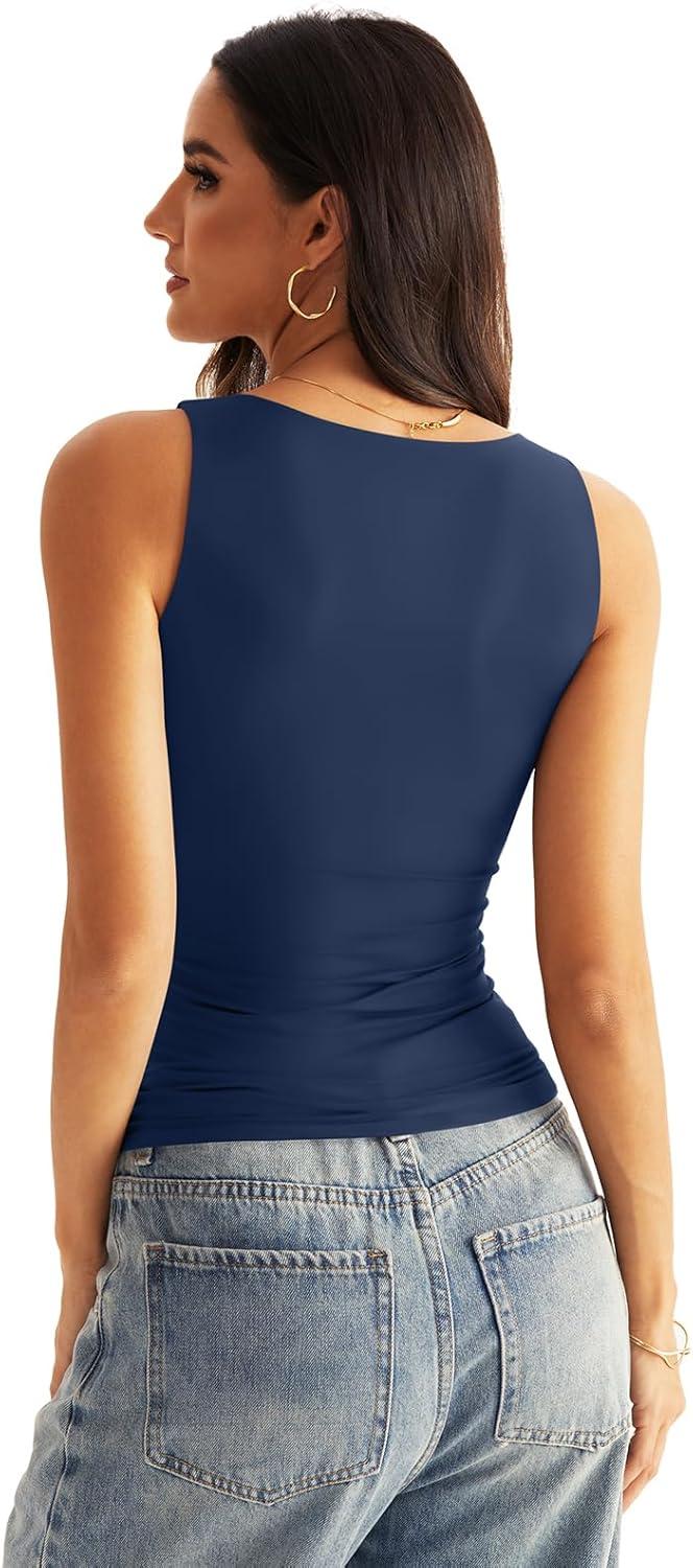 Womens V Neck Tank Tops Sleeveless Double Lined Basic Tops Slim Fit Summer Shirts 2025(Estate Blue)